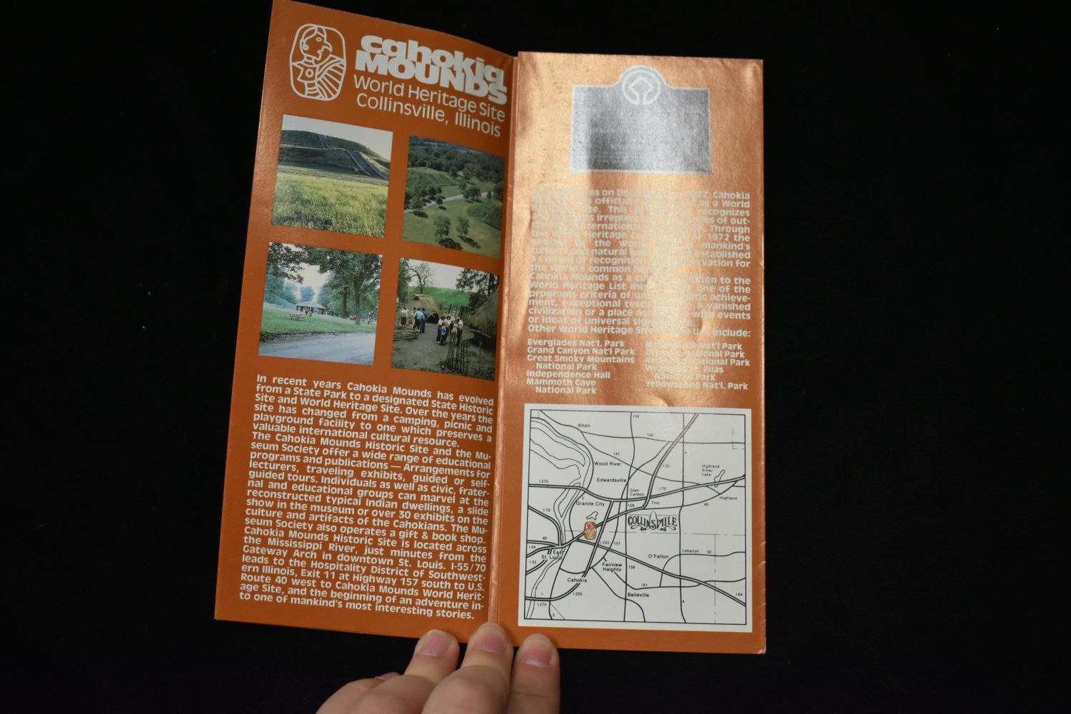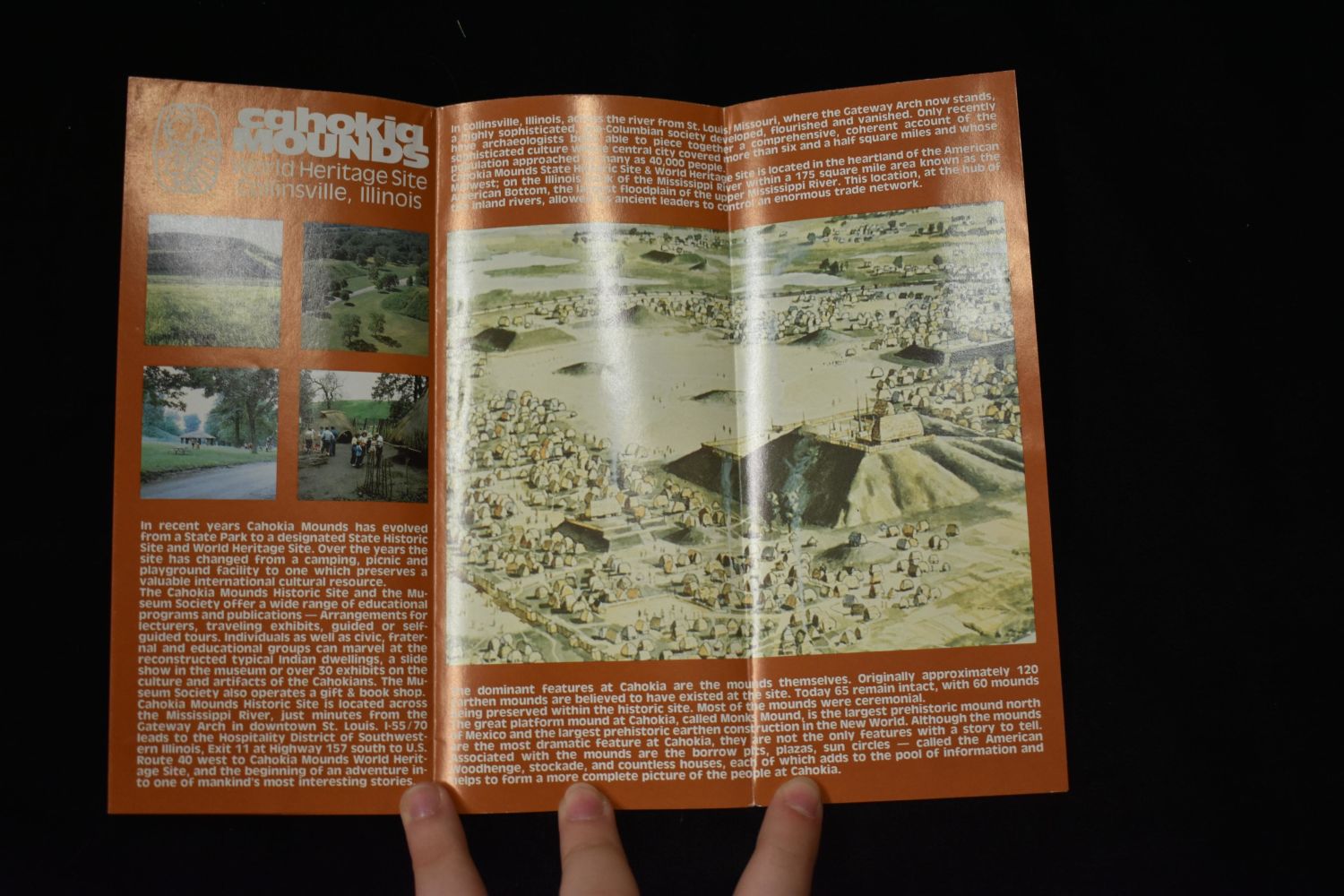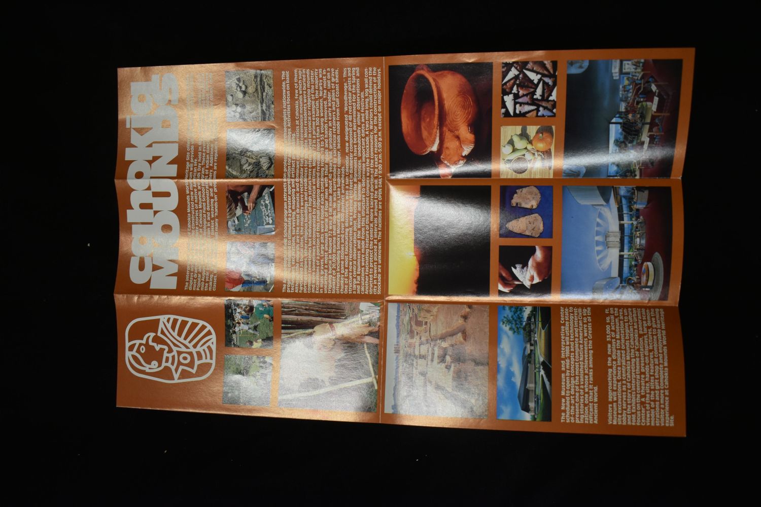 Lot of 2 Vintage Cahokia Mounds Postcards and site pamphlet- Famous Cahokia Gem Points