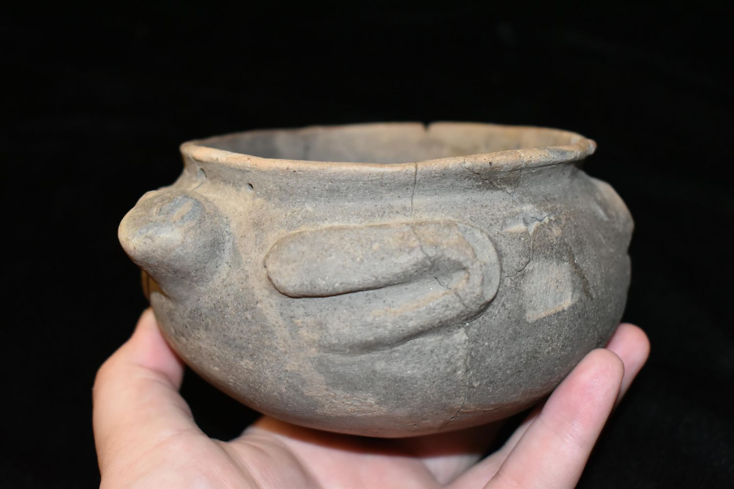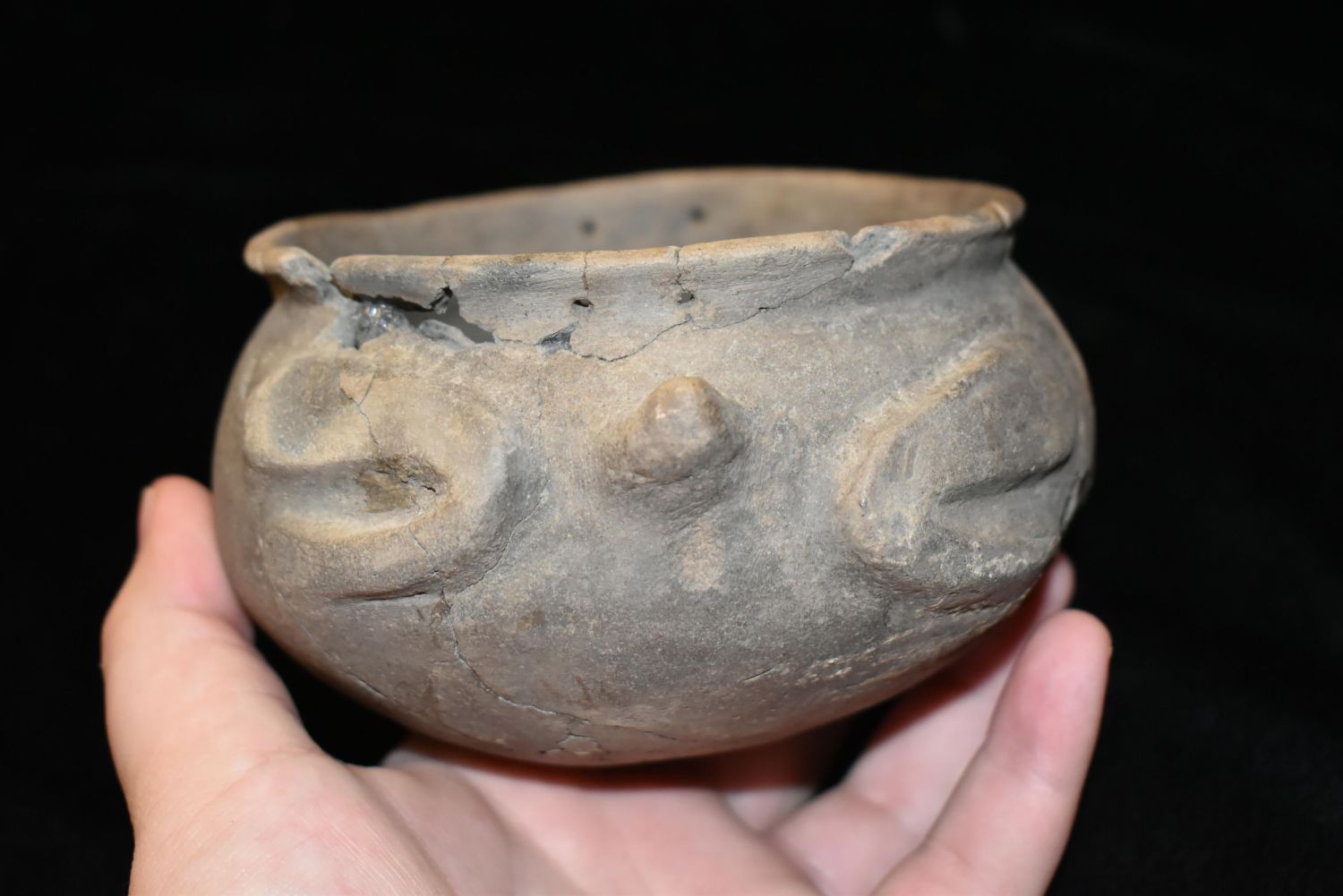 Frog Effigy Rattle Pot (broken and glued)