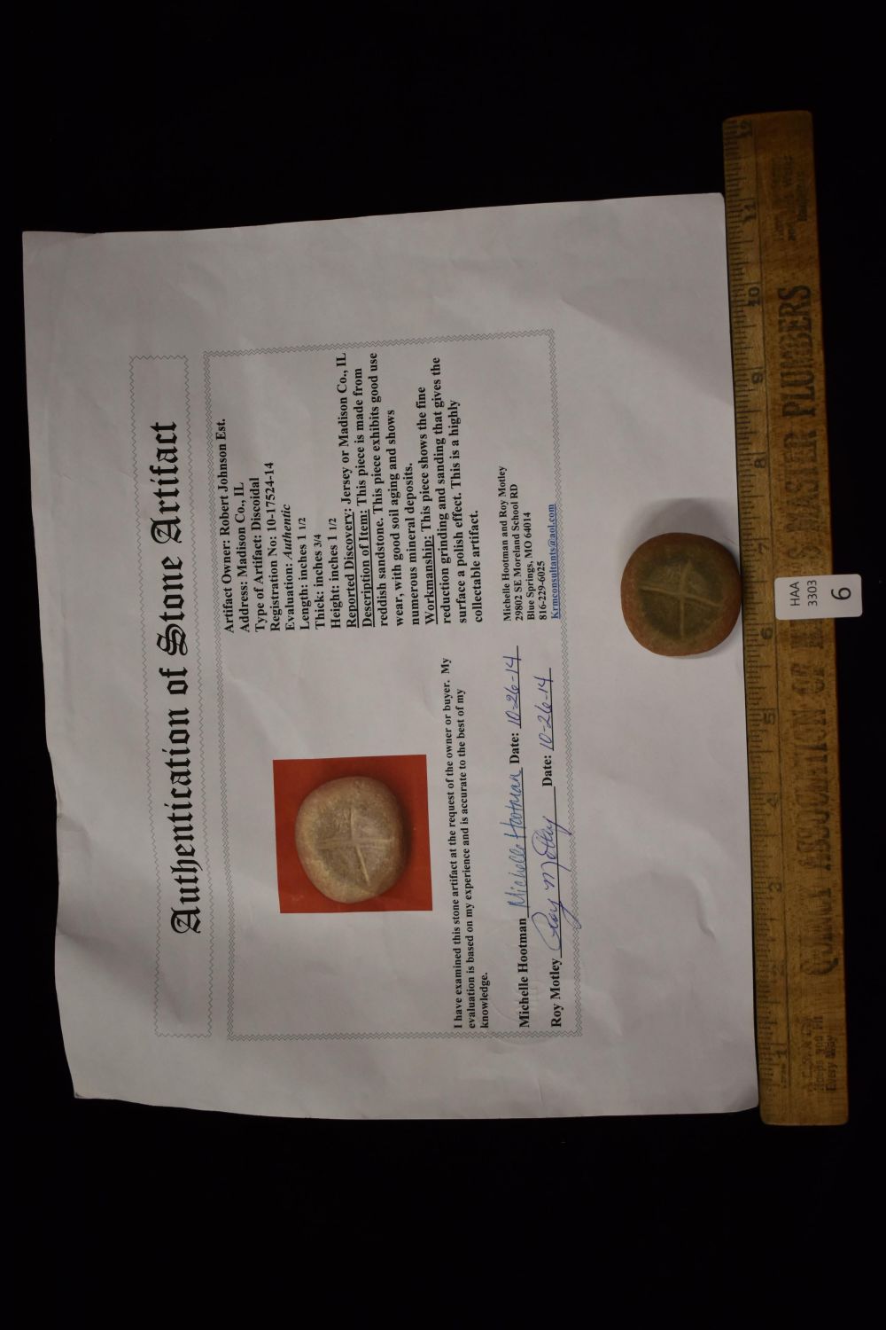 1 1/2″ Discoidal Motley COA found in Jersey or Madison County Illinois