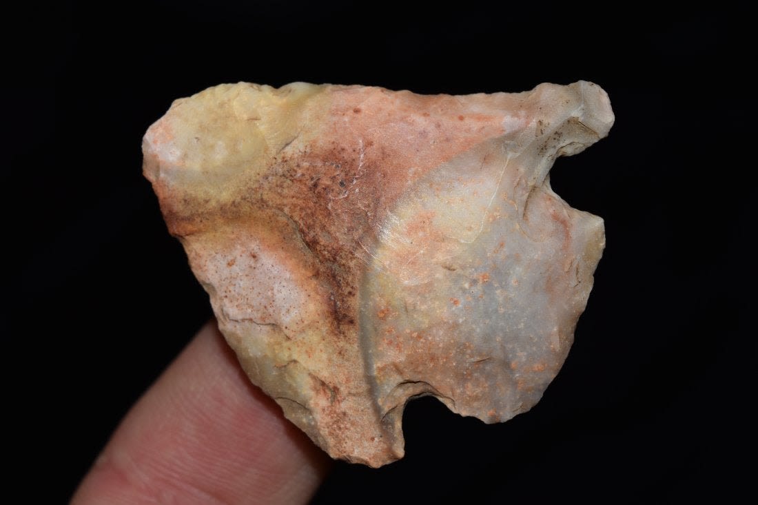 1 3/4" Calf Creek, Central Missouri, wonderful colors, authentic Native American Artifact