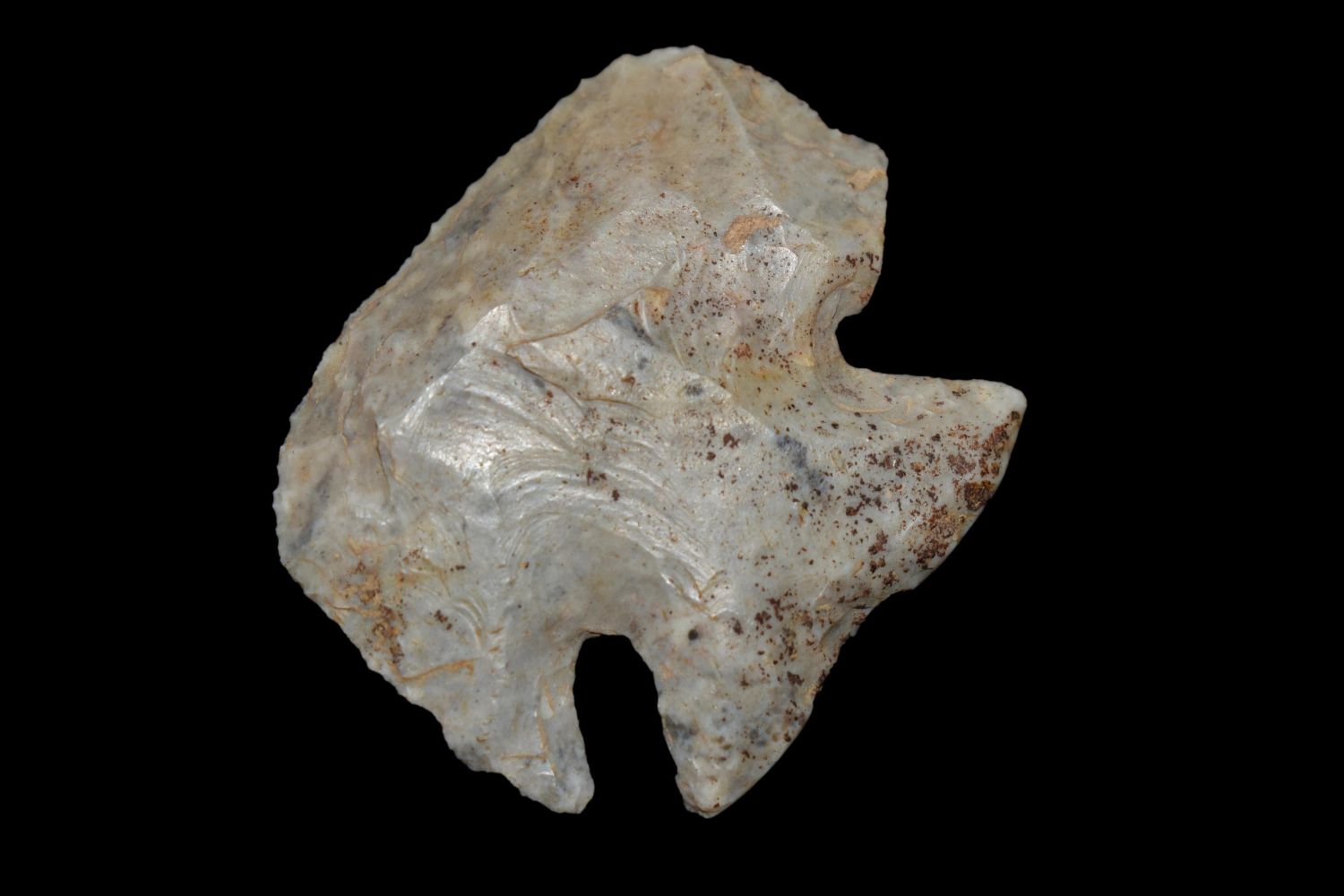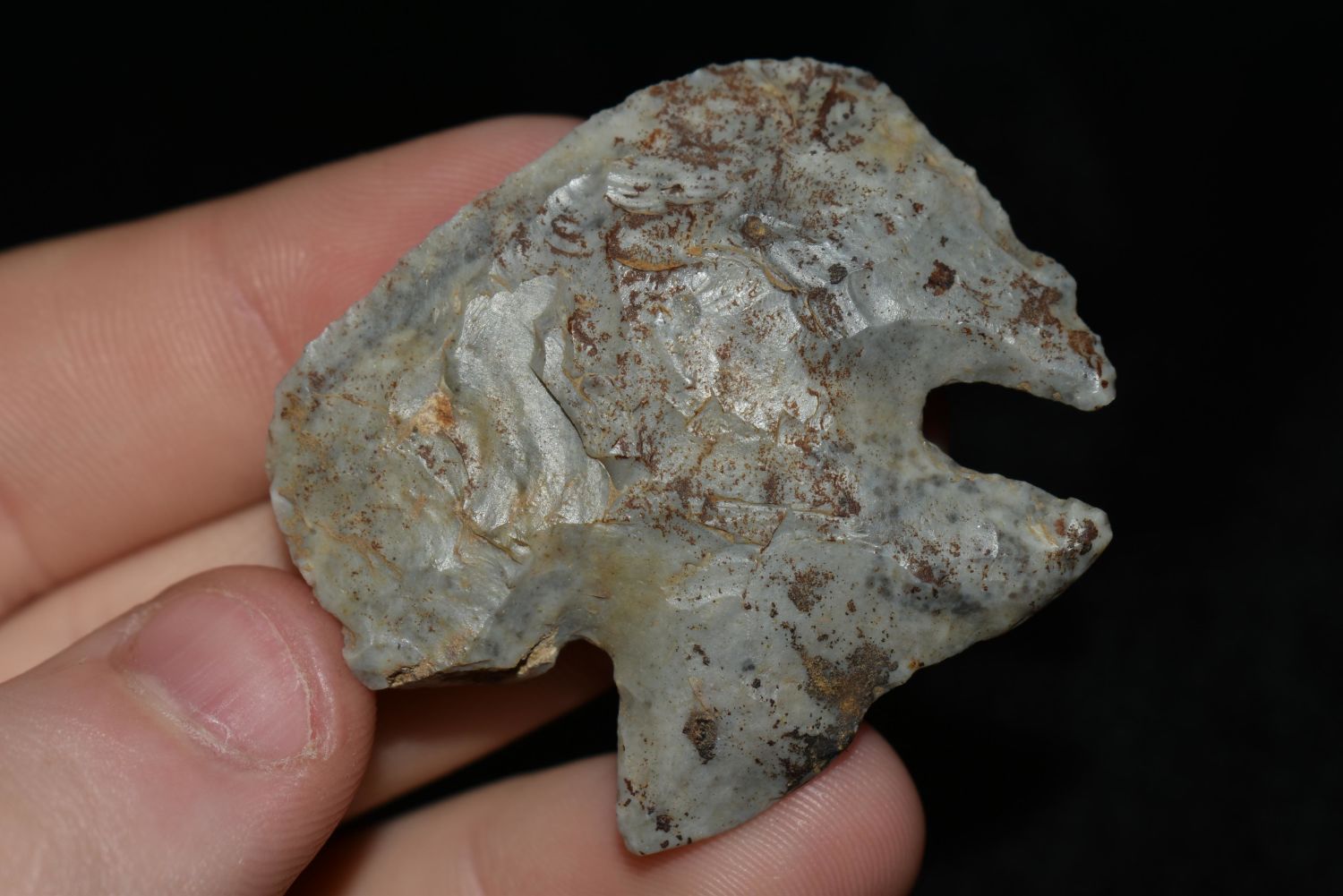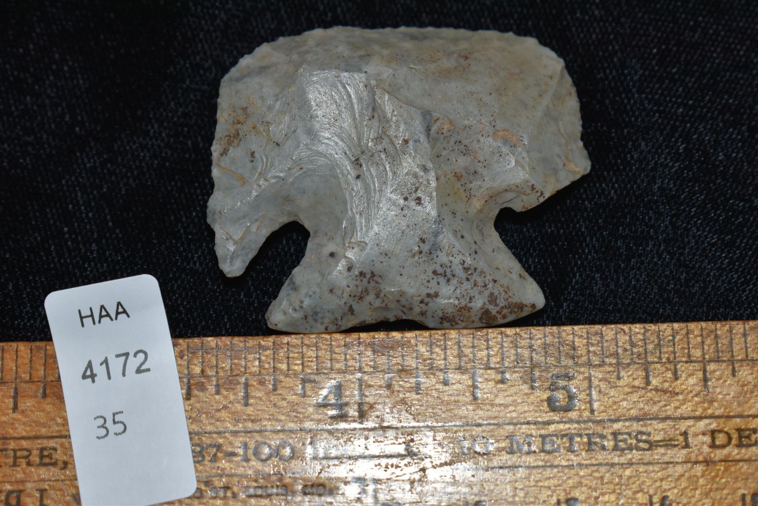 1 1/2" Kirk Corner Notch Hafted Scraper, Found in Union County Illinois