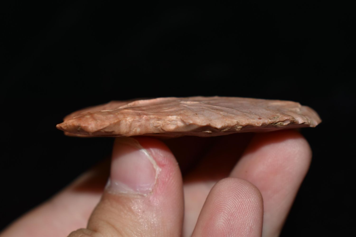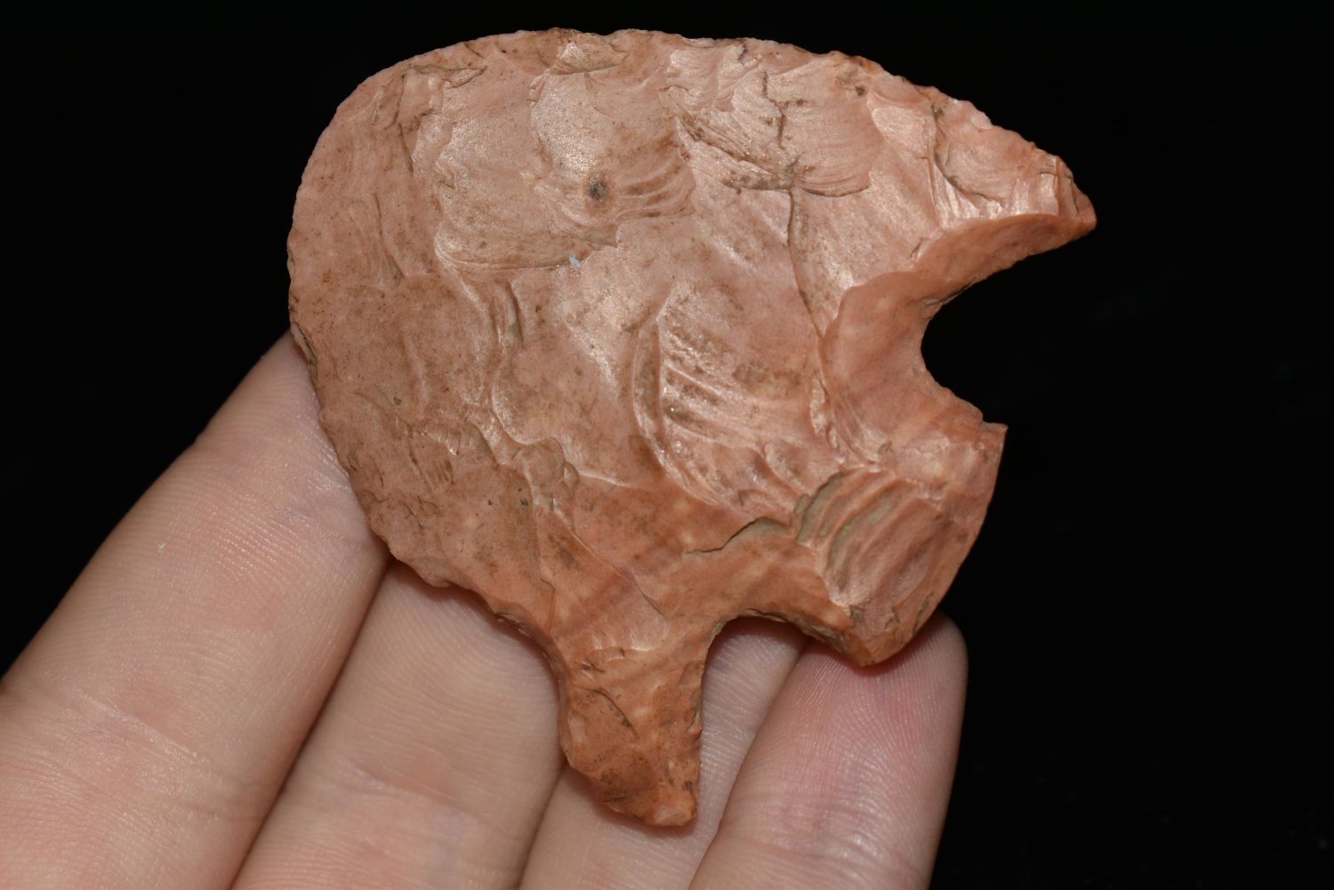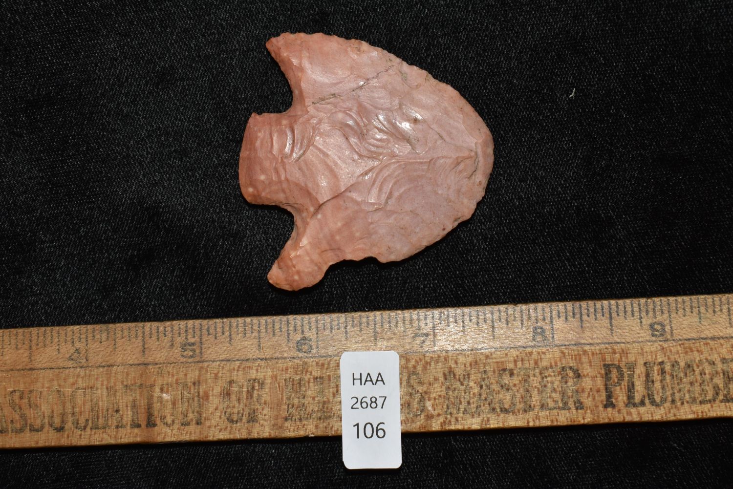 2 1/8" Hopewell Blunt Anciently reworked with great color. Made of Heat treated Burlington Found in Tazwell Co ILL