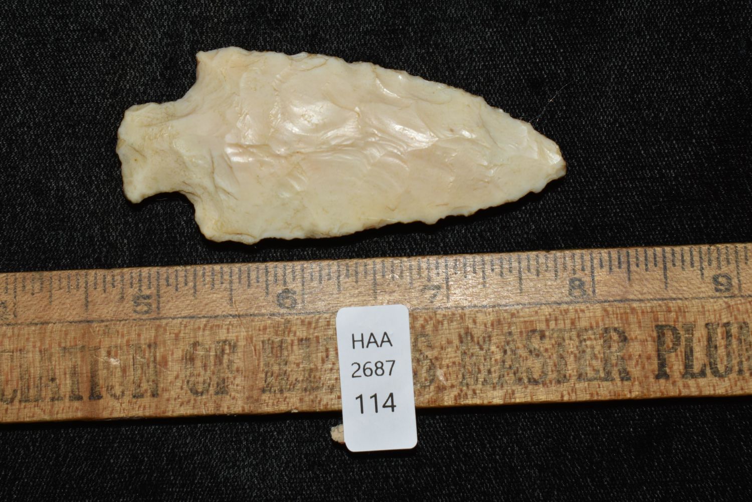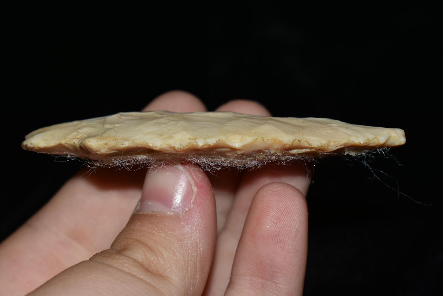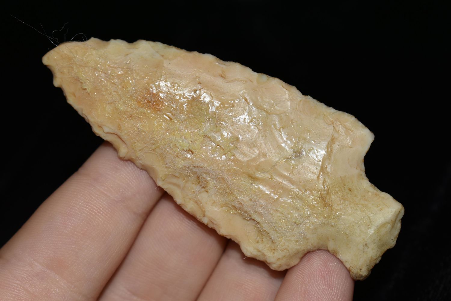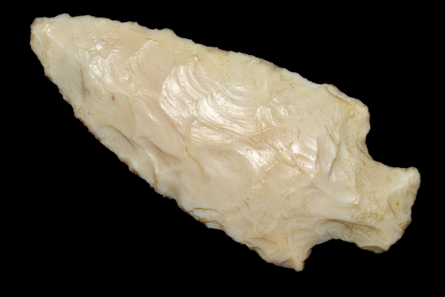 3 1/16" Stemmed Point made of Crescent Quarry Flint Shelby Co ILL Some Glue and felt on back (removable)