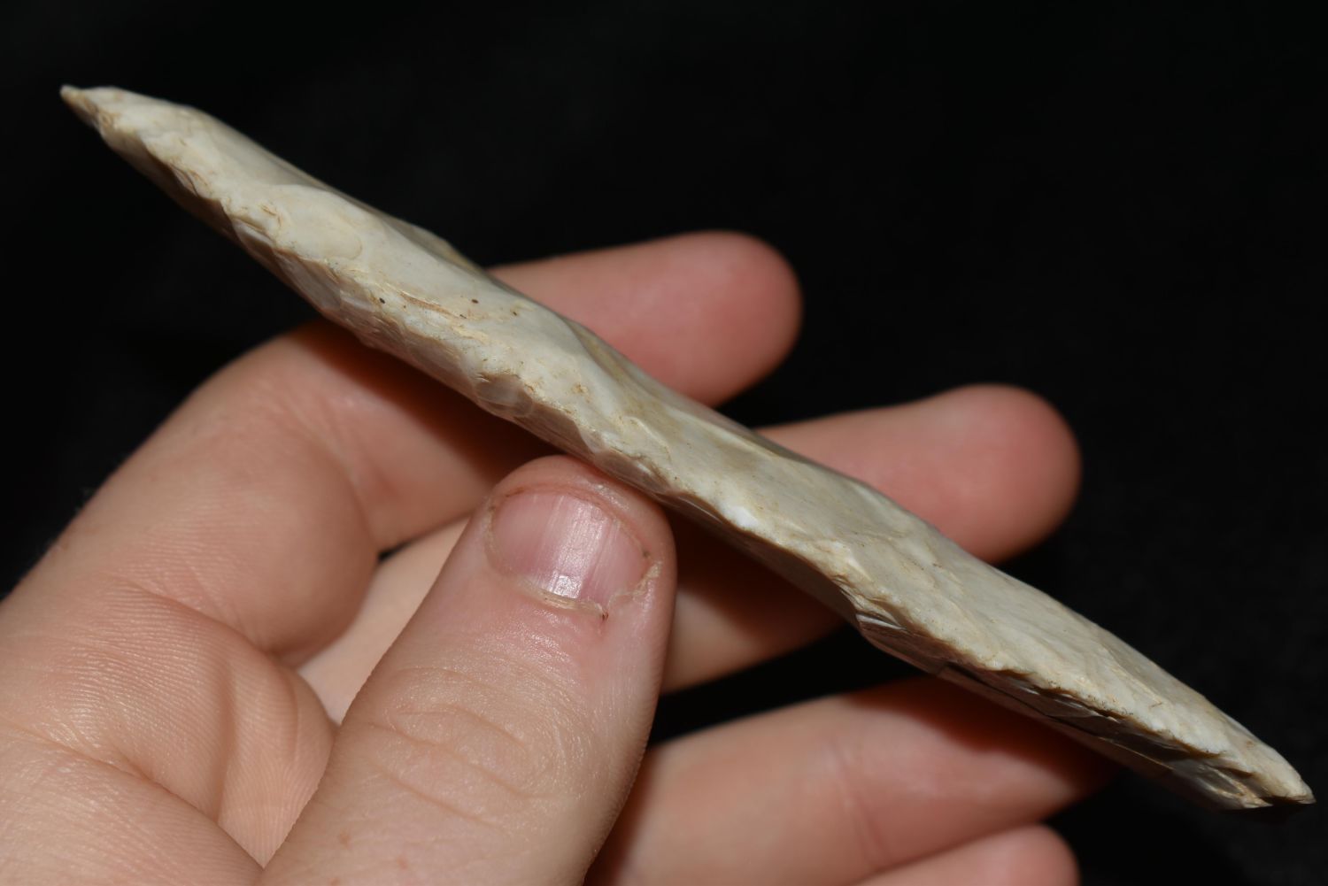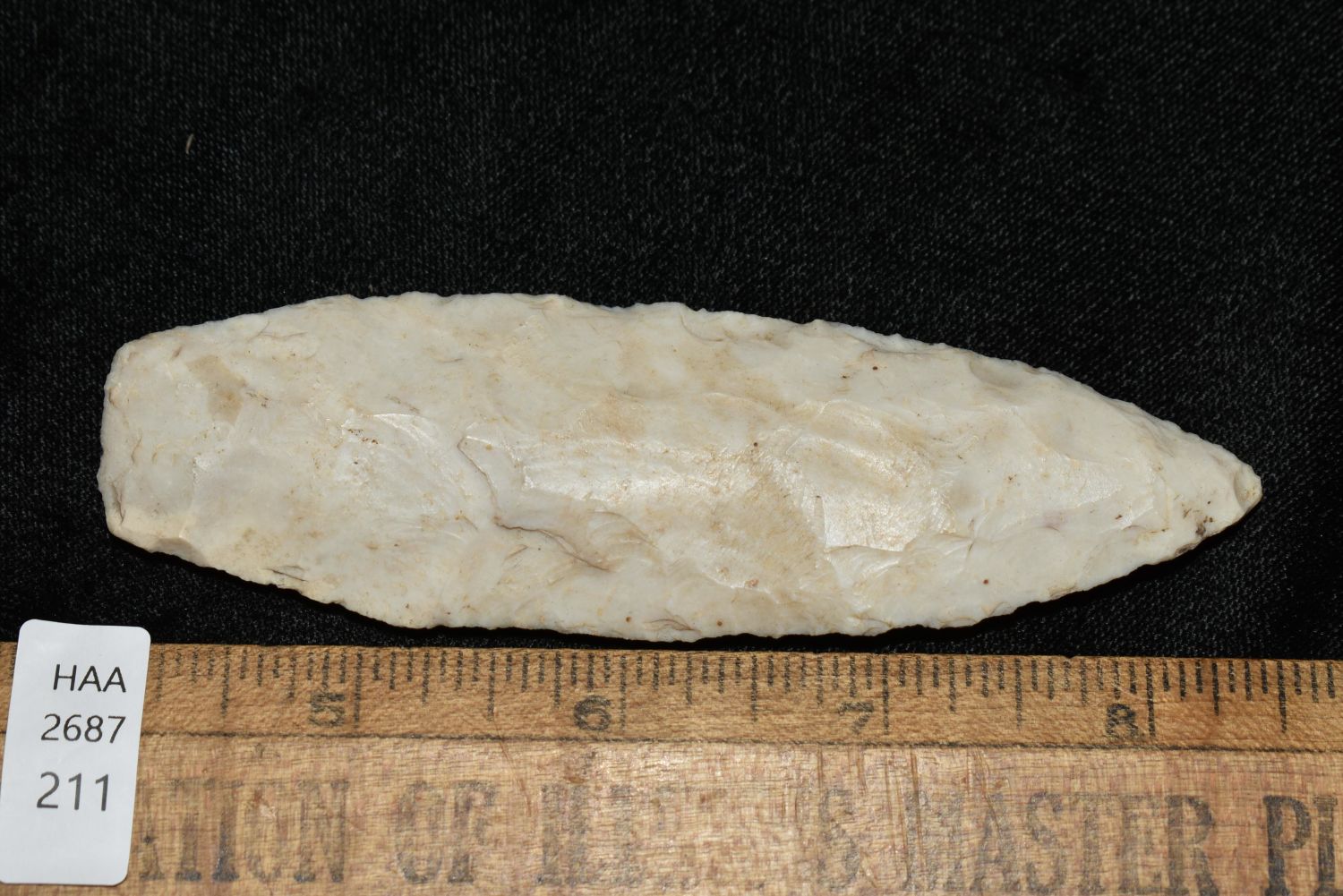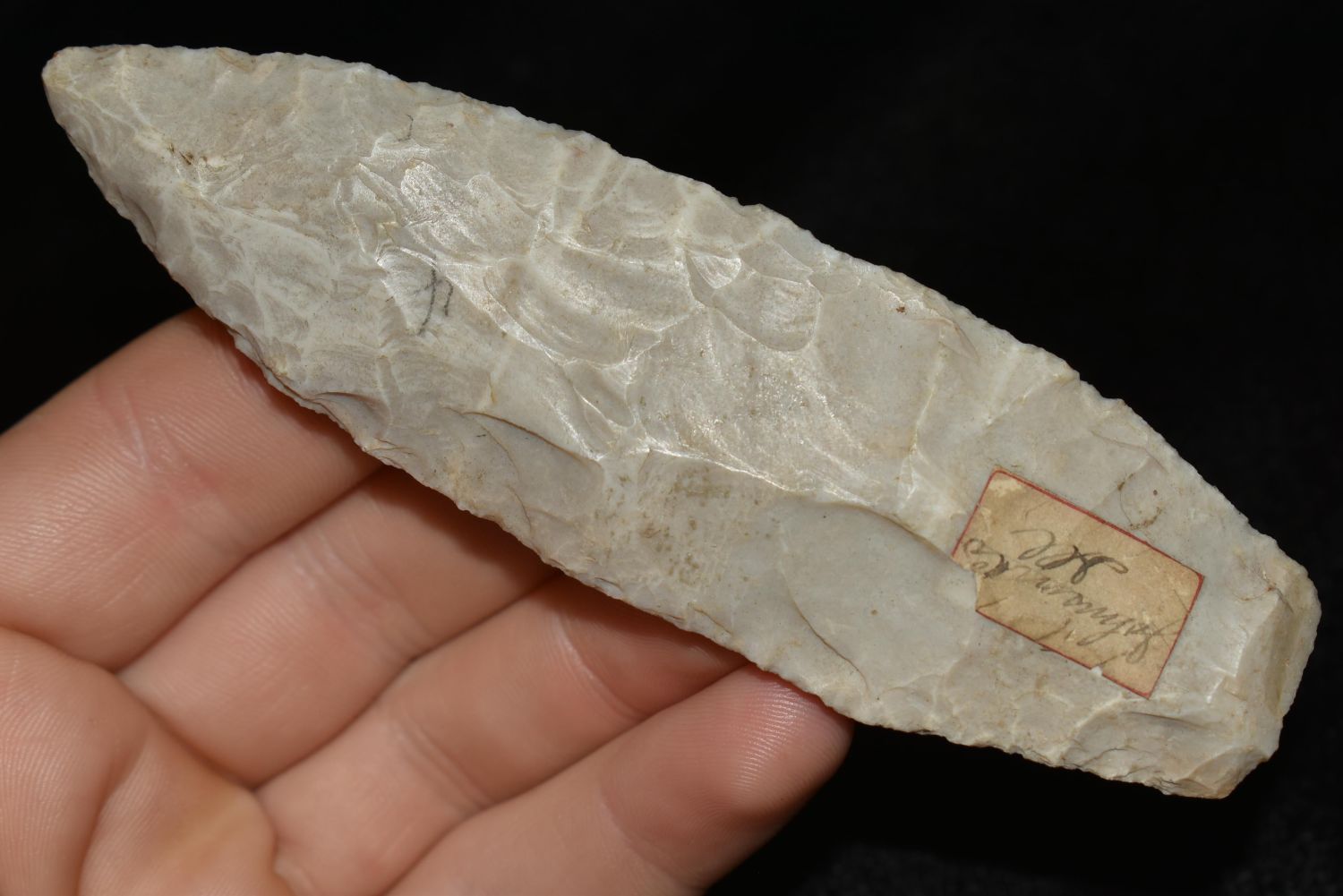4 1/2" Late Paleo Knife with medium basal grinding Johnson Co Illinois Ex Nick Gatses Ex Scott Swearingin