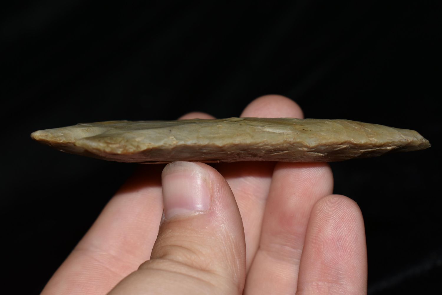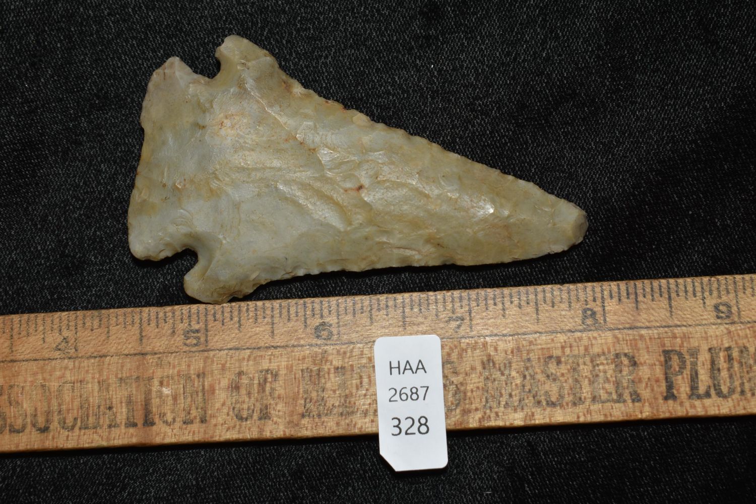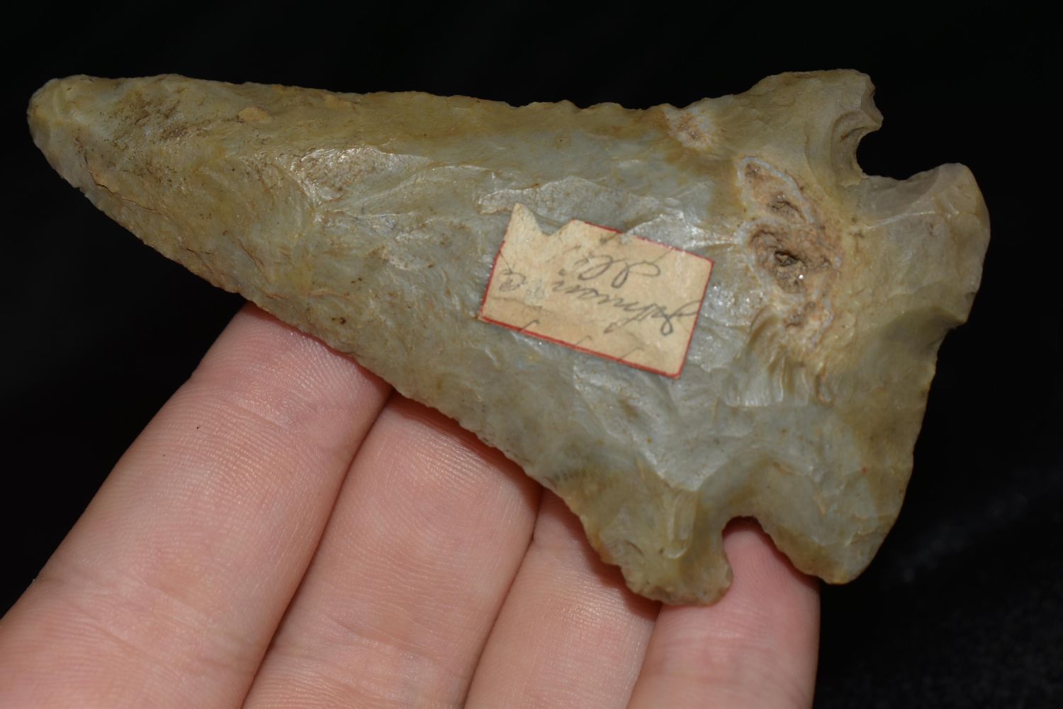 3 1/2" Pine Tree Point with Quartzite Inclusions. Large example of its type Johnson Co Illinois Ex Nick Gatses Ex Scott Swearingin