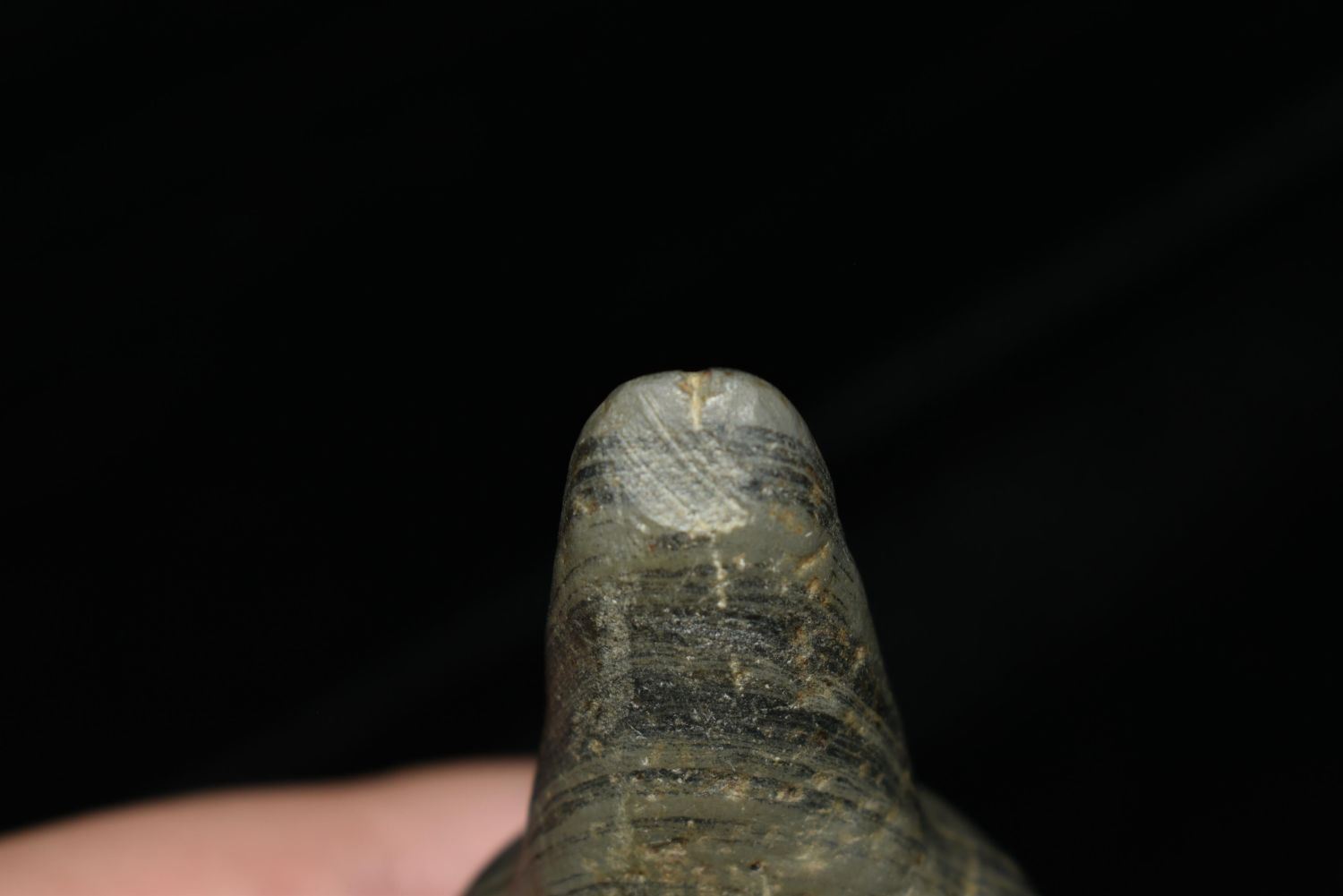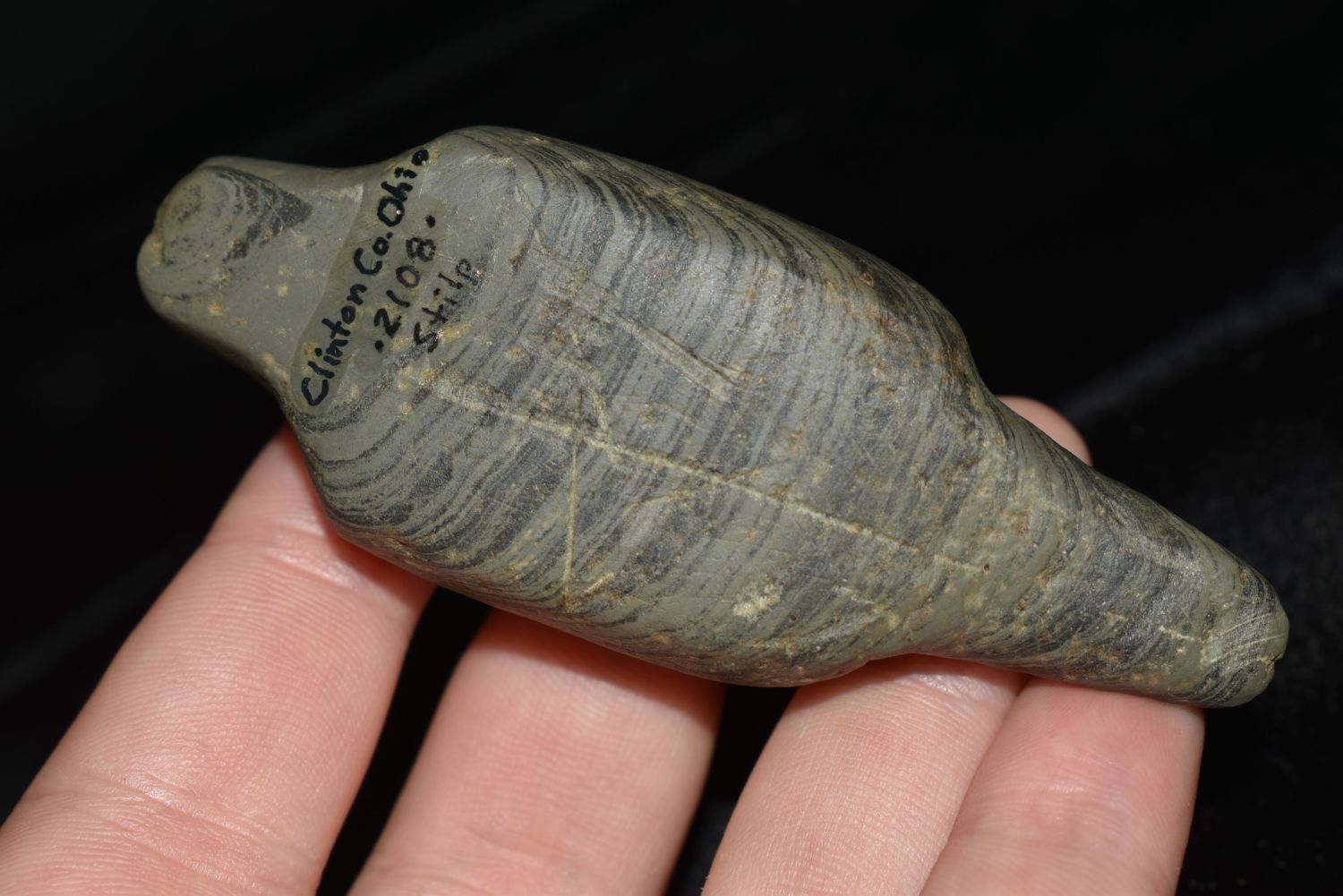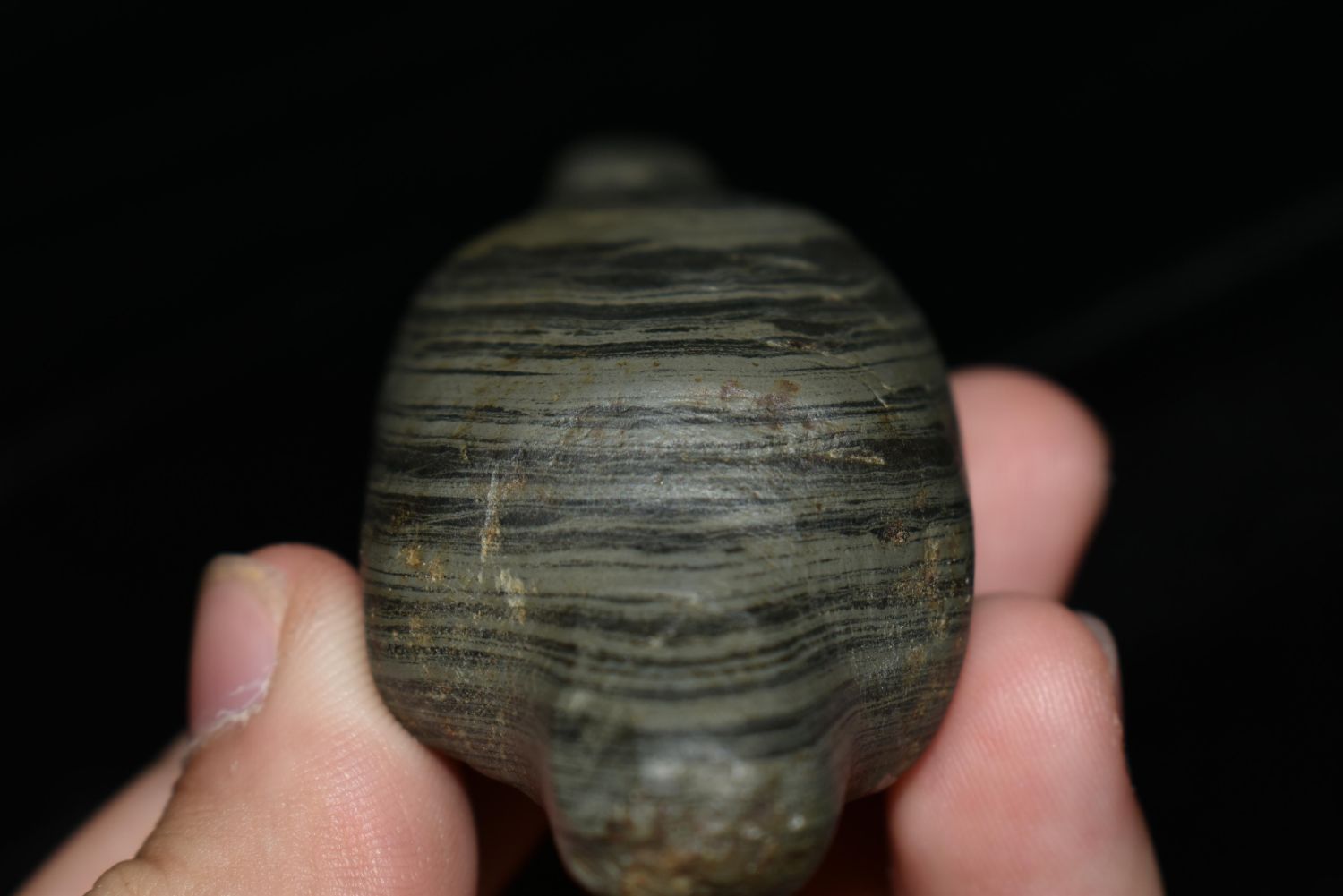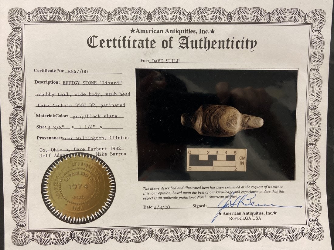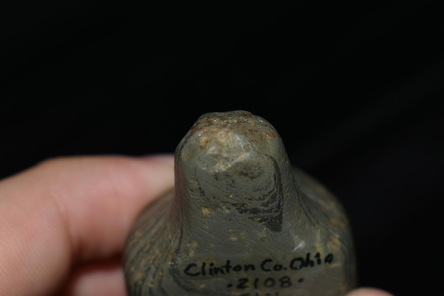 3 3/8" Rare Banded Slate Lizard/Turtle Effigy Clinton Co Ohio Found by Dave Harbert John Berner COA (Ex President of Central States) Ex Jeff Adams, Mike Barron, David Stilp, Ray Fraser, and Nick Gatses