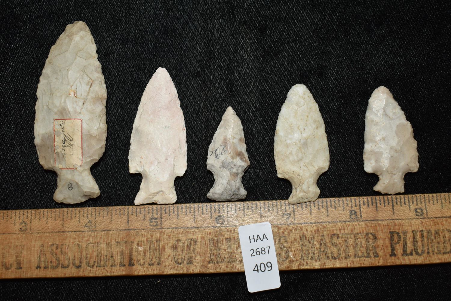 Lot of 5 Table Rock Bottle Neck Points Illinois Largest is 2 7/8"