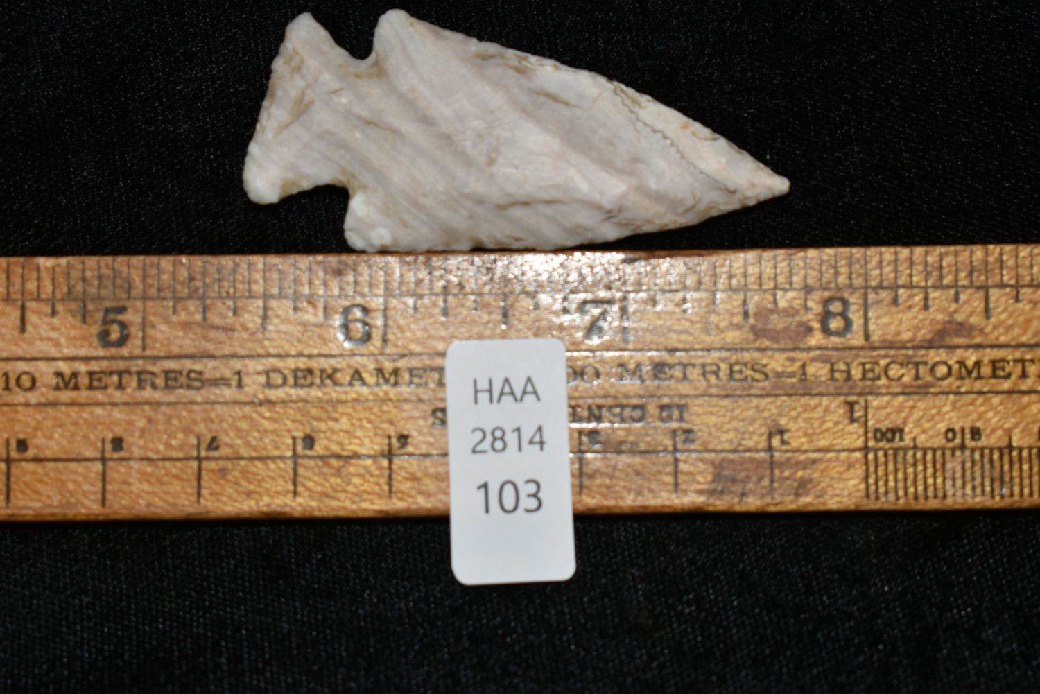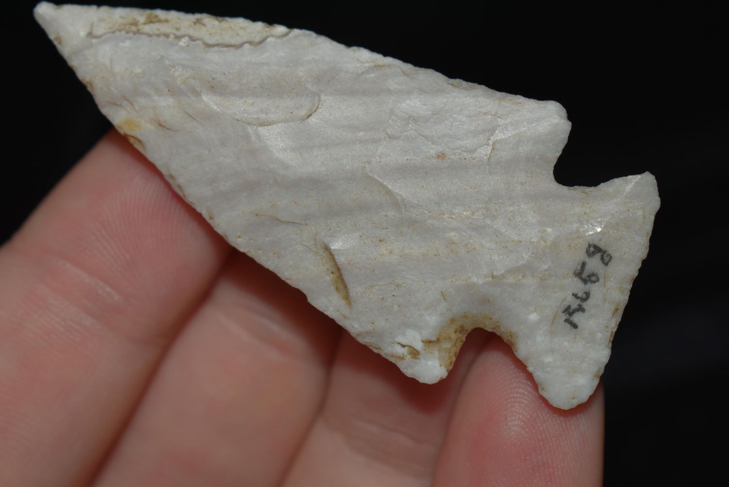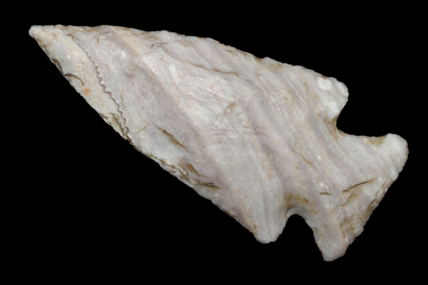 Beautiful 2 1/4" Banded Apple Creek Found on the Salt River in Monroe County, MO, Authentic Native American Arrowhead