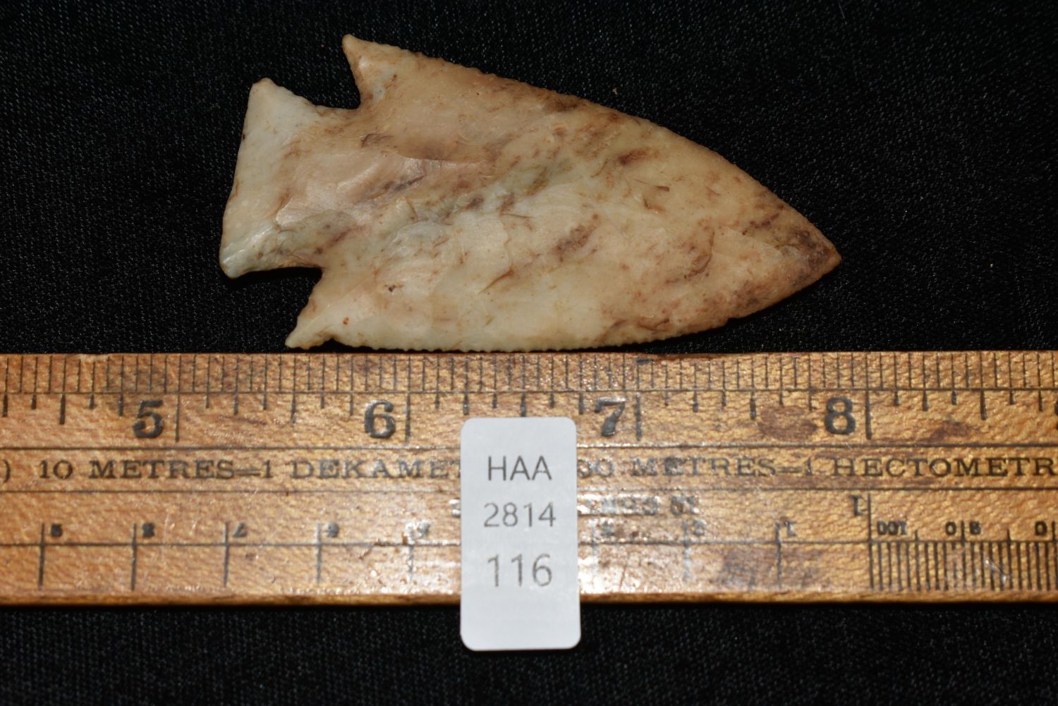 Outstanding 2 3/4" Kaolin Hardin from IL. Nicely Serrated. , Authentic Native American Arrowhead