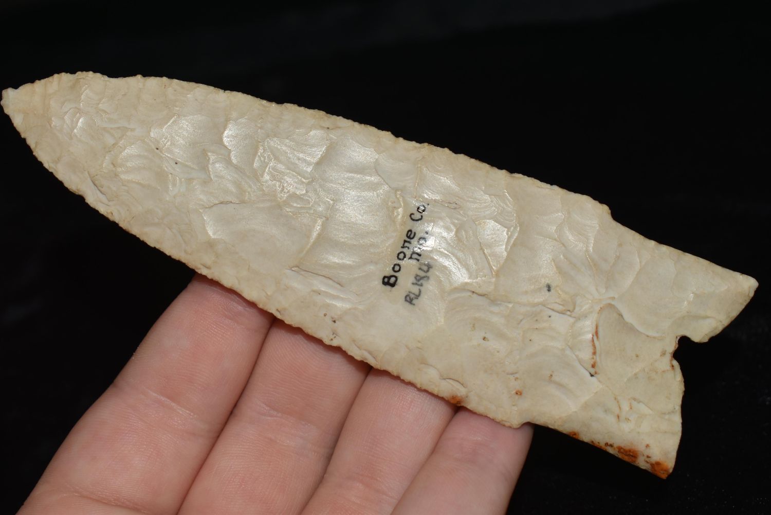 Incredible 5 3/8" Holland Dalton recovered in Boone County MO. Ex Ed Beull, Ex Floyd Ritter, pictured in Legends 2nd, Pg 459, Authentic Native American Arrowhead