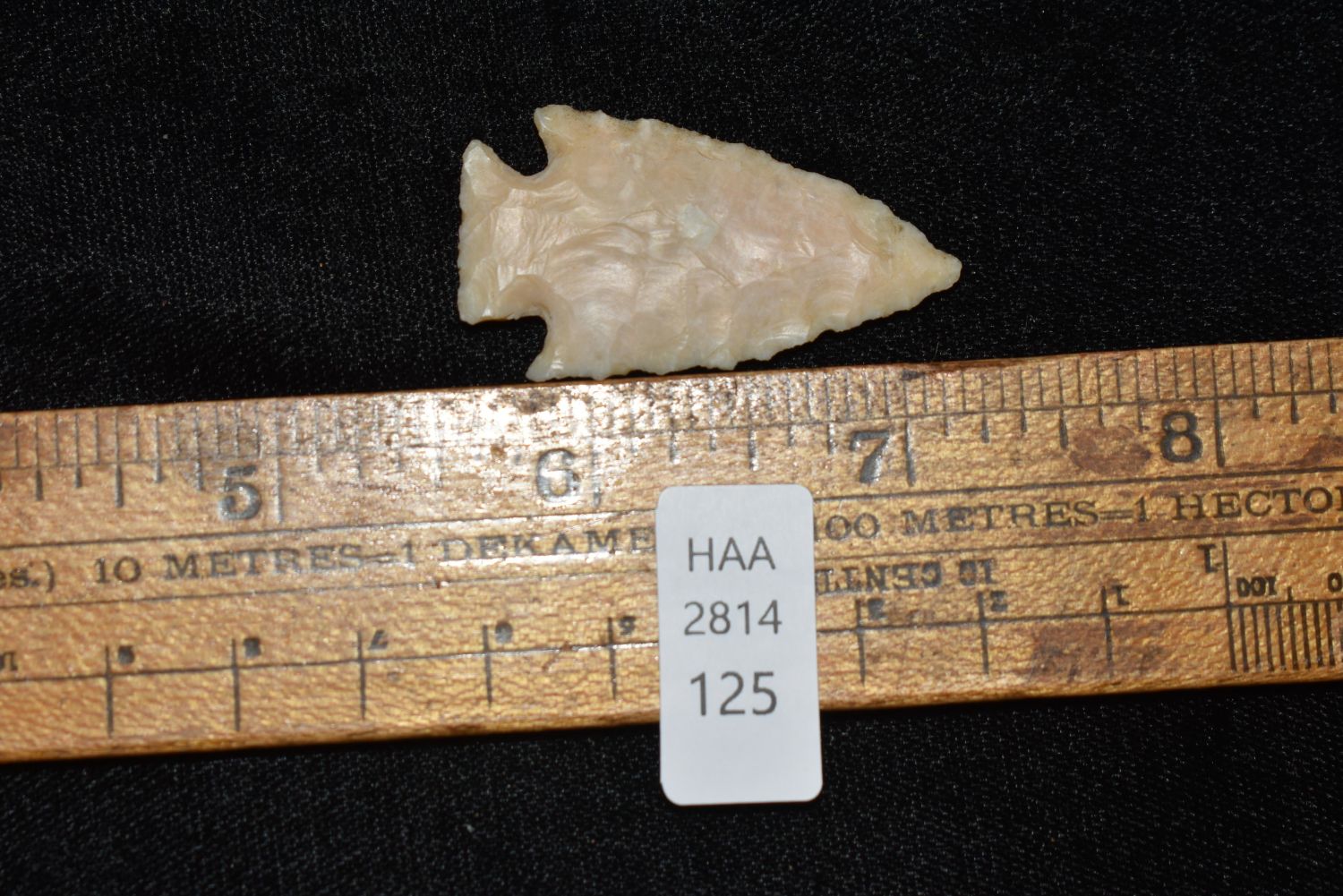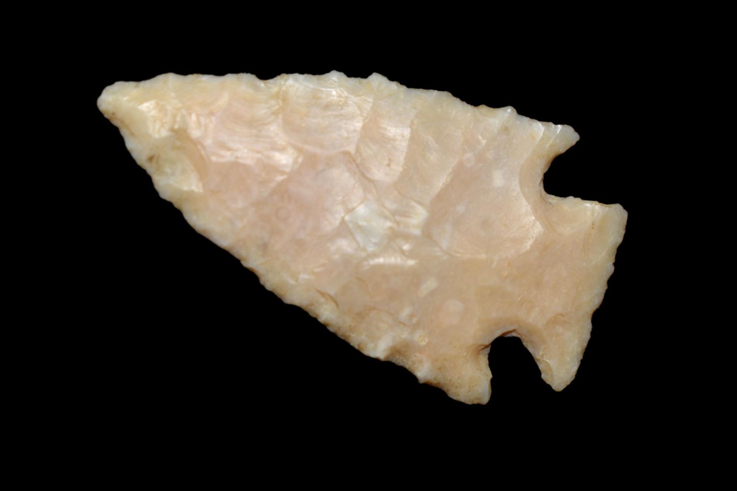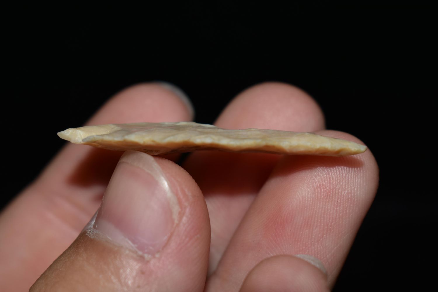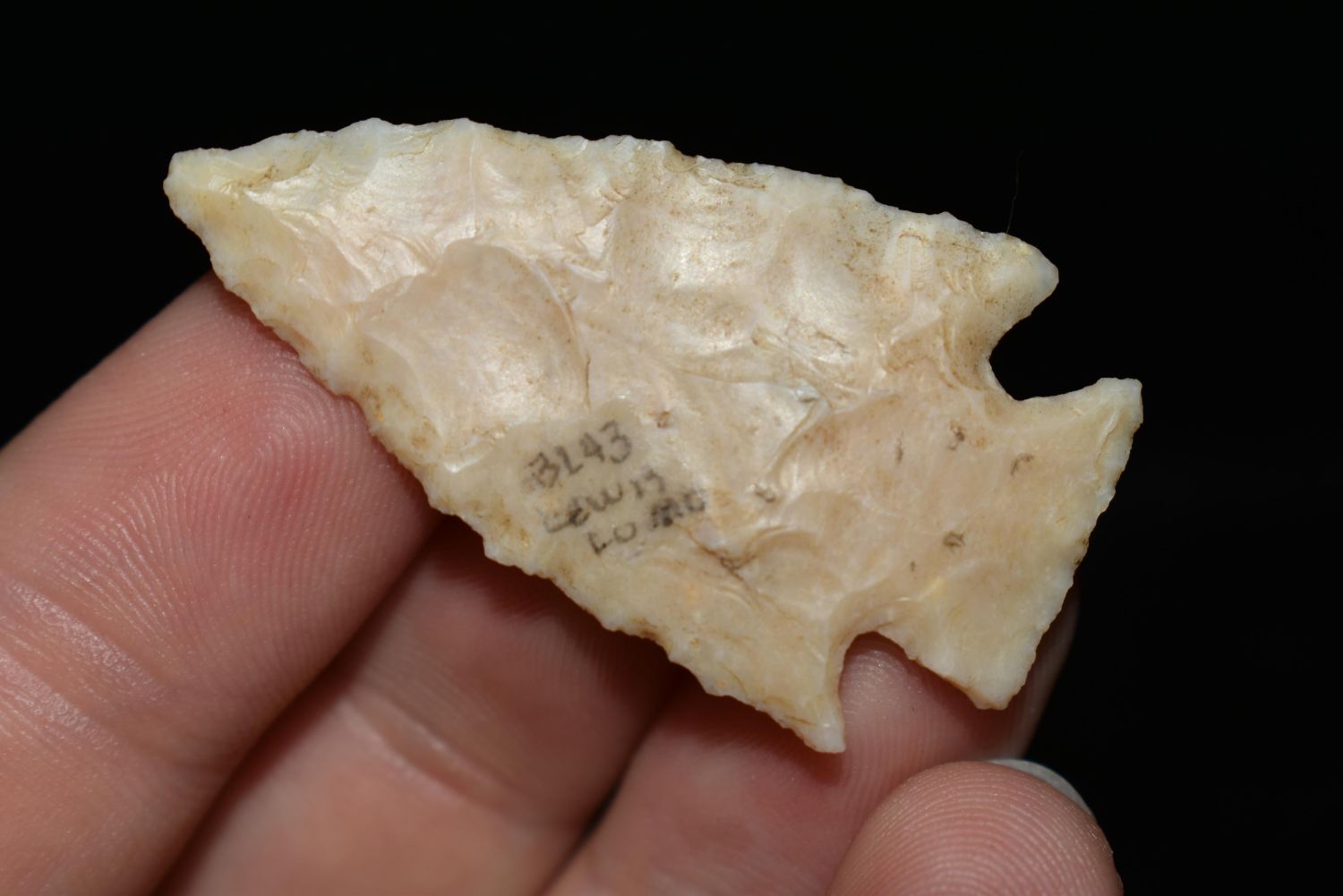 Nice little well made 1 9/16" Scallorn. This piece is super thin and was found by Dakota Starkin in Lewis County, MO, Authentic Native American Arrowhead