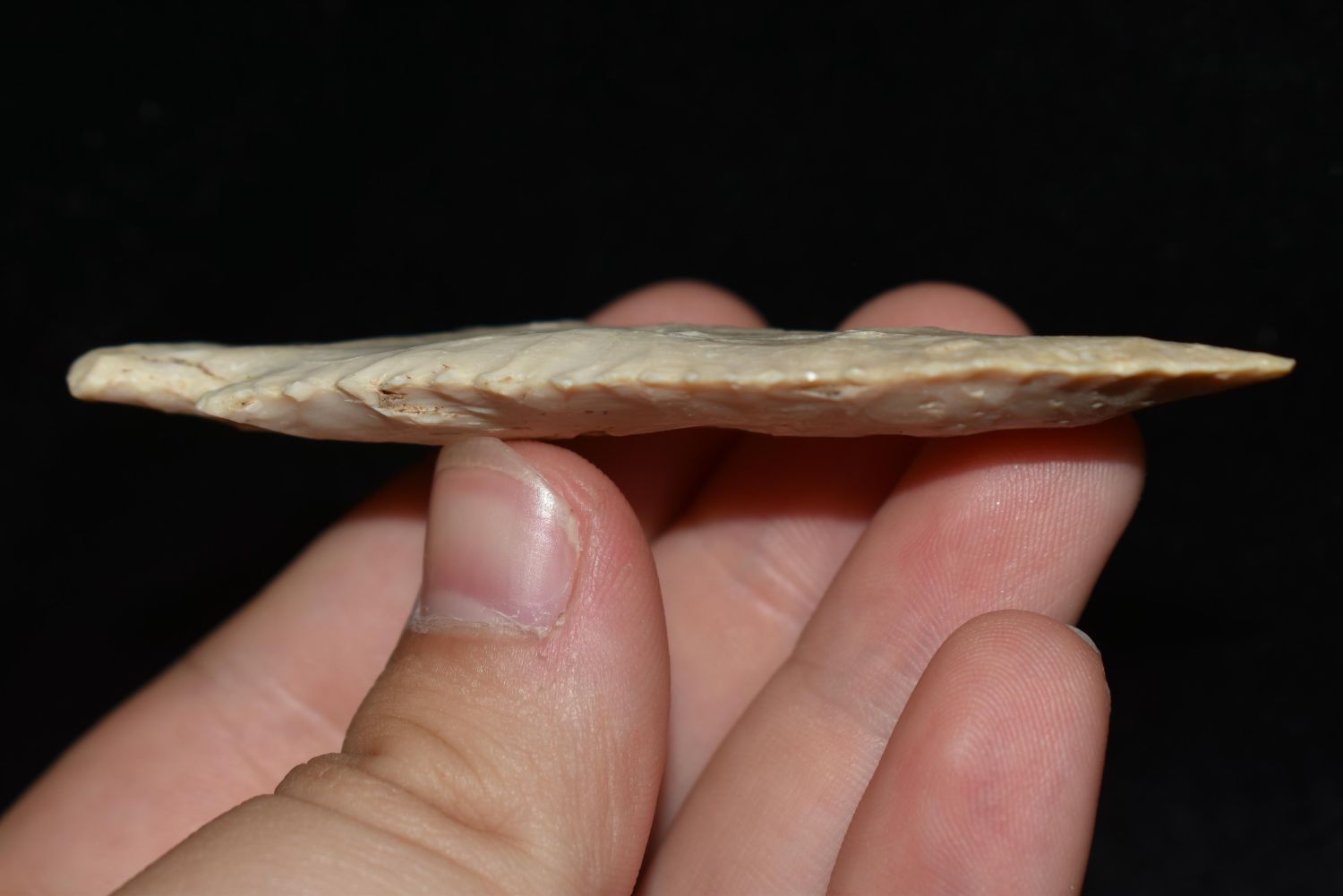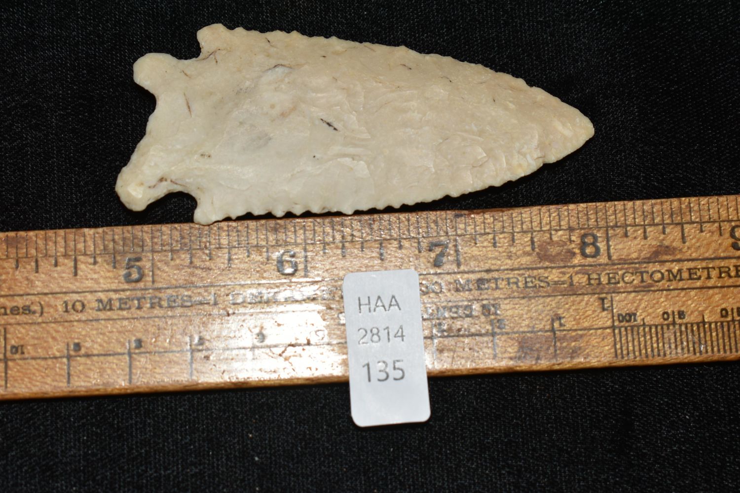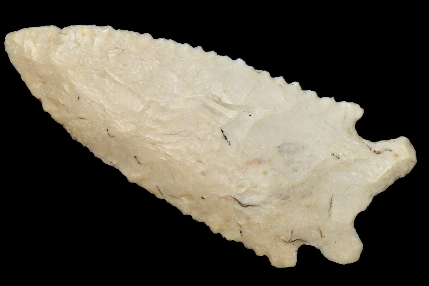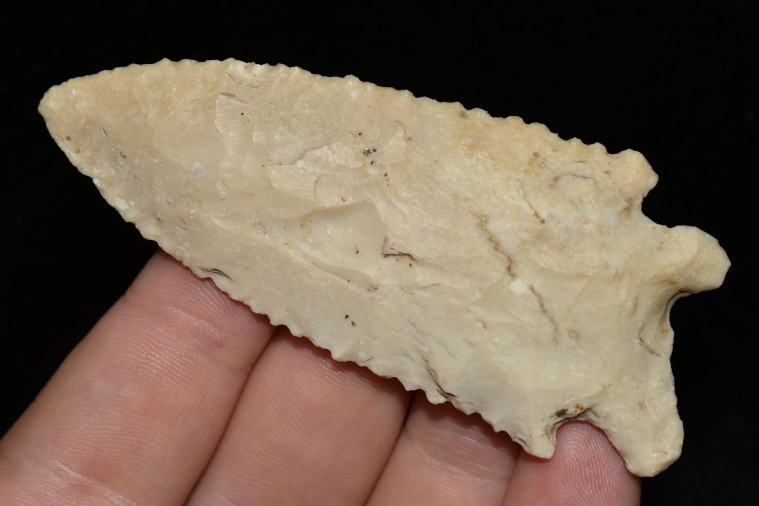 3 1/4" Heavily Serrated Rice Lobbed. Found by Billy Coleman in Boone County, MO, Authentic Native American Arrowhead