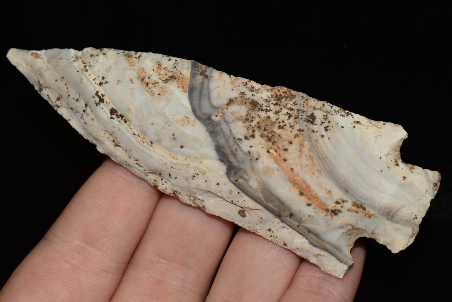 4 3/8" Mozarkite Etley found in Jefferson County, MO, great patination, Authentic Native American Arrowhead