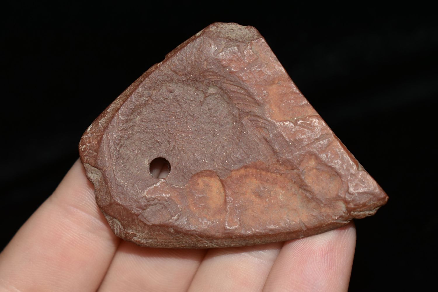 2" Heavily engraved clay stone pendant found in Brown County, IL, Authentic Native American Arrowhead