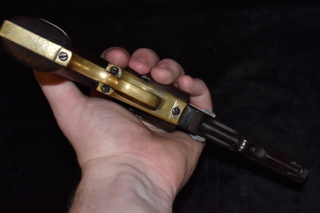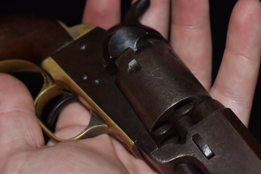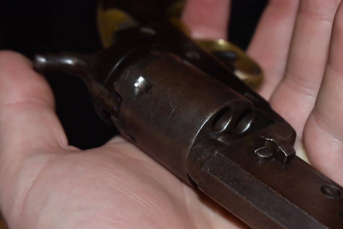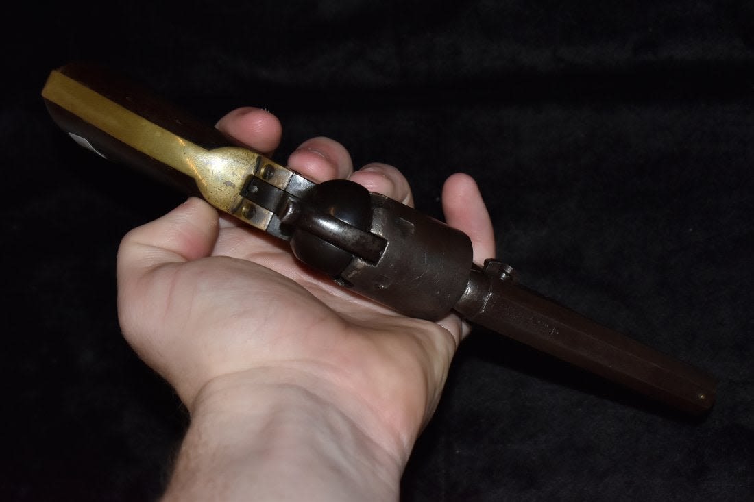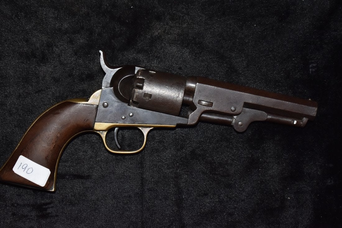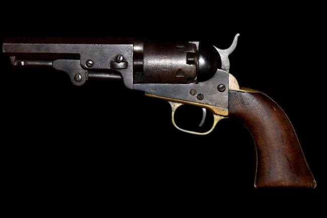 1849 Colt revolver, 31 gauge, 4 inch Octagon barrel, walnut grips, Manufactured 1854, Serial number 99527