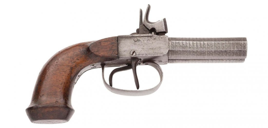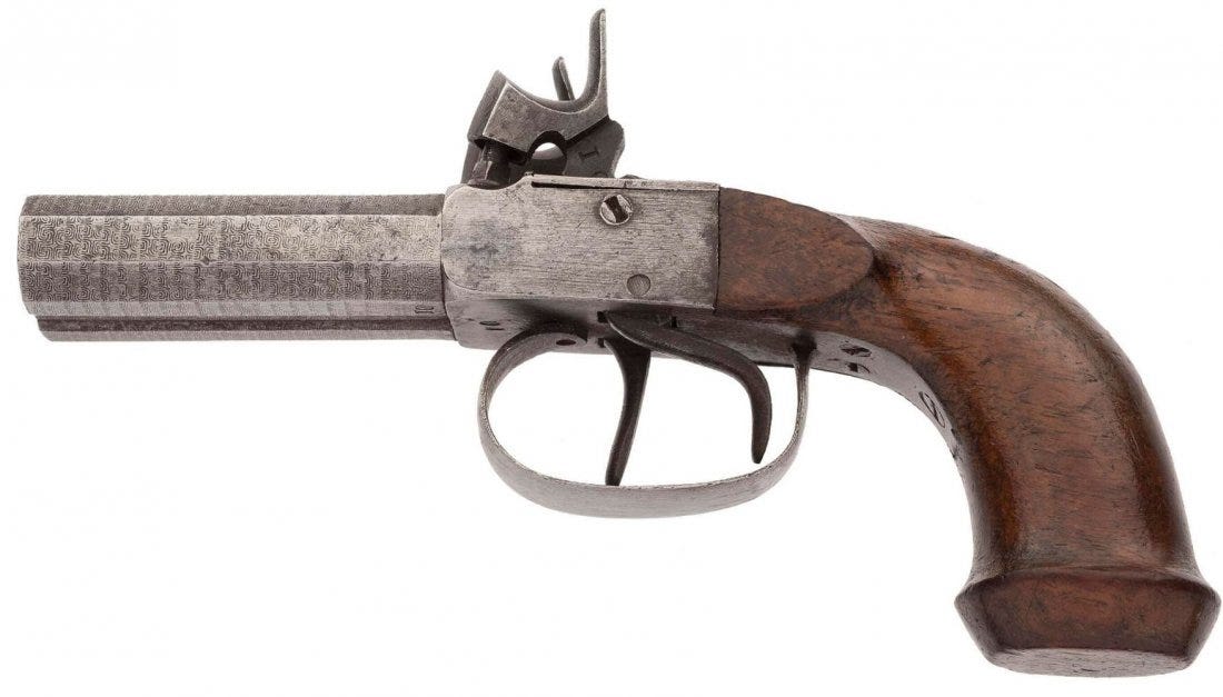 1840 to 1860 double barrel percussion pistol. – 45 gauge.