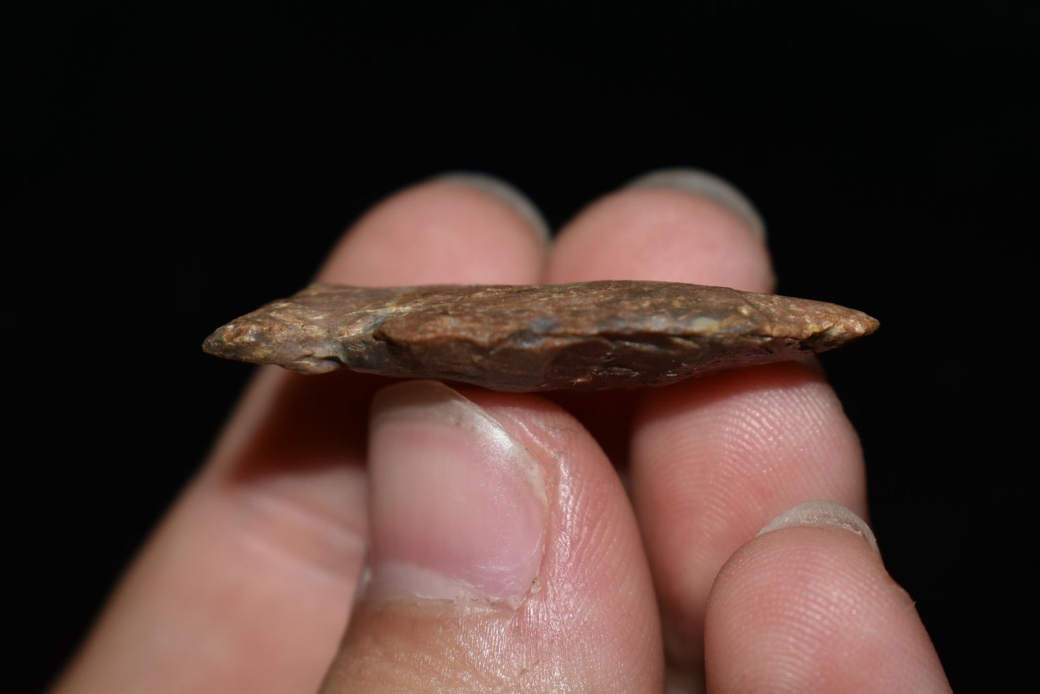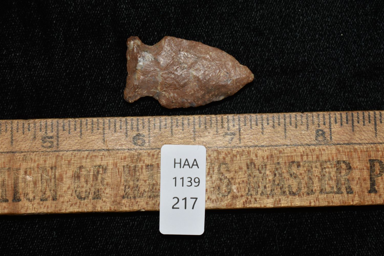 1 3/8" Robinson found in Greene Co., Illinois, Heavily Rover Bottom Patinated, Authentic Native American Arrowhead