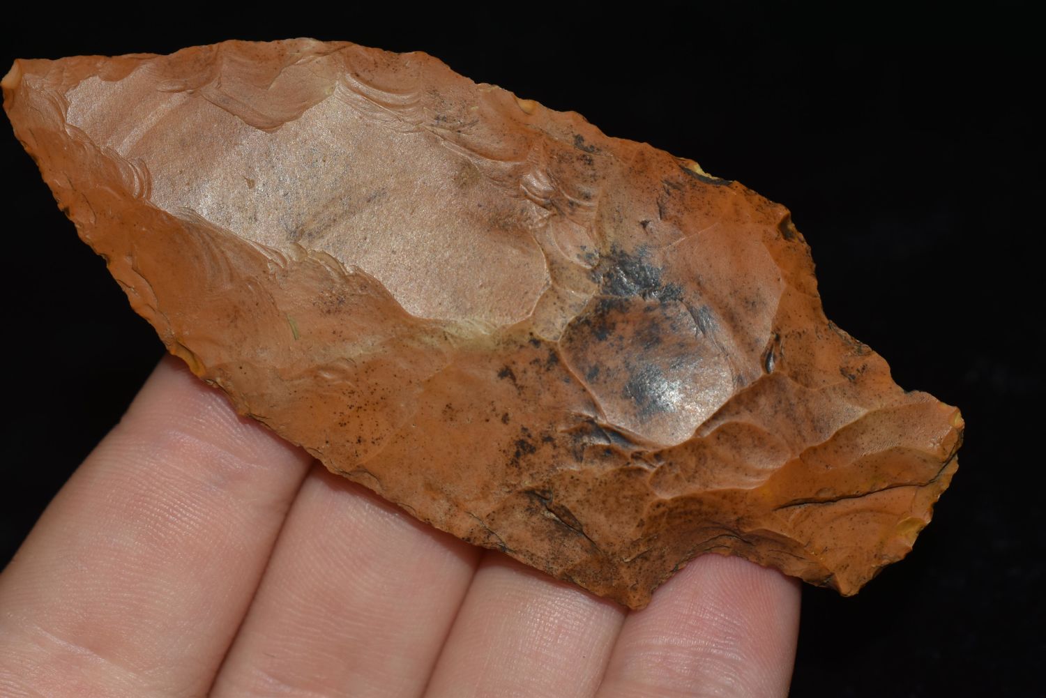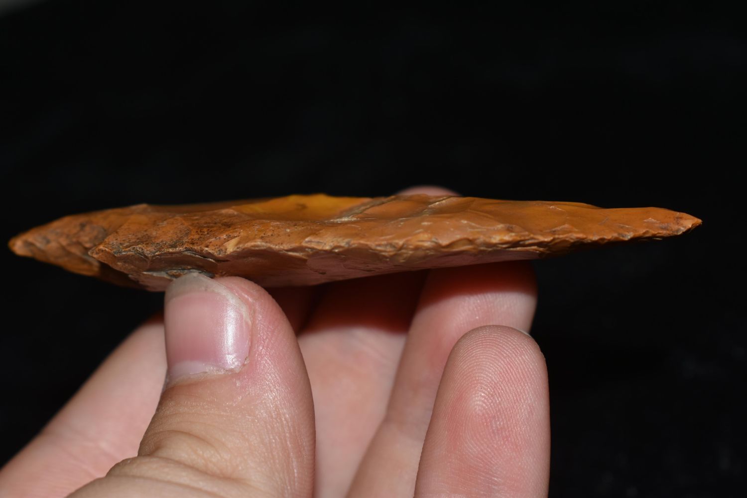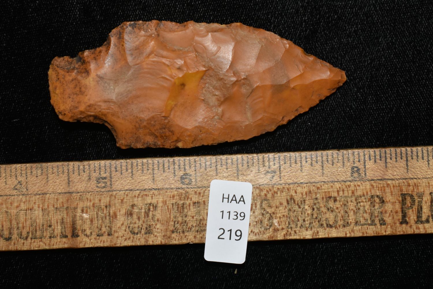 3 1/2" Etley River Stained Orange, found in Madison Co., Illinois, Authentic Native American Arrowhead