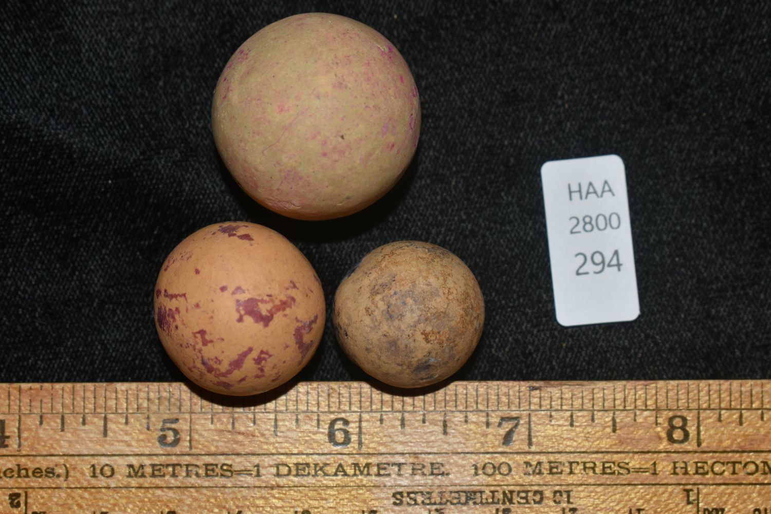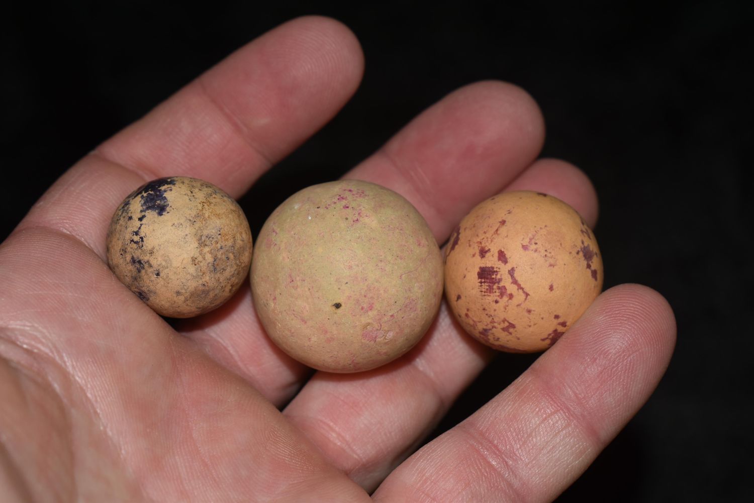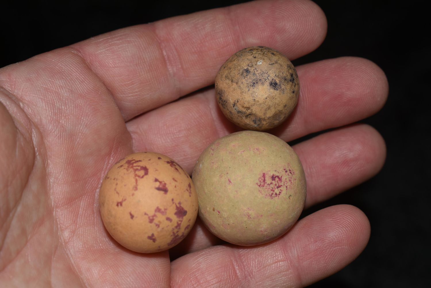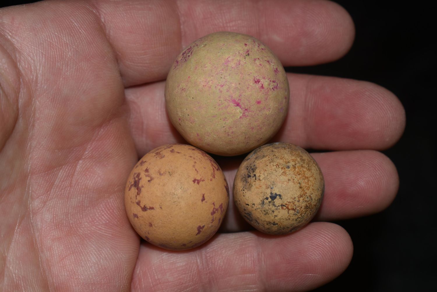 Grouping of 3 Large Clay Marbles / Game Balls
