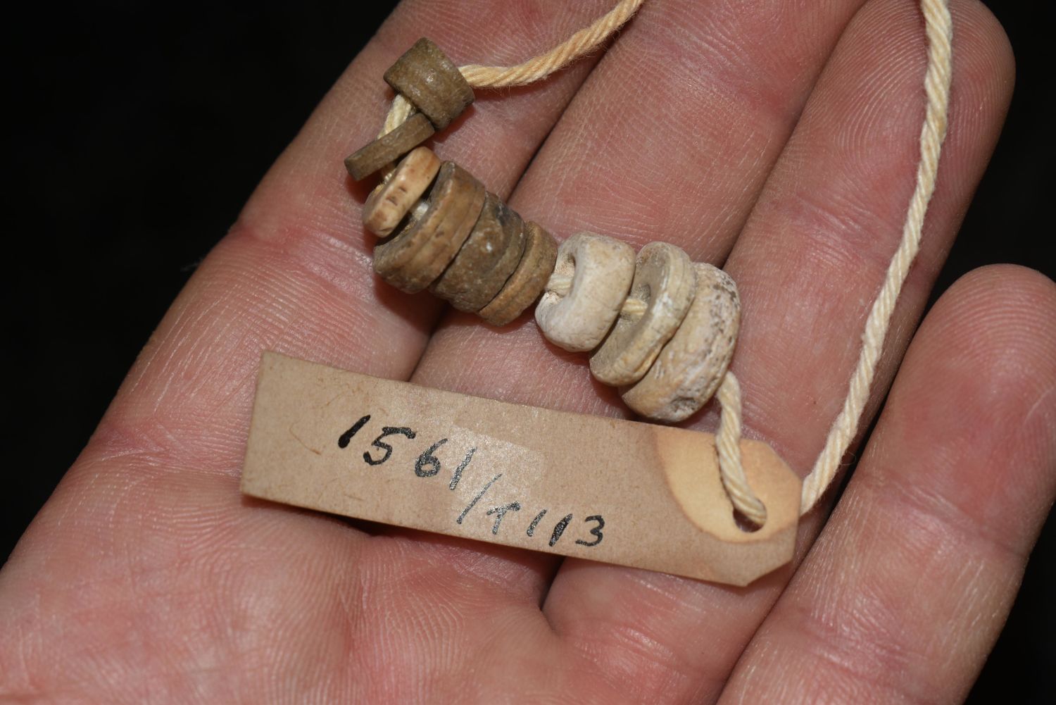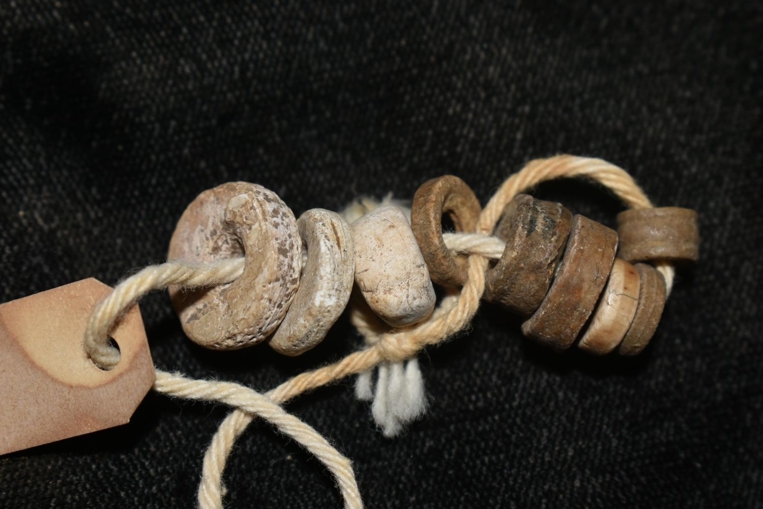 Grouping of crinoid and shell beads, Tennessee