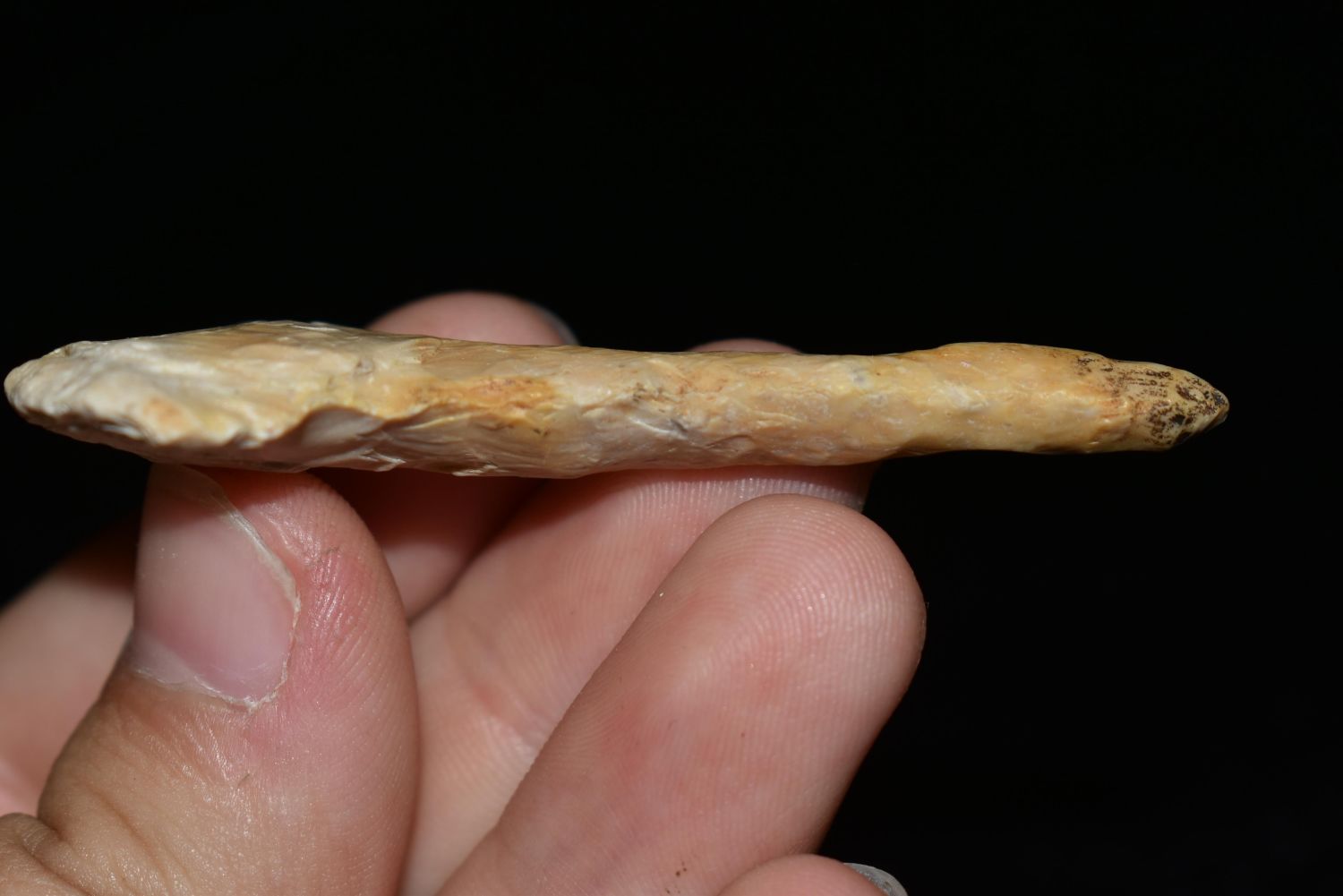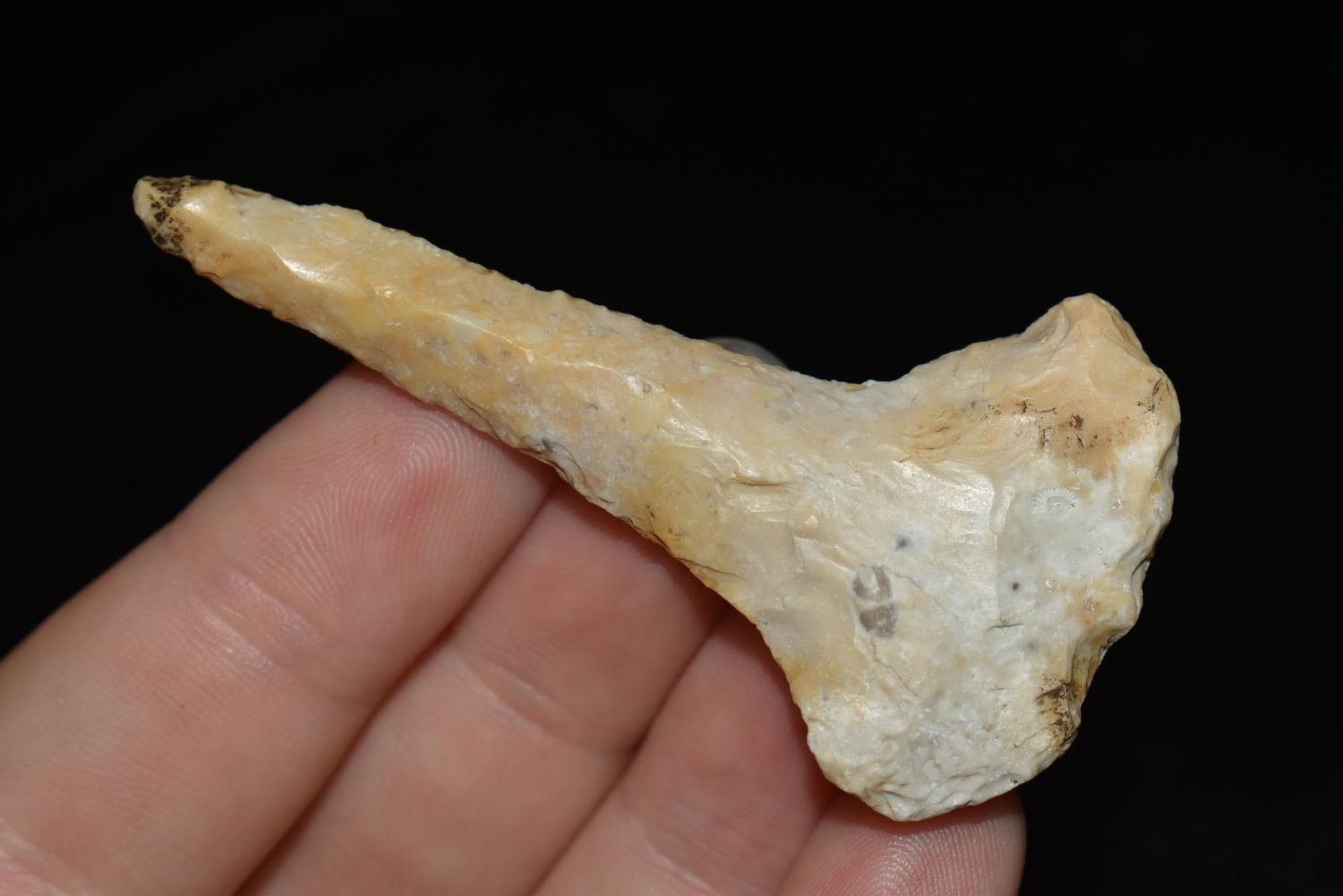Outstanding 2 1/2" creek stained Paddle Drill found in Cedar County, MO, Authentic Native American Arrowhead
