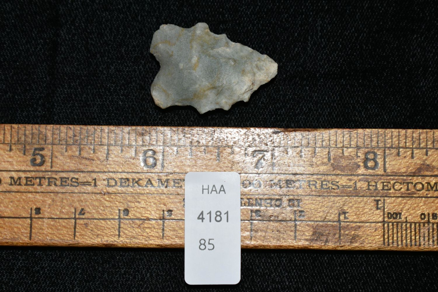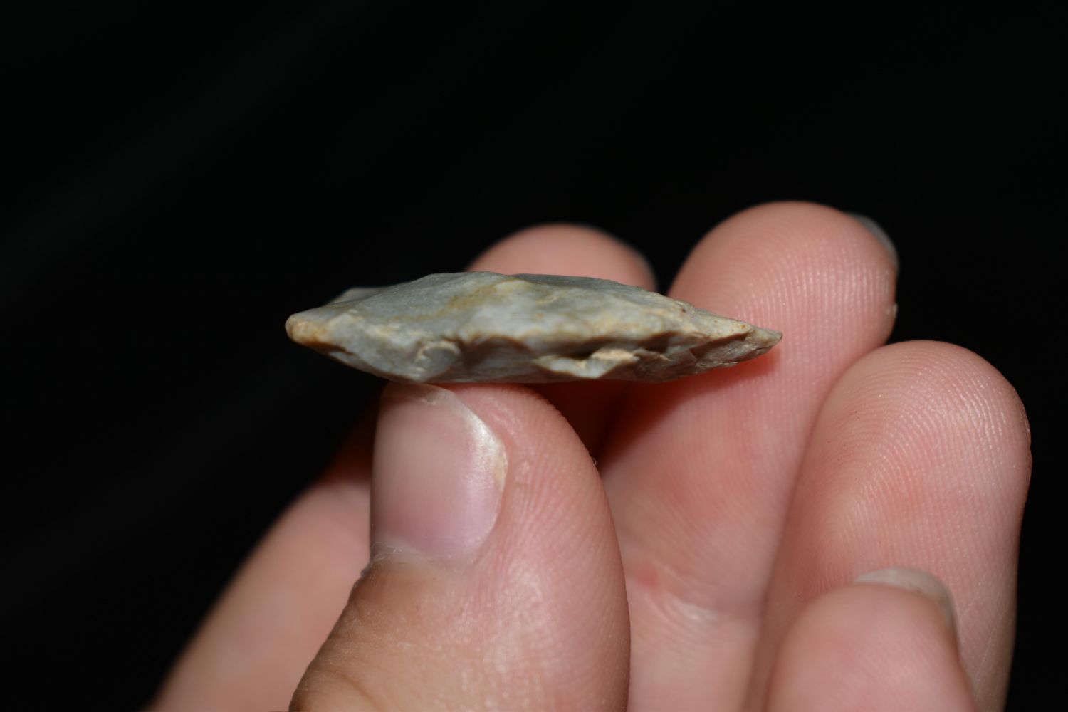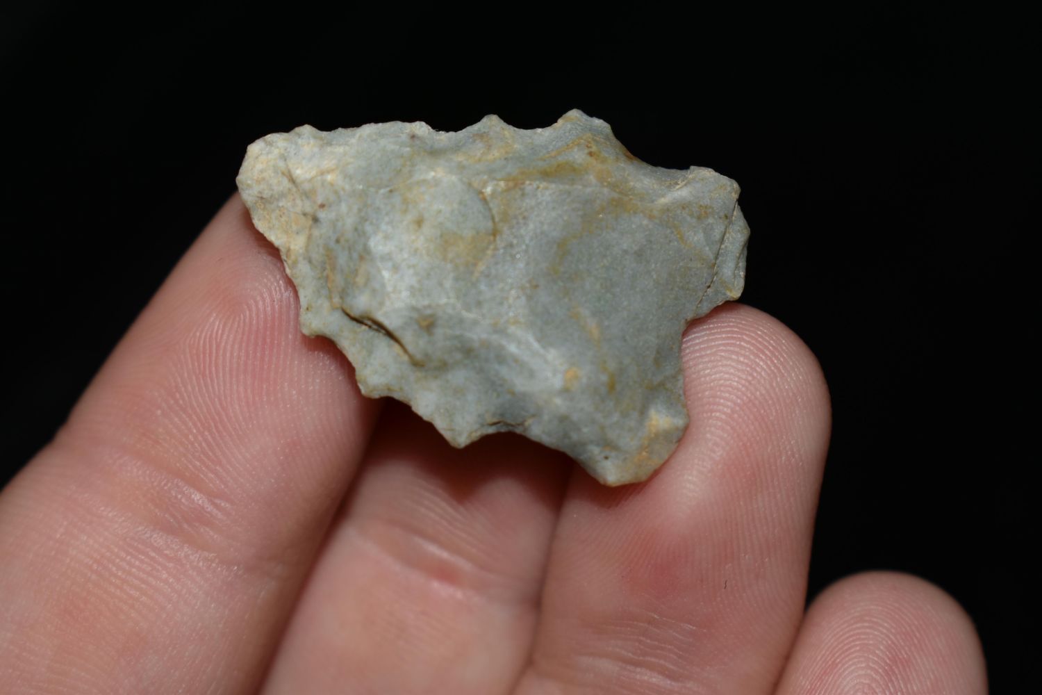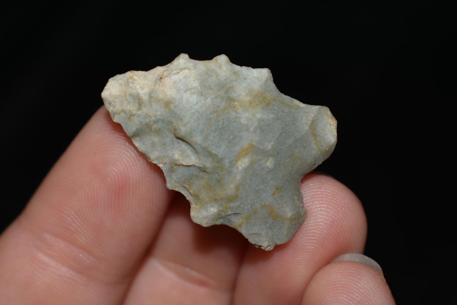 1 1/4" Serrated MacCorckle, found in Montgomery Co. Indiana Made of Attica Chert/Indiana Green