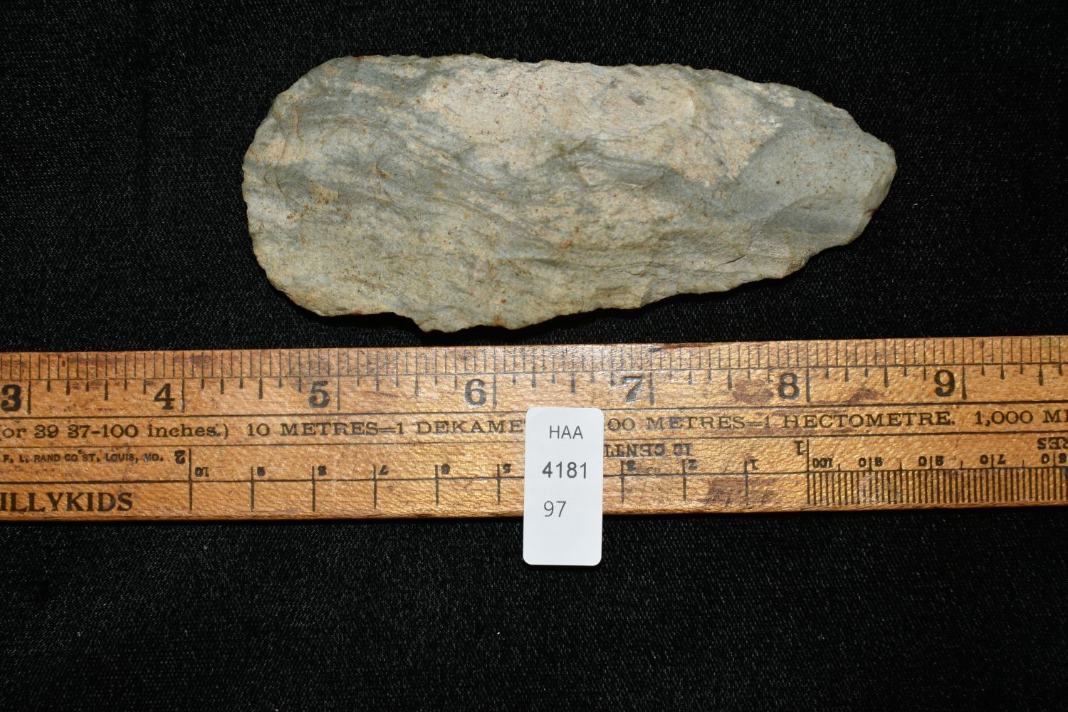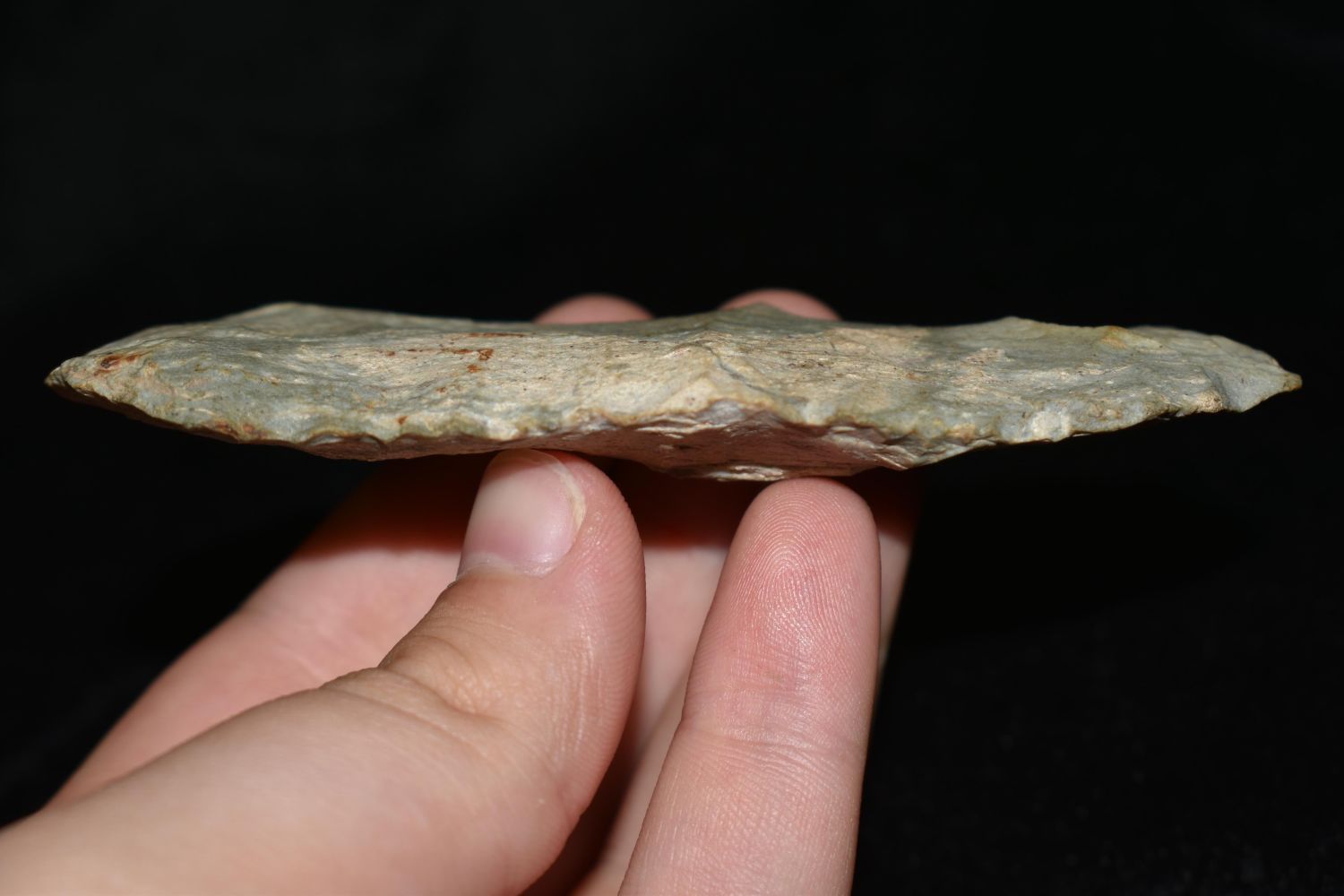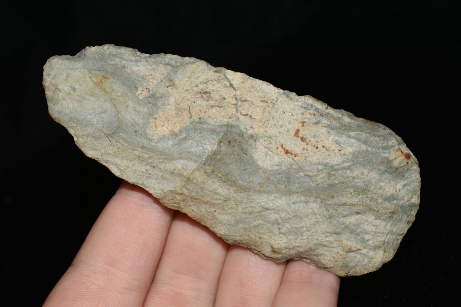 4 1/4" Archaic Blade, found in Montgomery Co. Indiana Made of Attica Chert/Indiana Green