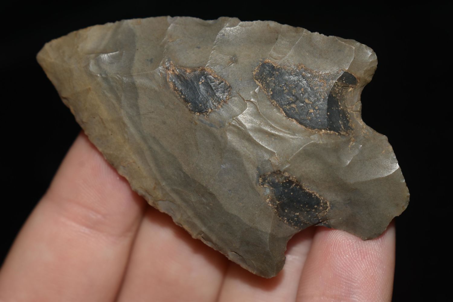 2 1/2" Colorful Banded Snyders found in Kentucky, Authentic Native American Arrowhead