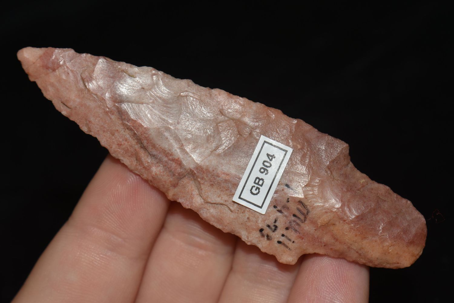 3 1/4" Adena, MU-11, 1/4/1973, Ex. Gerald Bernacchi Coll. Authentic Native American Arrowhead