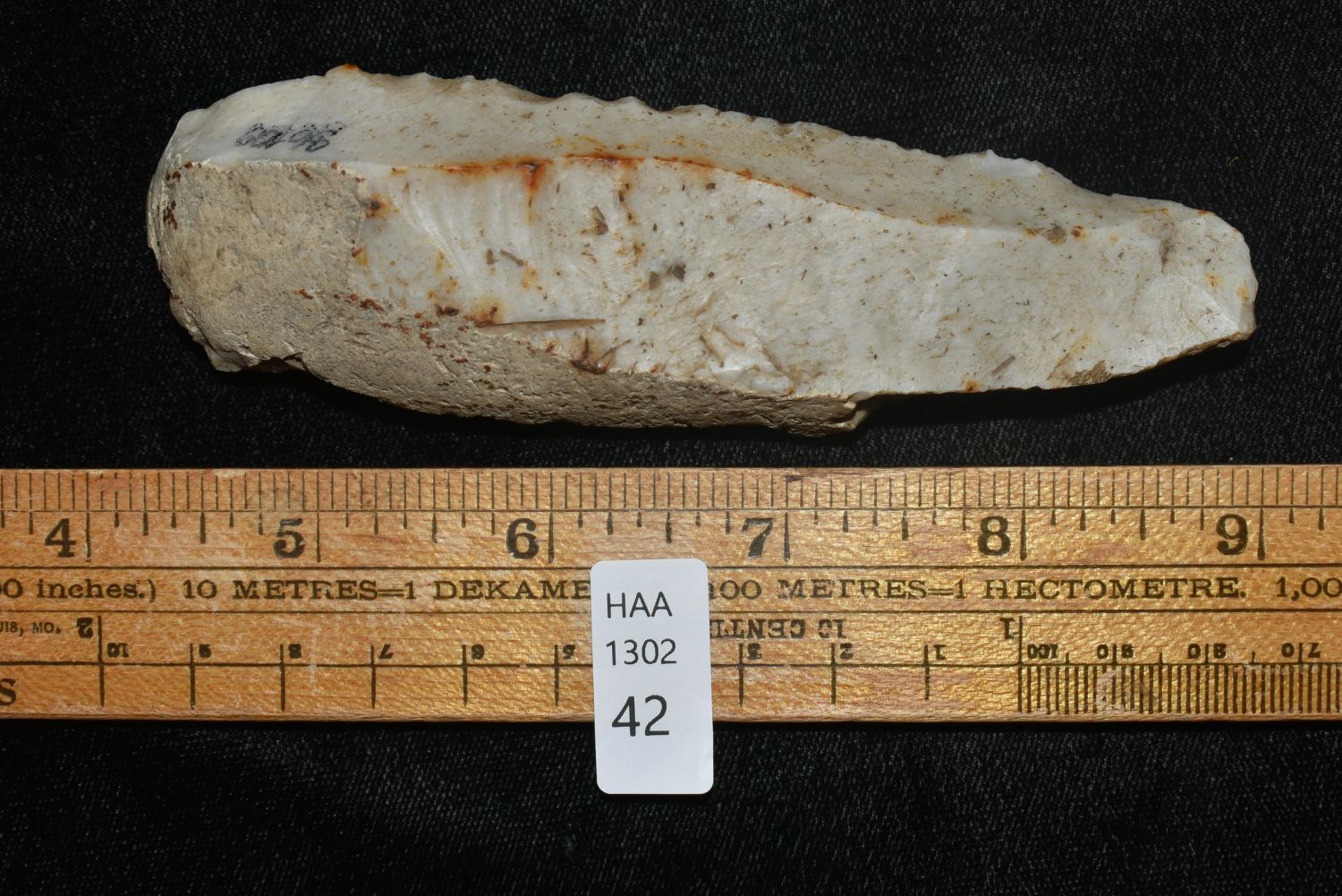 4 3/4" Danish Flake Knife, Well Used, Ex. Gerald Bernacchi Coll. Authentic Native American Arrowhead