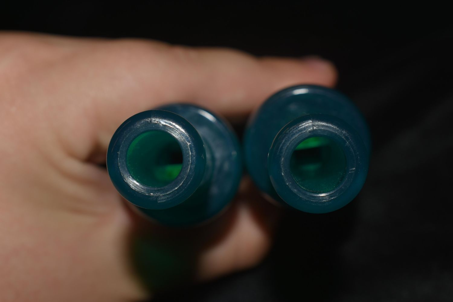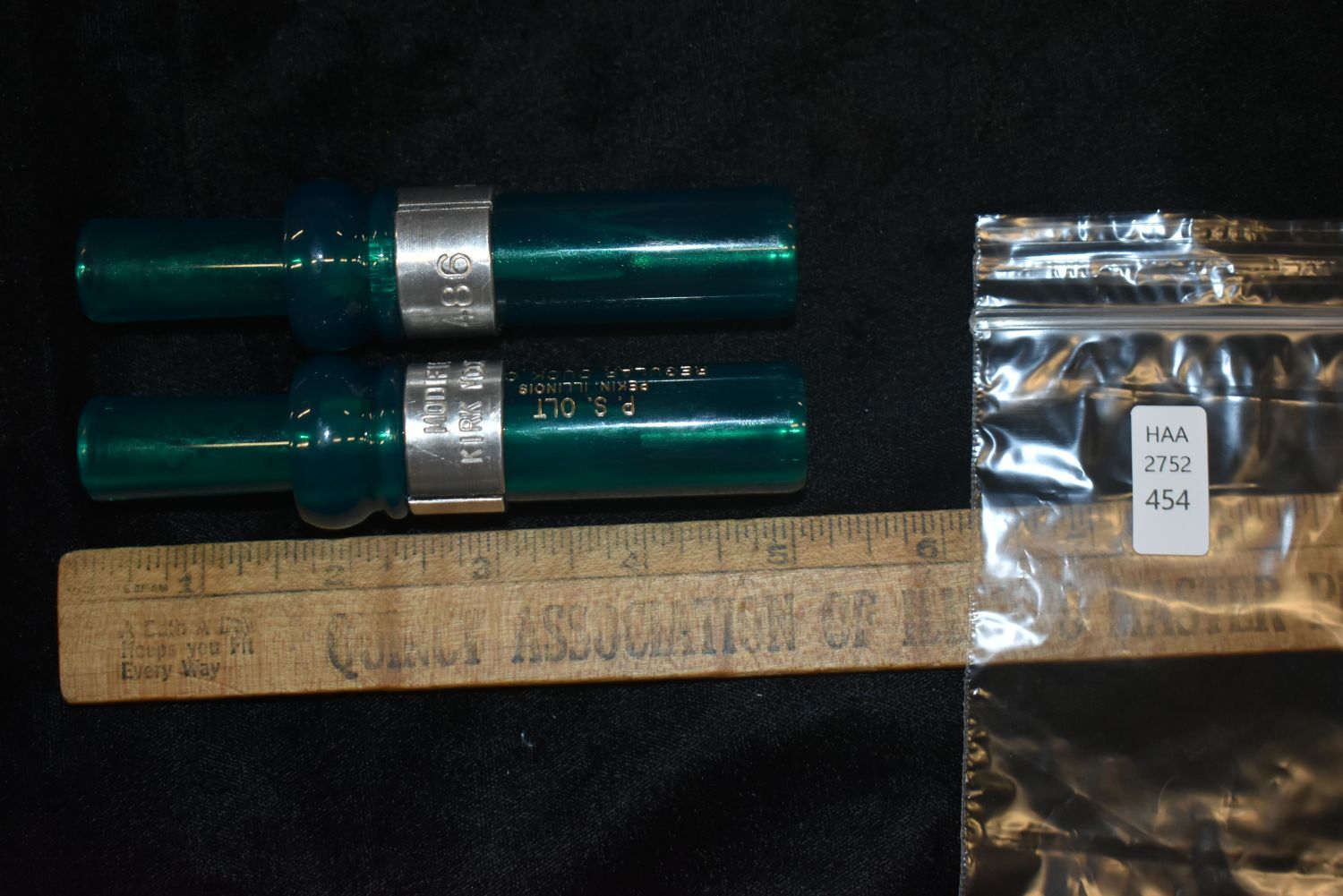 Pair of Olt D-2 Green Acrylic Duck call modified by Kirk McCullough seriel #486