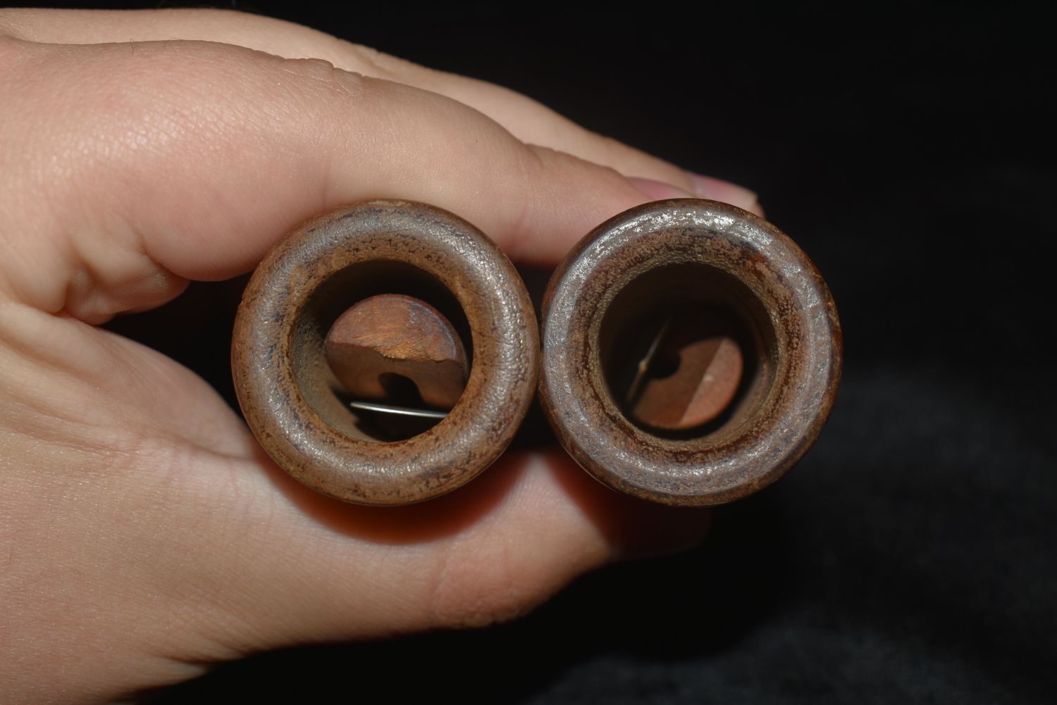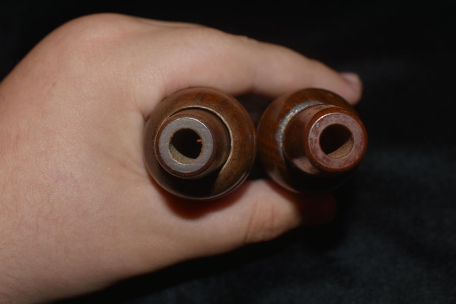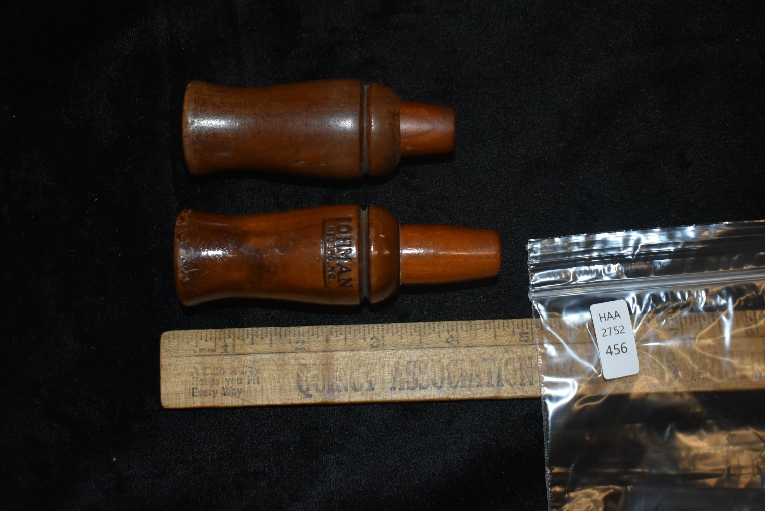 Lot of 3 Lohman wooden duck calls- 2 are marked Lohman insdie the stopper, one has Lohman on the exterior on the barrel