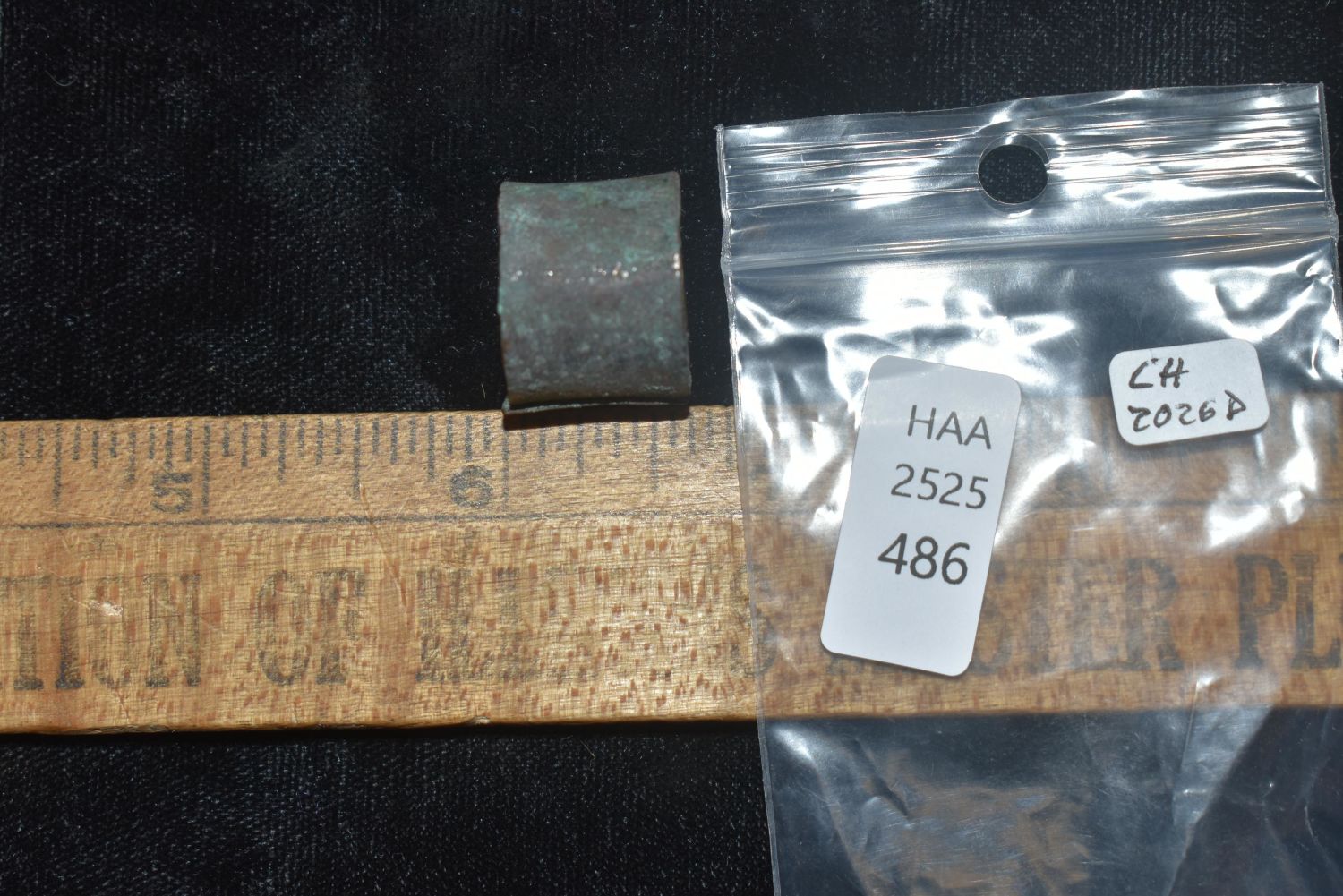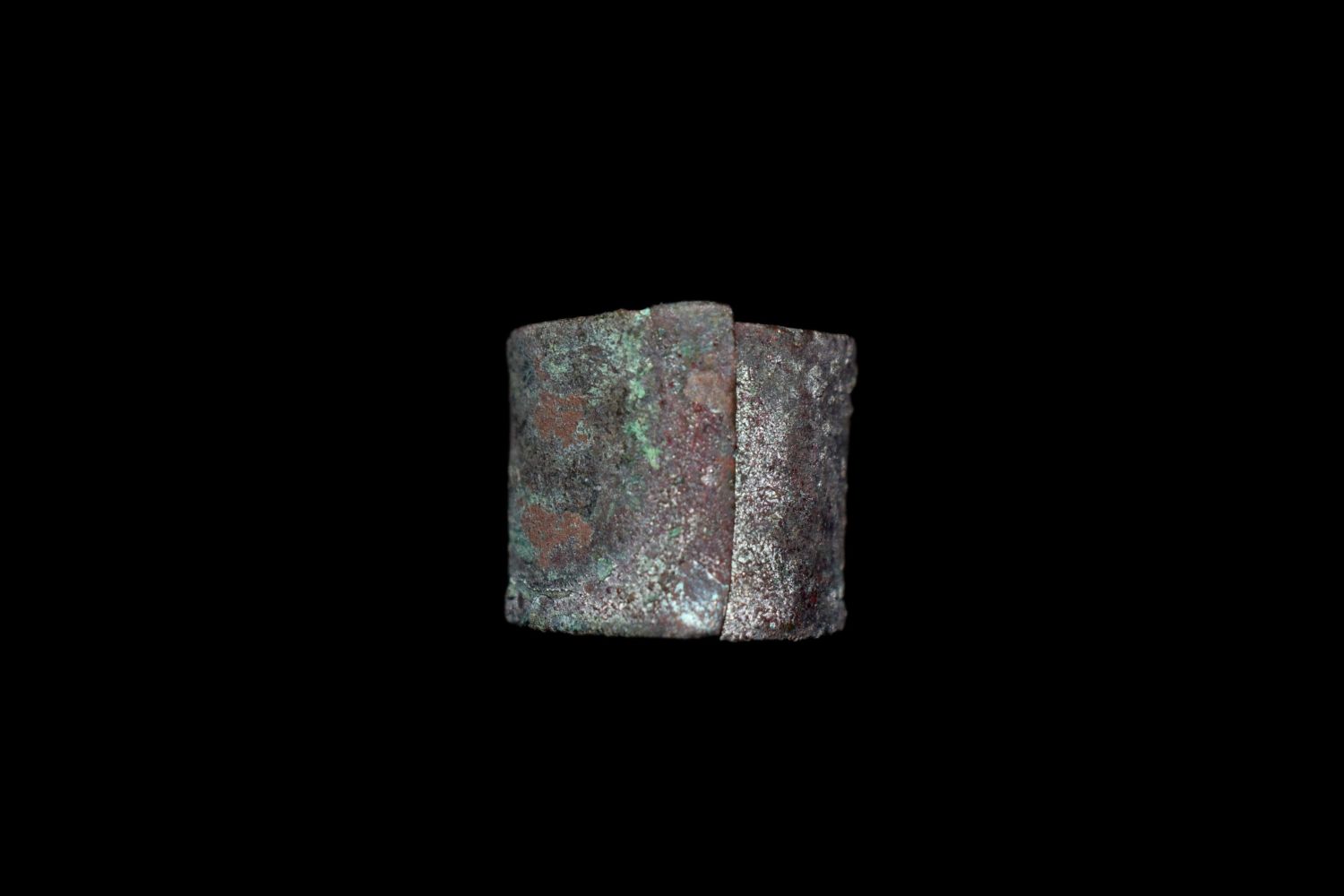 A fine Chimu copper ring from Peru, ca. 1100 – 1450 AD. It is 3/4” in diameter, 5/8” wide and has good mineral encrustation.