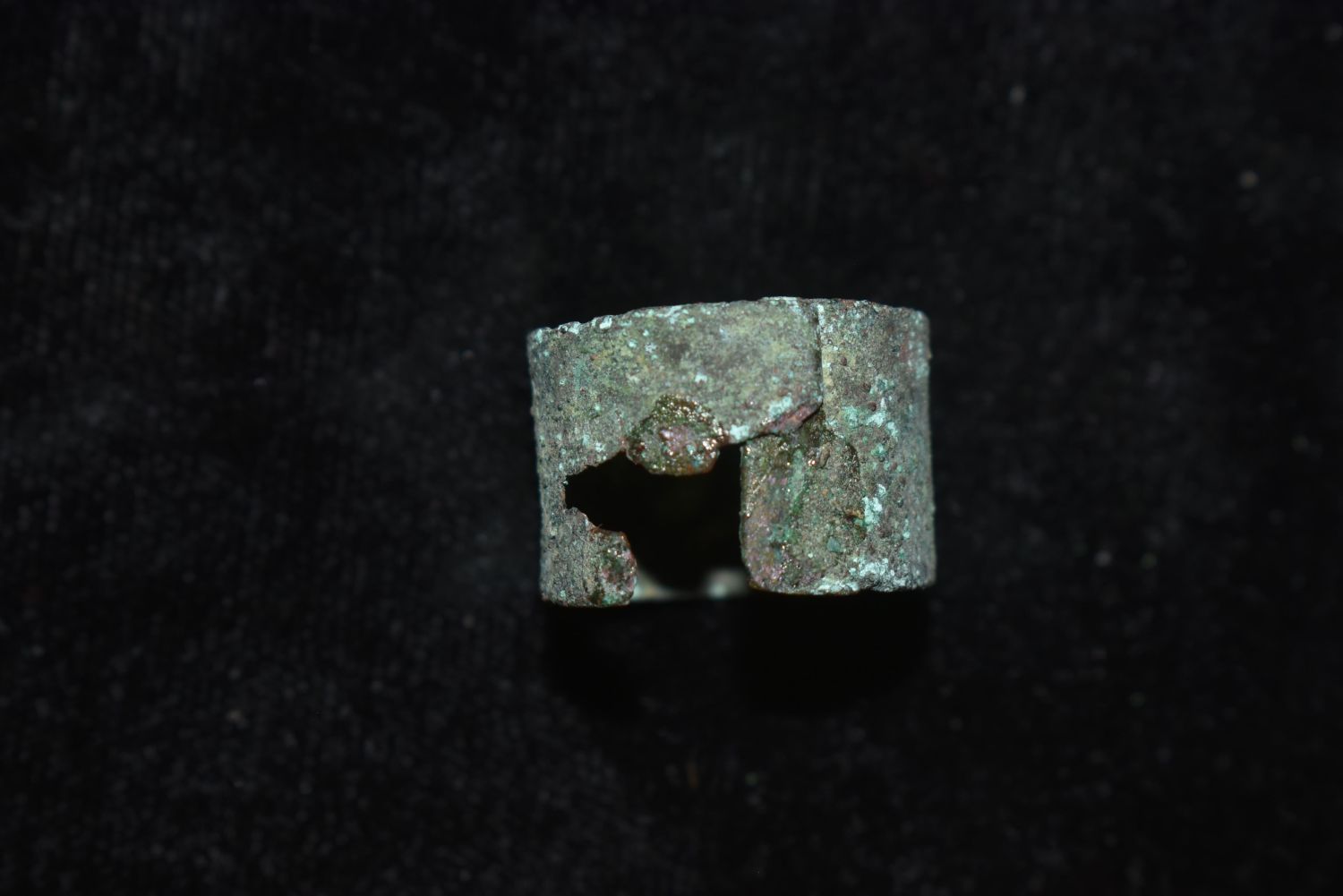 A fine Chimu copper ring from Peru, ca. 1100 – 1450 AD. It is 3/4” in diameter, 1/2” wide and has good mineral encrustation.