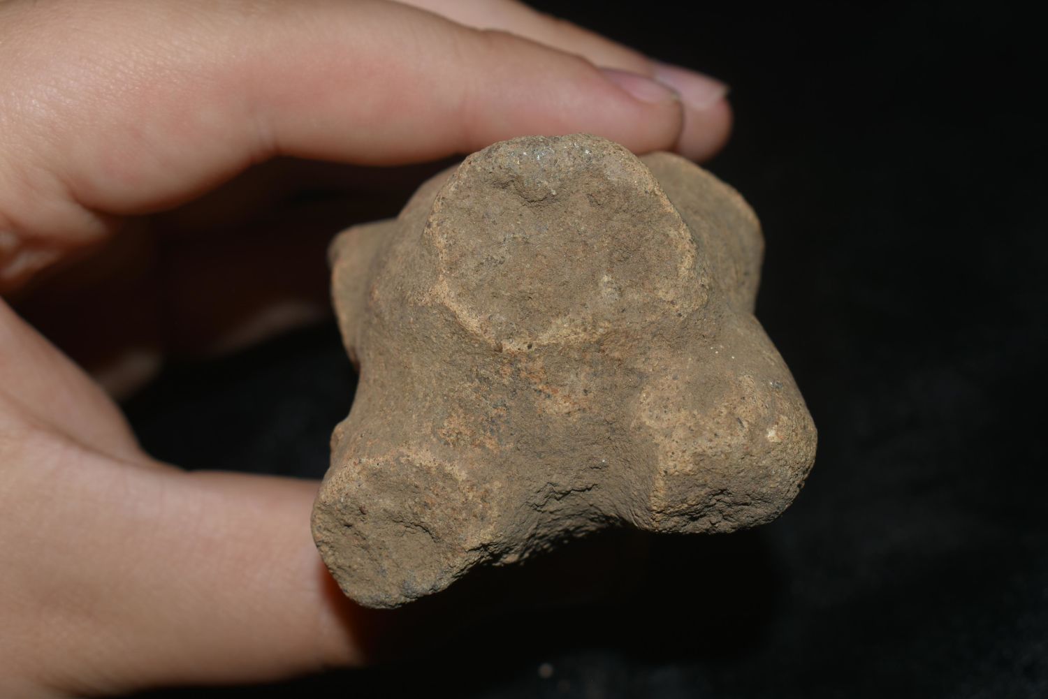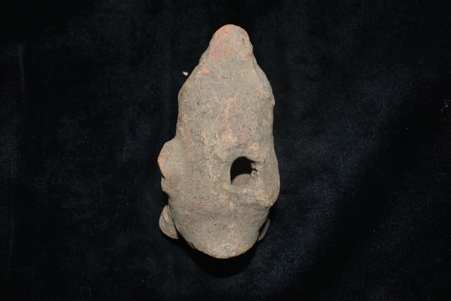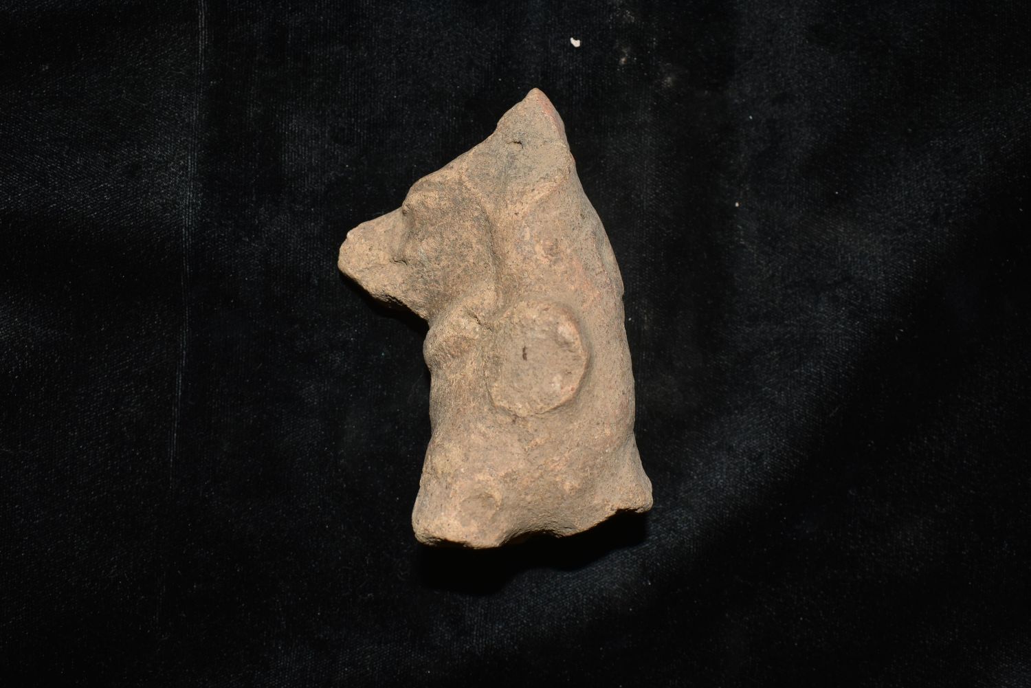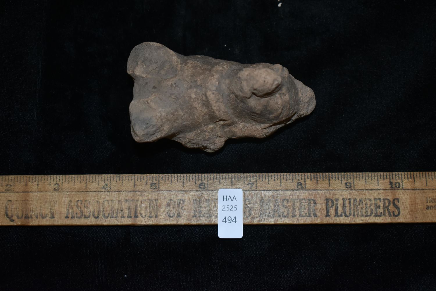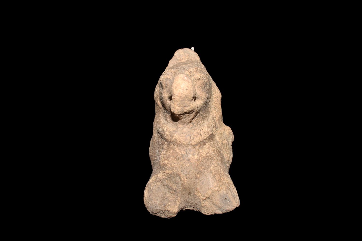 A fine Maya zoomorphic deity figure from Guatemala, ca. 400 – 700 AD. It is 3-3/4” high and depicts the deity adorned with a necklace. Strong mineral deposits.