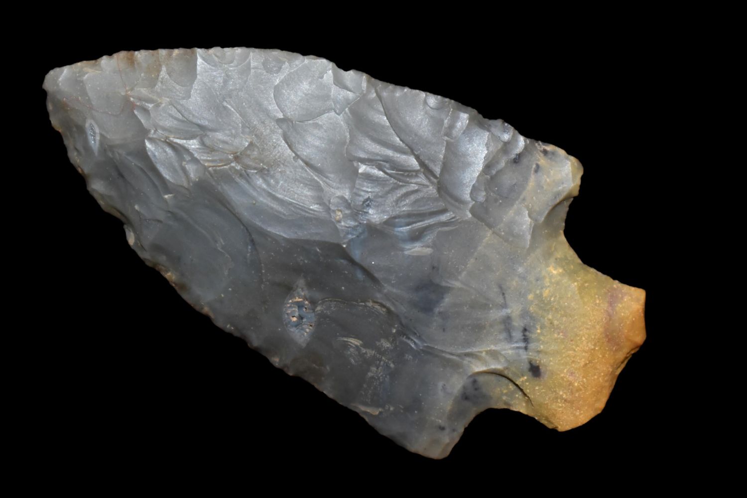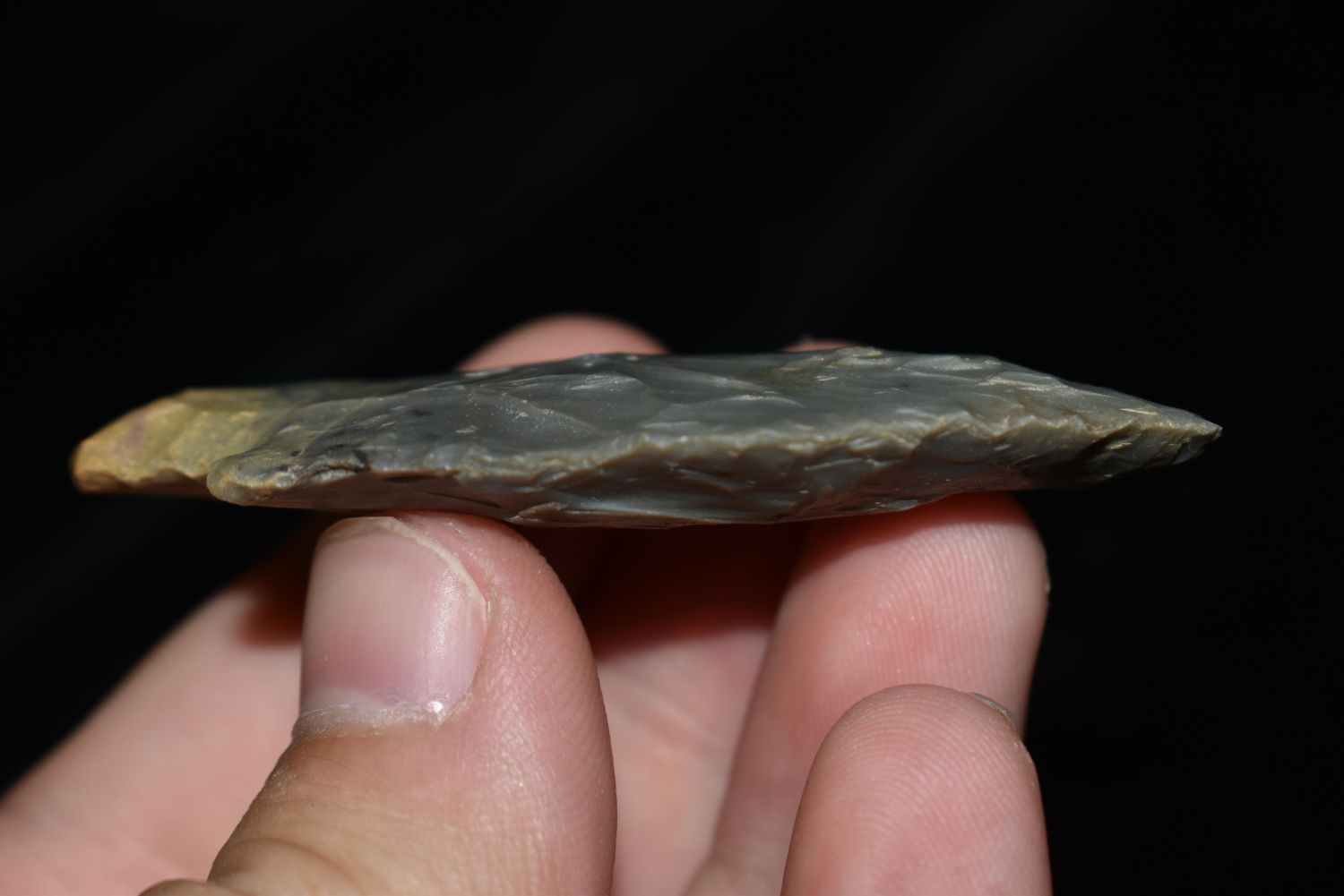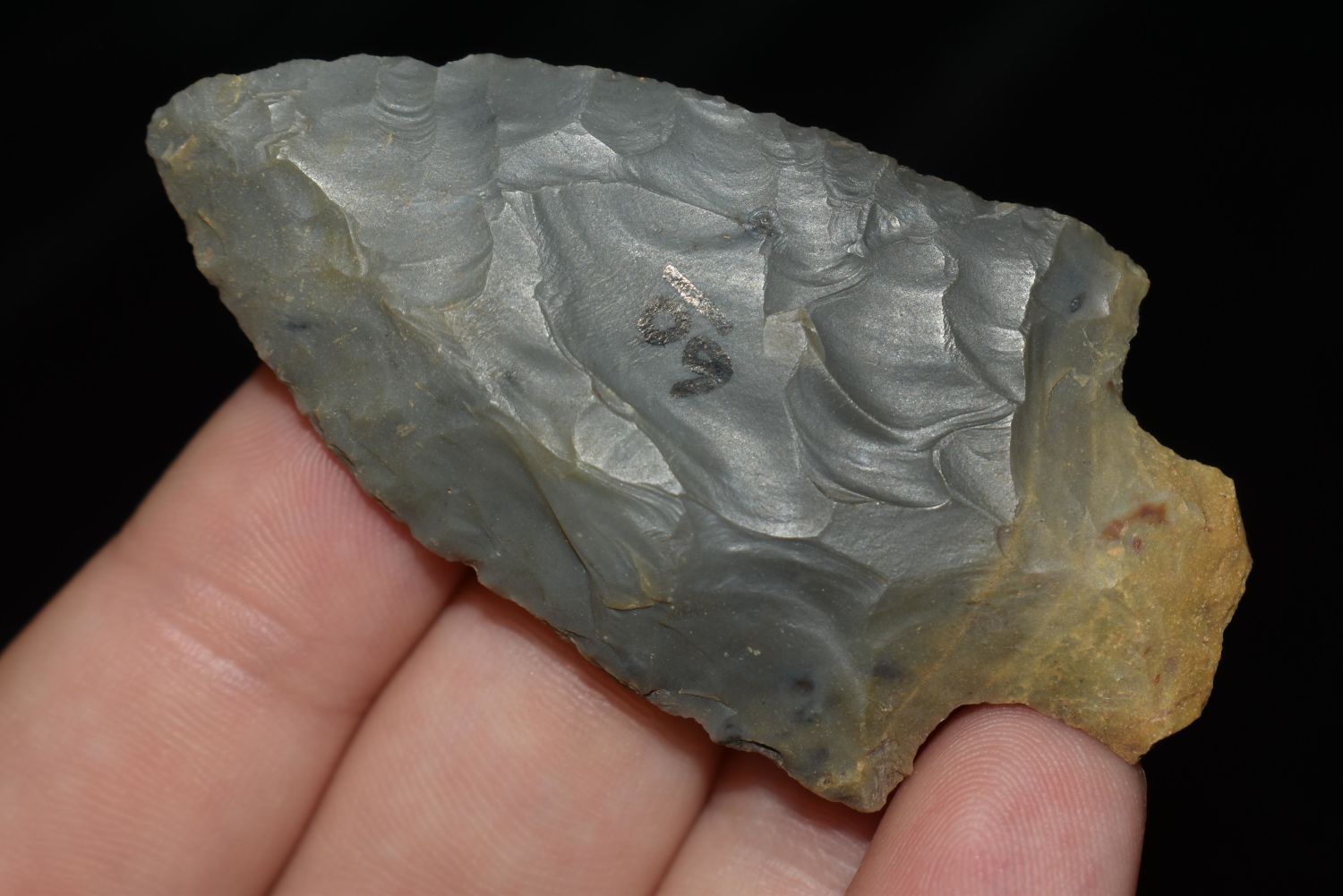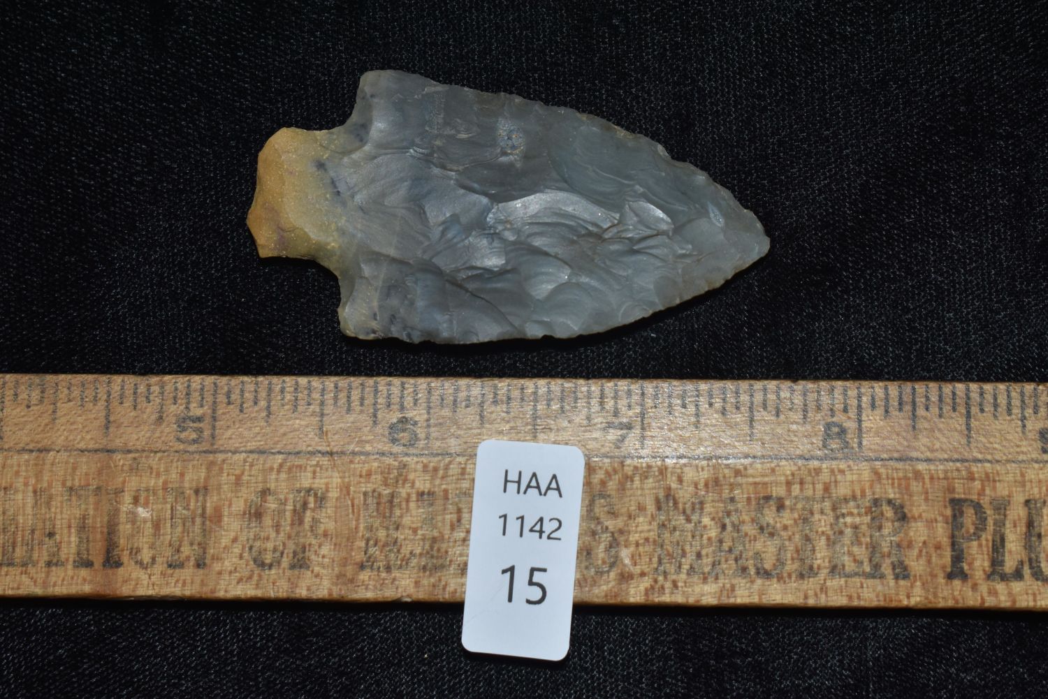 2 3/8" BENTON FOUND IN BENTON/HUMPHREYS COUNTY TENNESSEE, EX SIMMS COLLECTION, NATIVE AMERICAN INDIAN ARROWHEAD