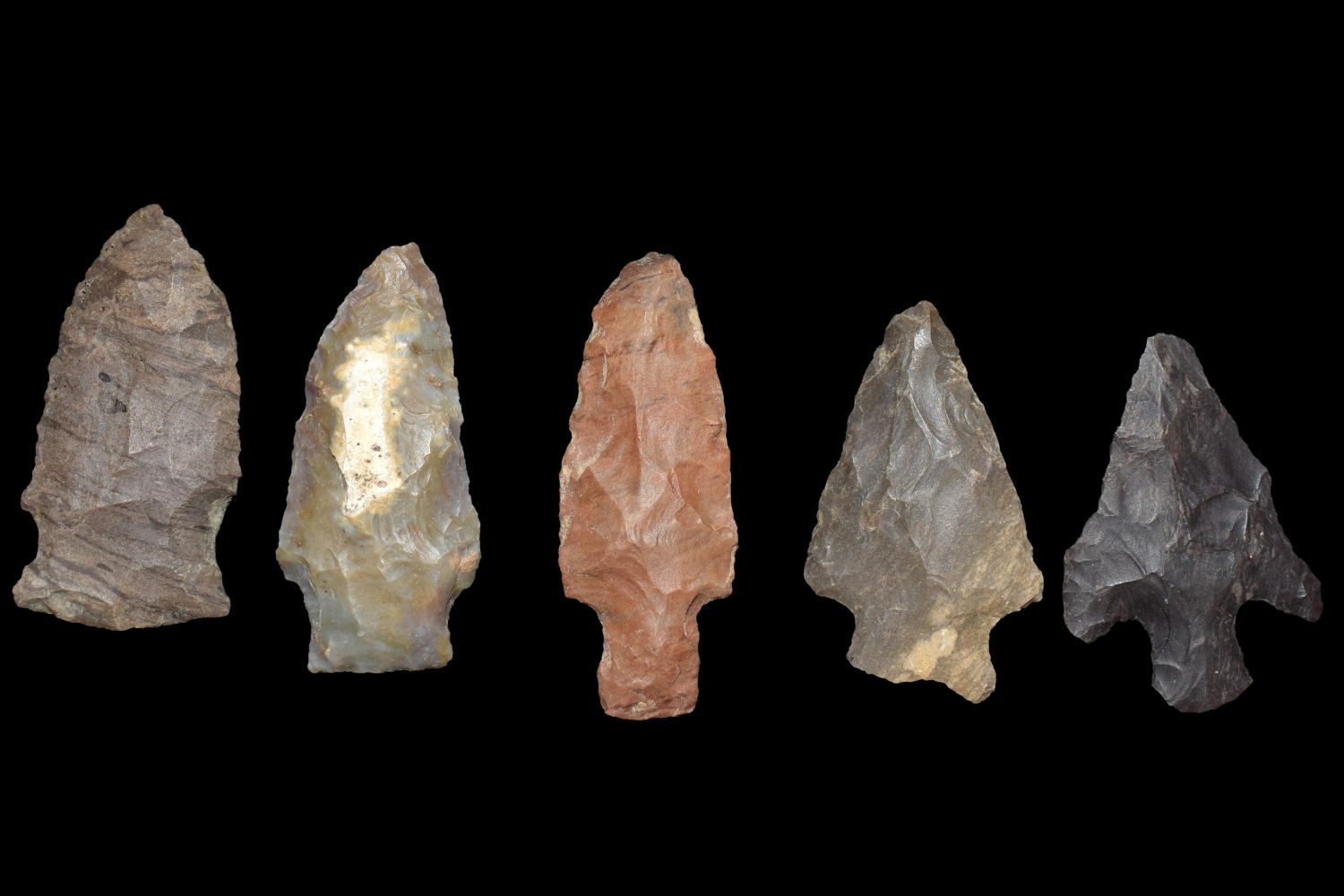 LOT OF 5 ARCHAIC ARROWHEADS FOUND IN BENTON/HUMPHREYS