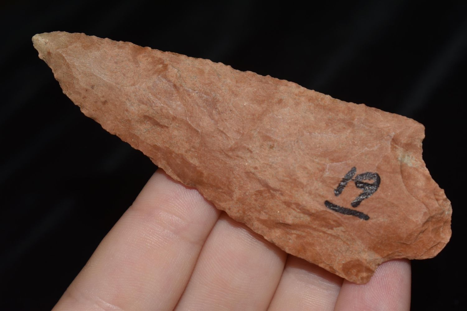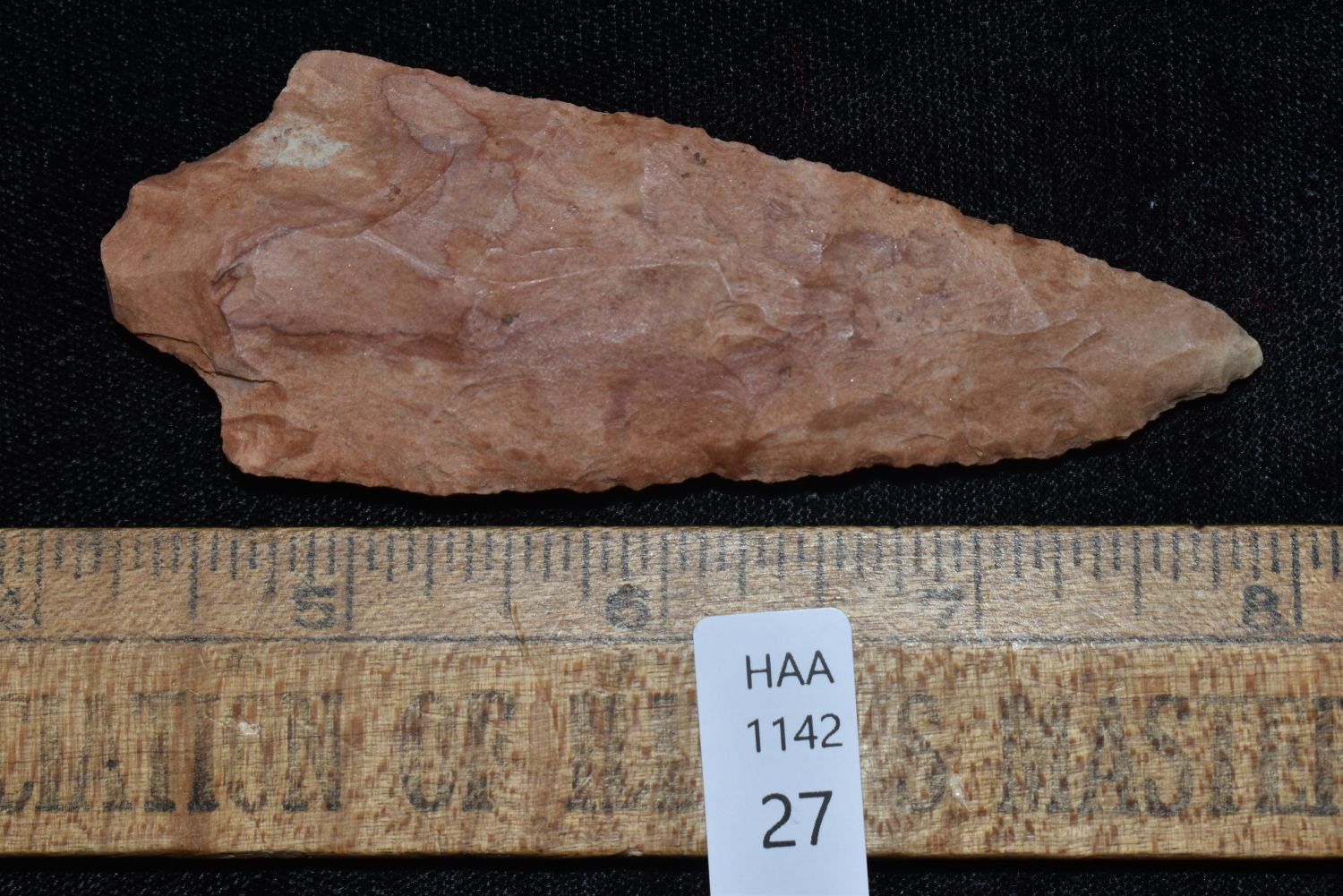 NICE 3 3/4" COLORFUL PICKWICK FOUND IN BENTON/HUMPHREYS COUNTY TENNESSEE, EX SIMMS COLLECTION, NATIVE AMERICAN INDIAN ARROWHEAD