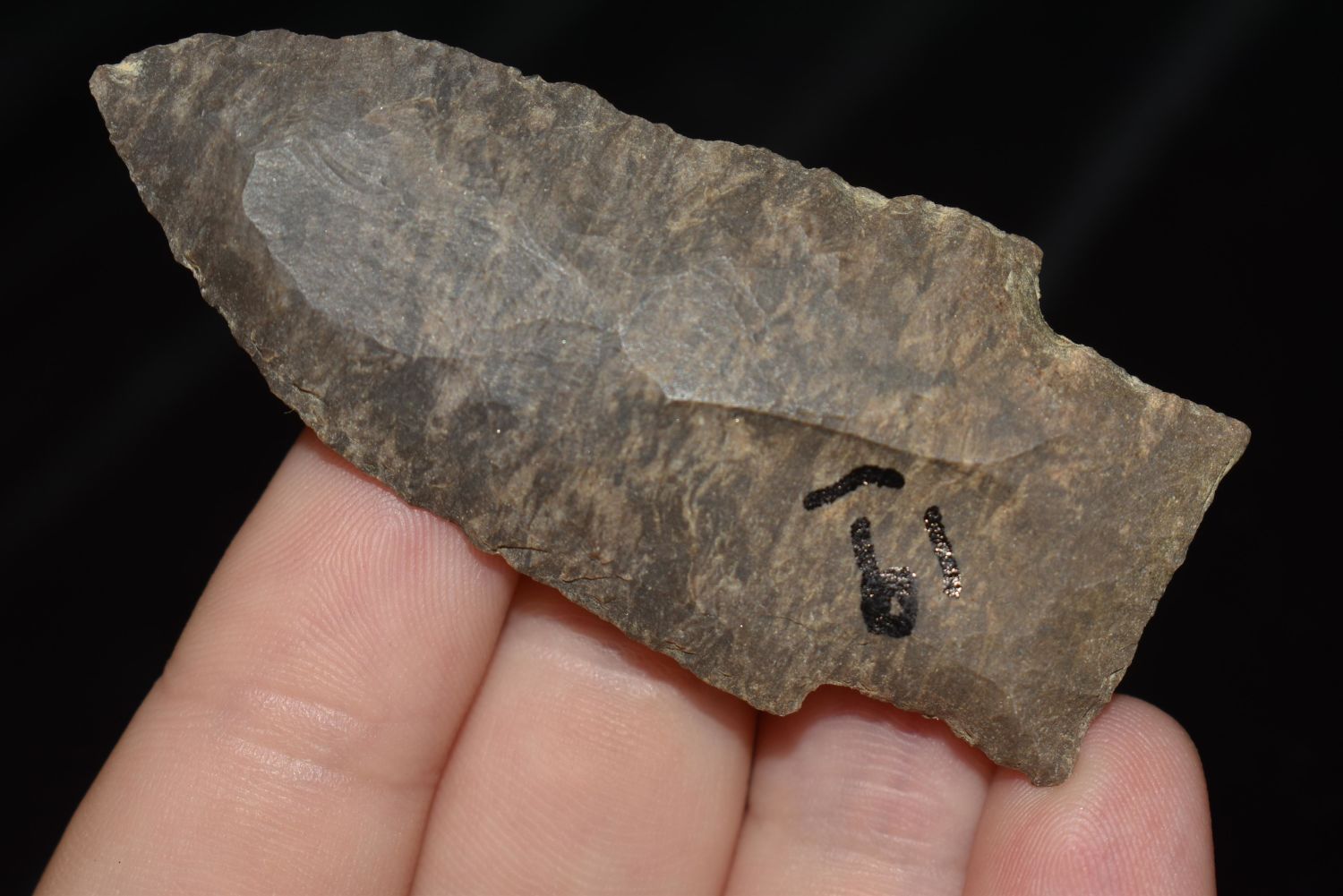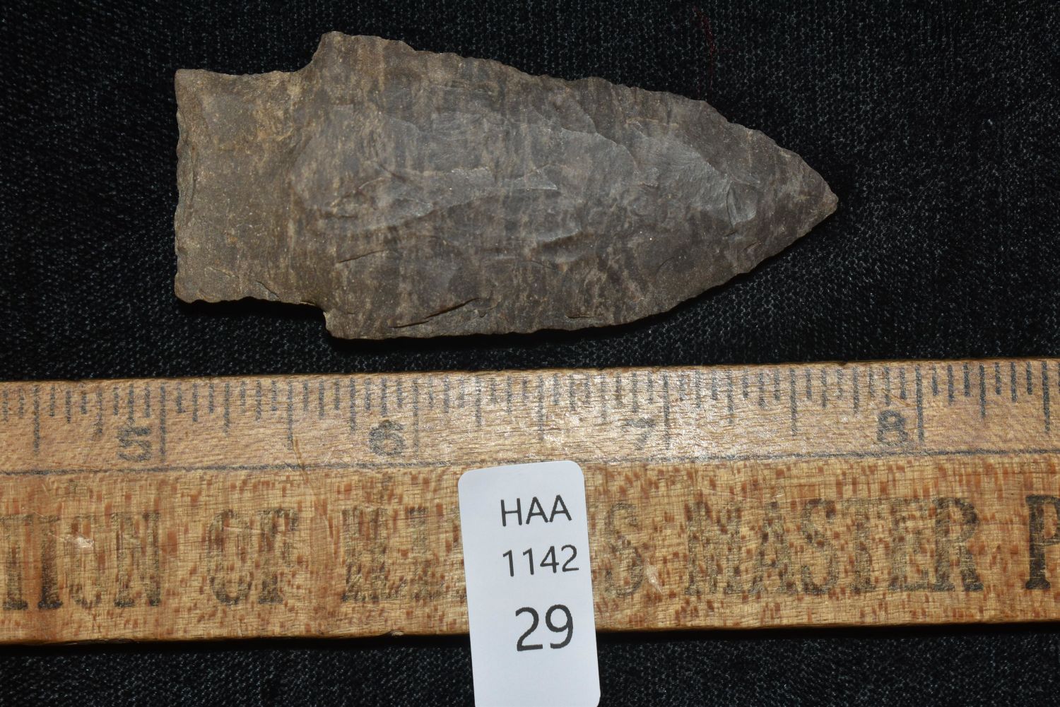 2 5/8" BAKERS CREEK FOUND IN BENTON/HUMPHREYS COUNTY TENNESSEE, EX SIMMS COLLECTION, NATIVE AMERICAN INDIAN ARROWHEAD