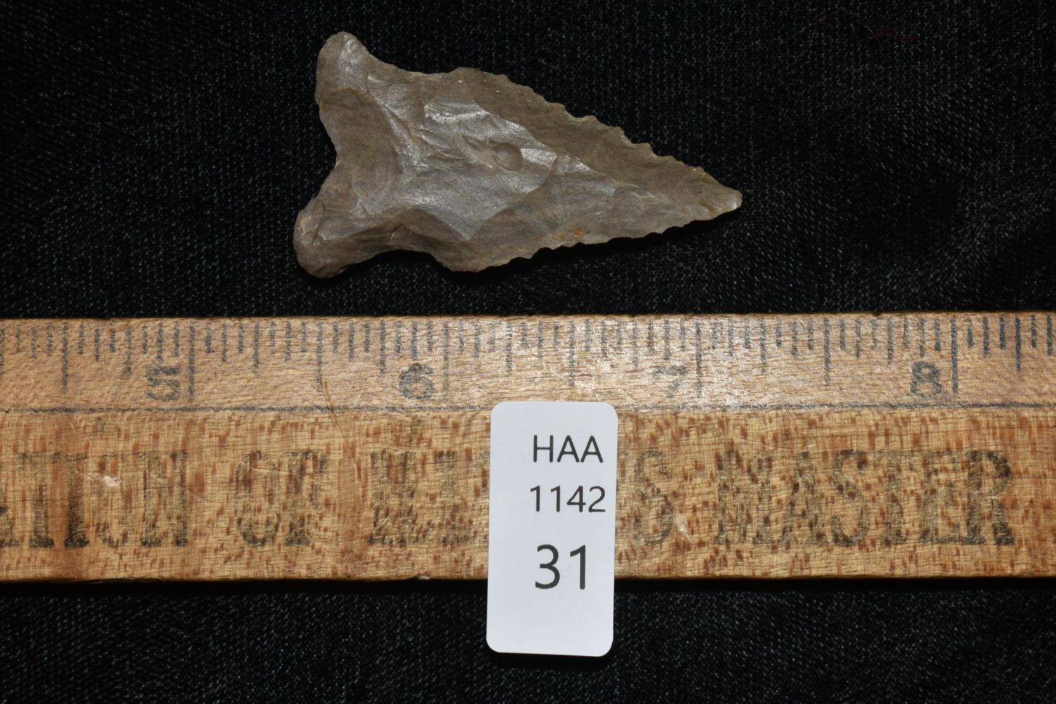 NICE 1 3/4" GREENBRIAR FOUND IN BENTON/HUMPHREYS COUNTY TENNESSEE, EX SIMMS COLLECTION, NATIVE AMERICAN INDIAN ARROWHEAD