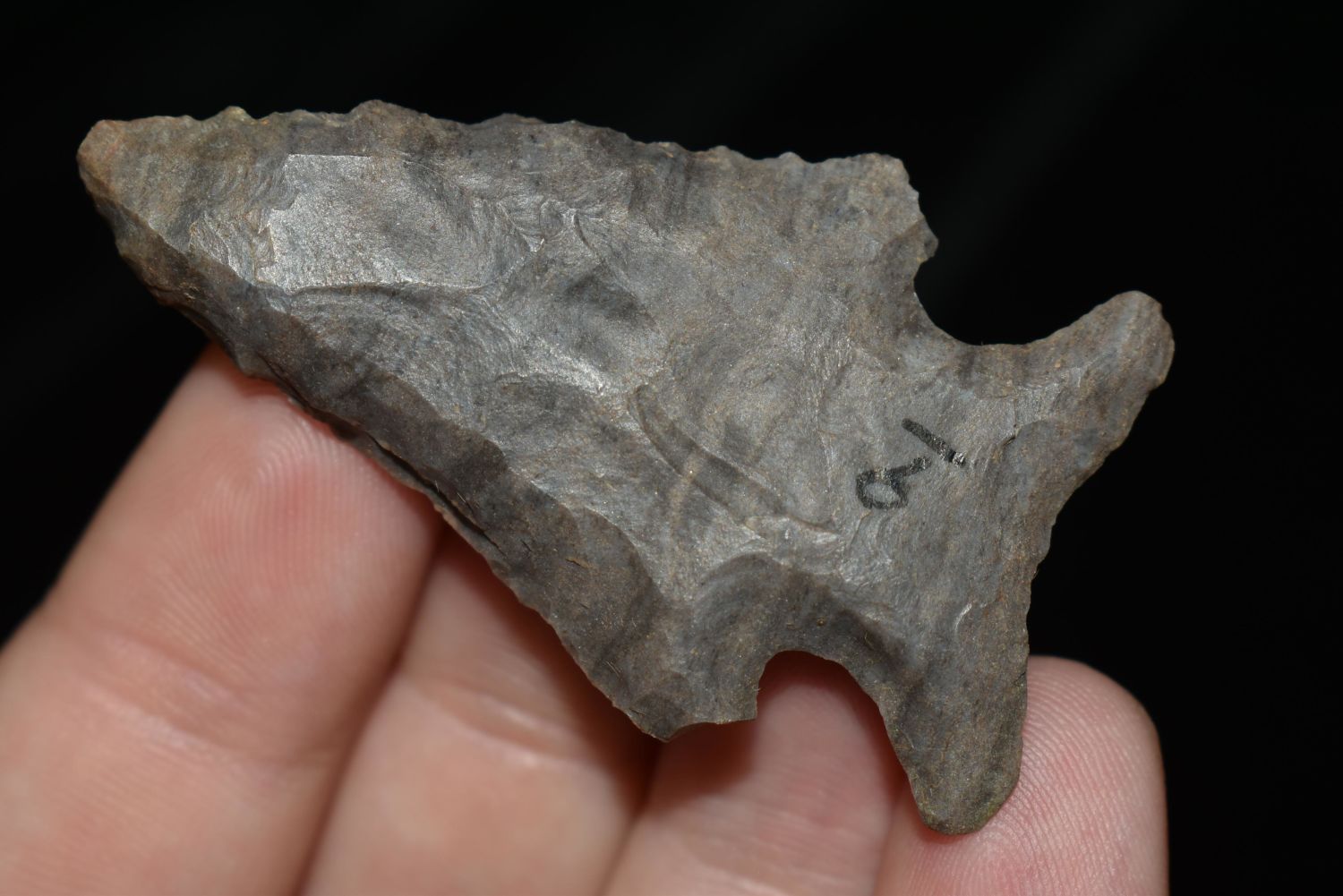 2 3/8" STILLWELL FOUND IN BENTON/HUMPHREYS COUNTY TENNESSEE, EX SIMMS COLLECTION, NATIVE AMERICAN INDIAN ARROWHEAD
