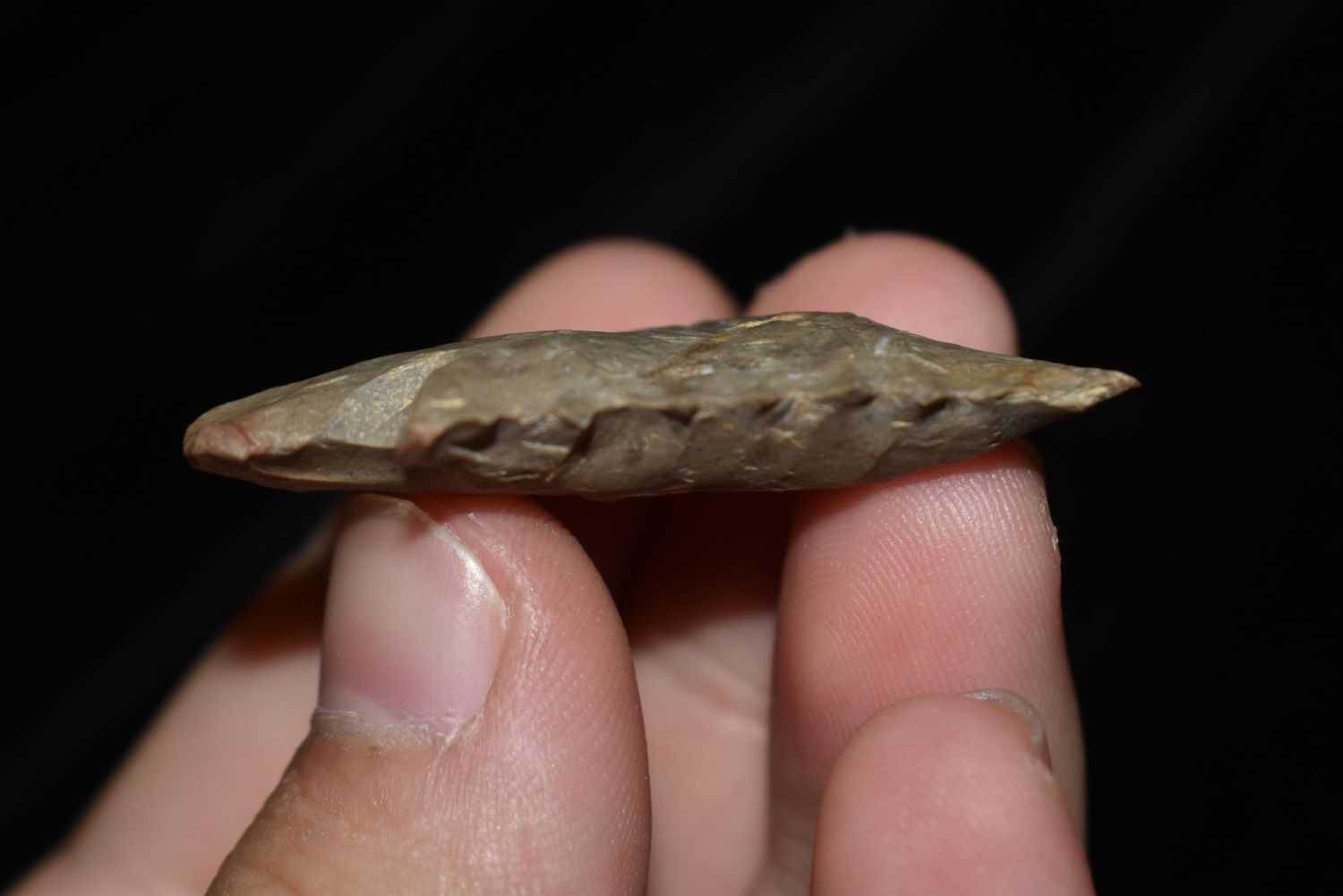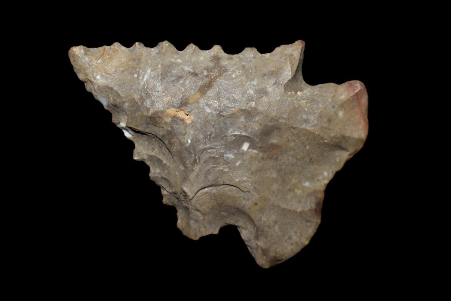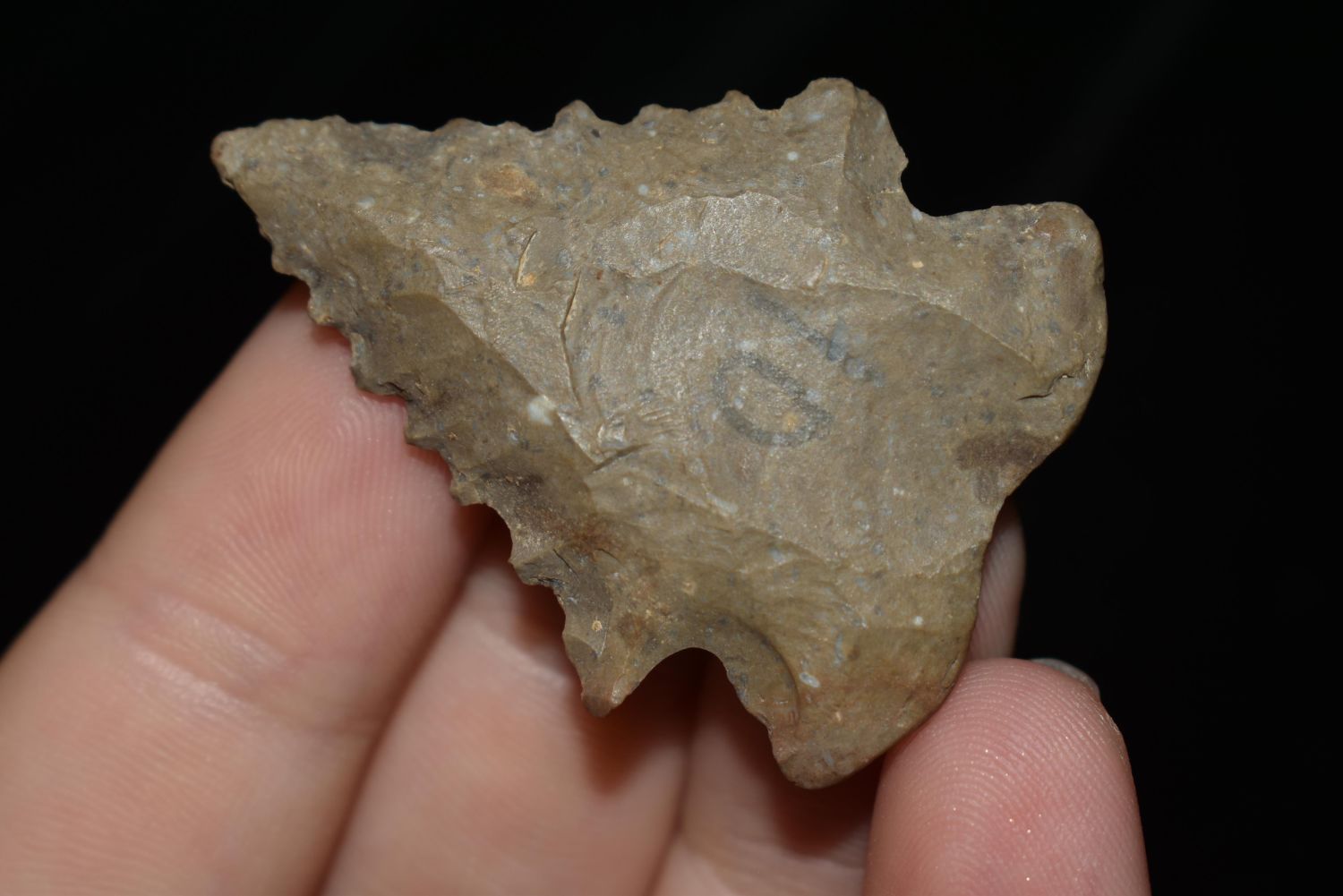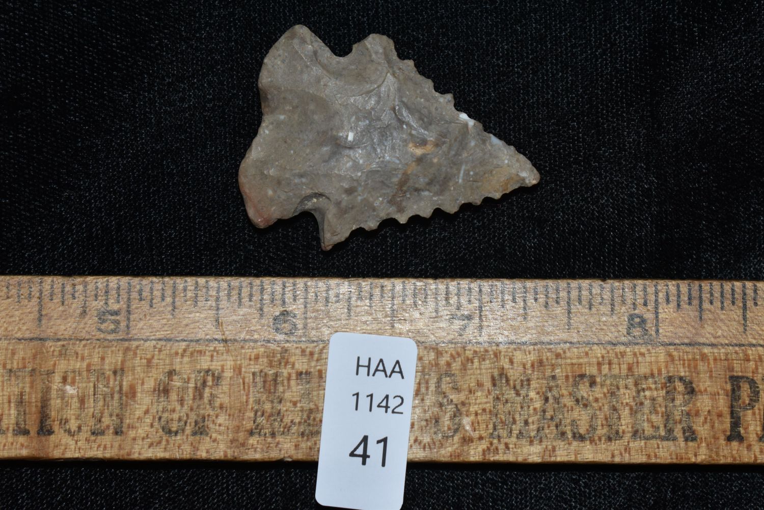 NICE 1 3/4" SERRATED PINETREE FOUND IN BENTON/HUMPHREYS COUNTY TENNESSEE, EX SIMMS COLLECTION, NATIVE AMERICAN INDIAN ARROWHEAD