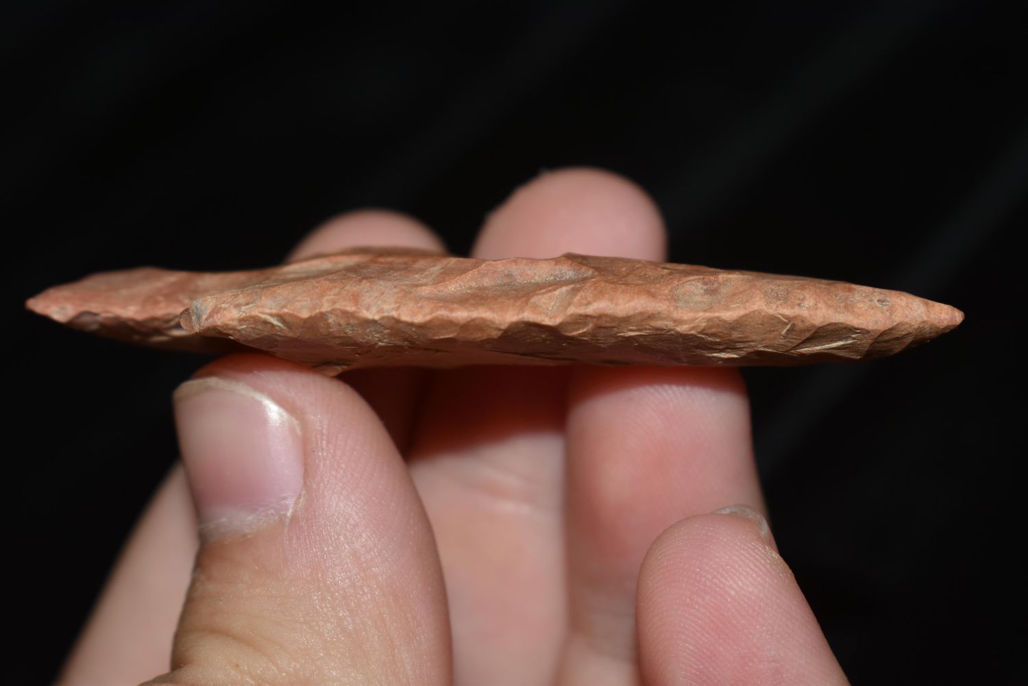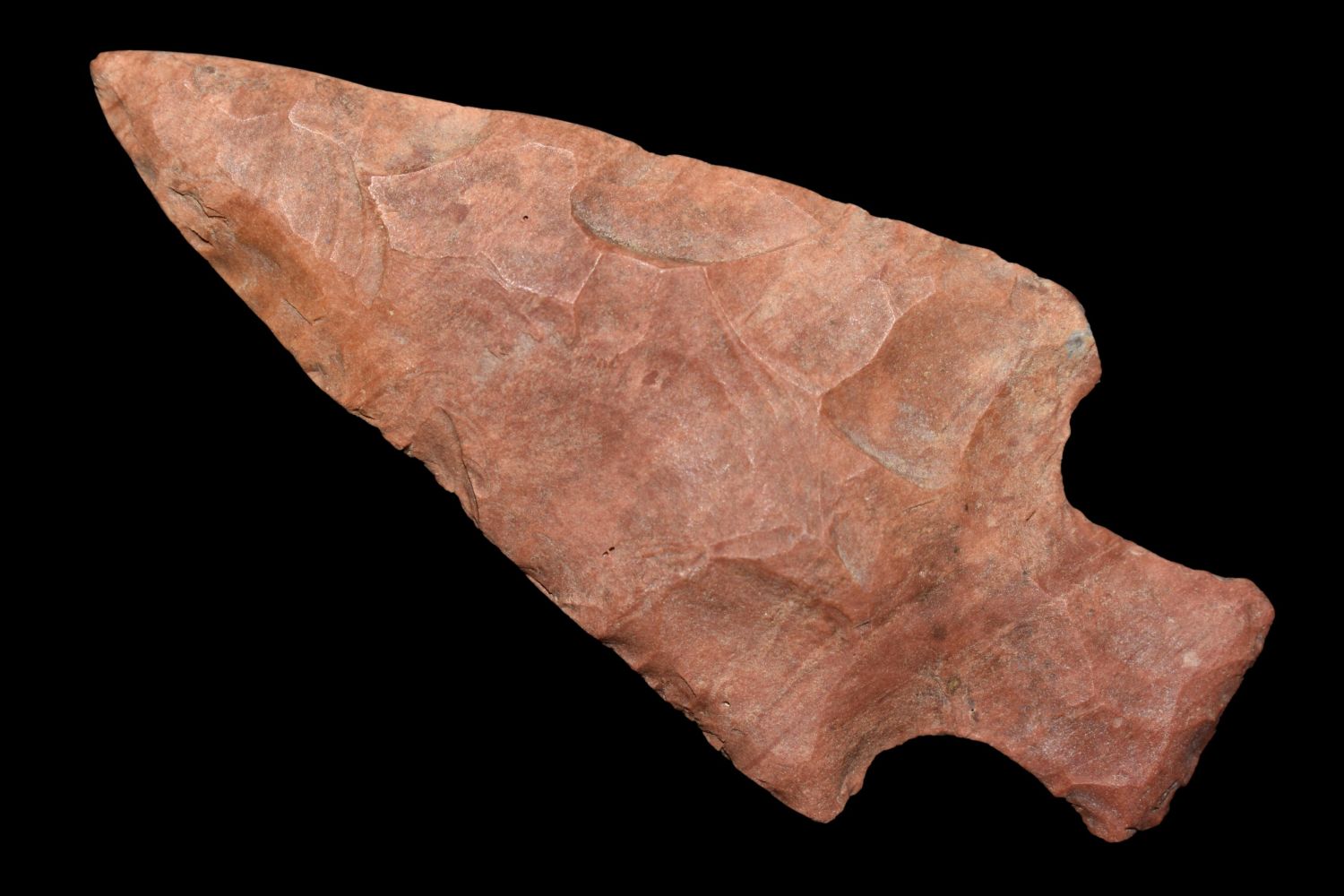 2 5/8" MOTLEY FOUND IN BENTON/HUMPHREYS COUNTY TENNESSEE, EX SIMMS COLLECTION, NATIVE AMERICAN INDIAN ARROWHEAD