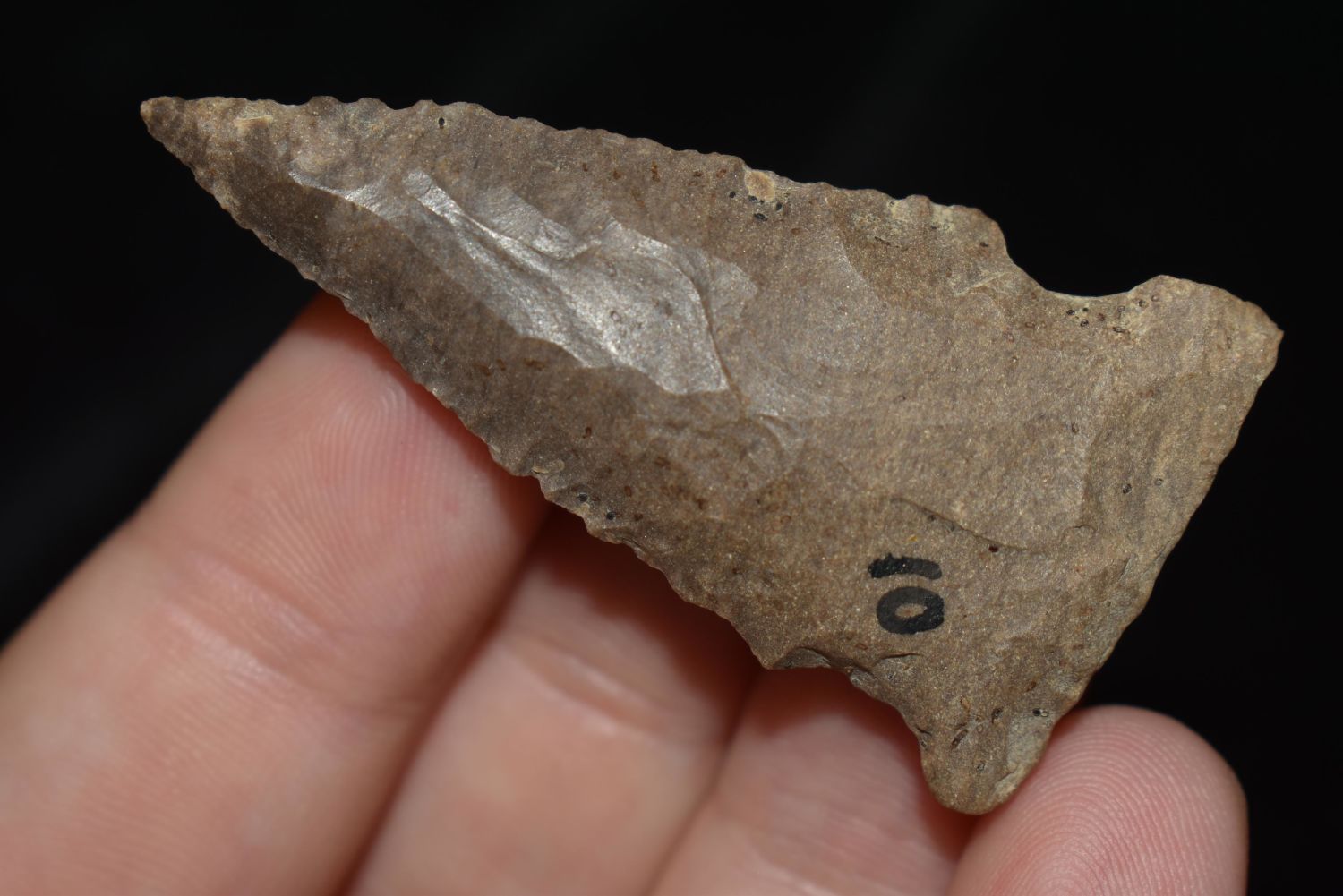 2" BIG SANDY FOUND IN BENTON/HUMPHREYS COUNTY TENNESSEE, EX SIMMS COLLECTION, NATIVE AMERICAN INDIAN ARROWHEAD