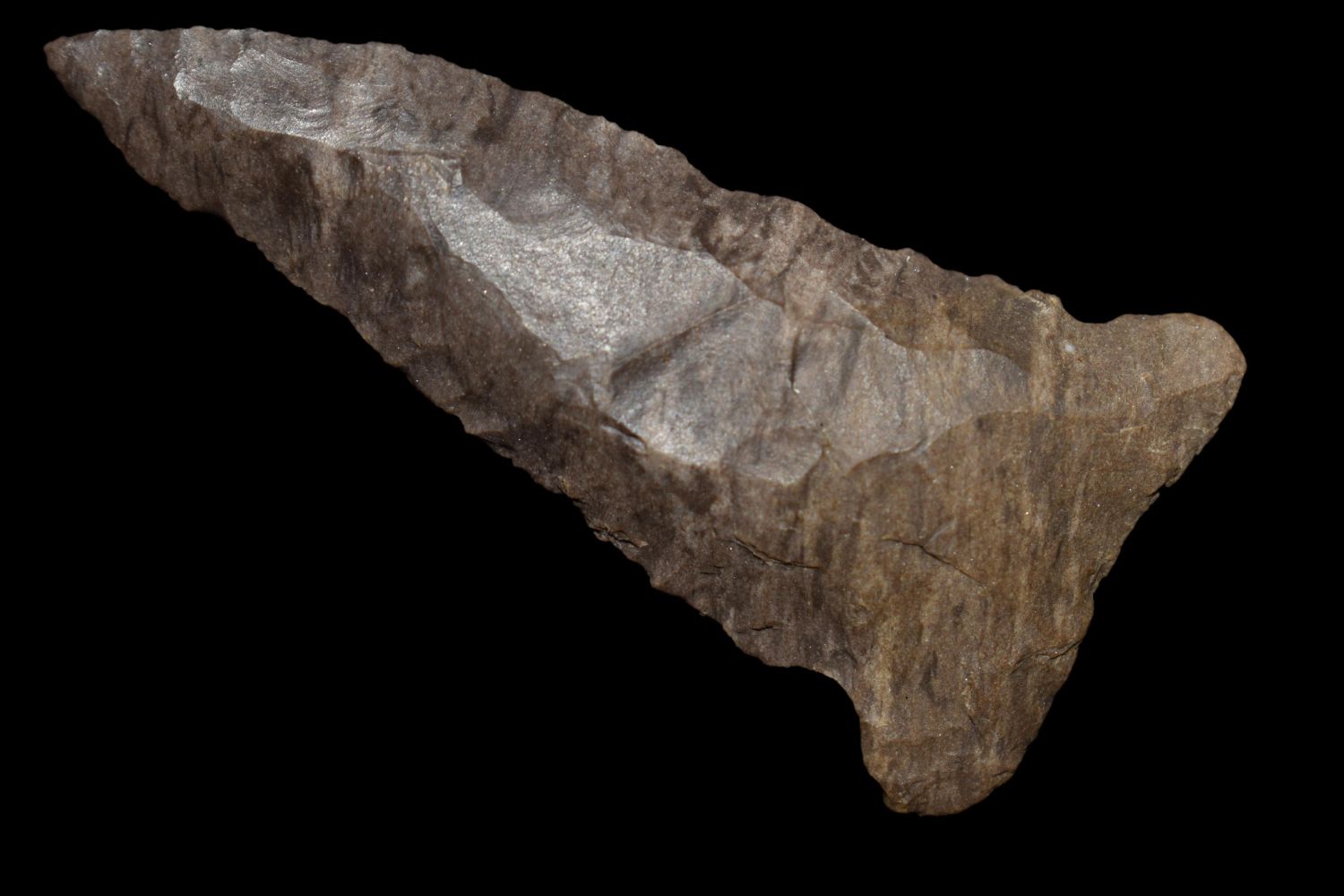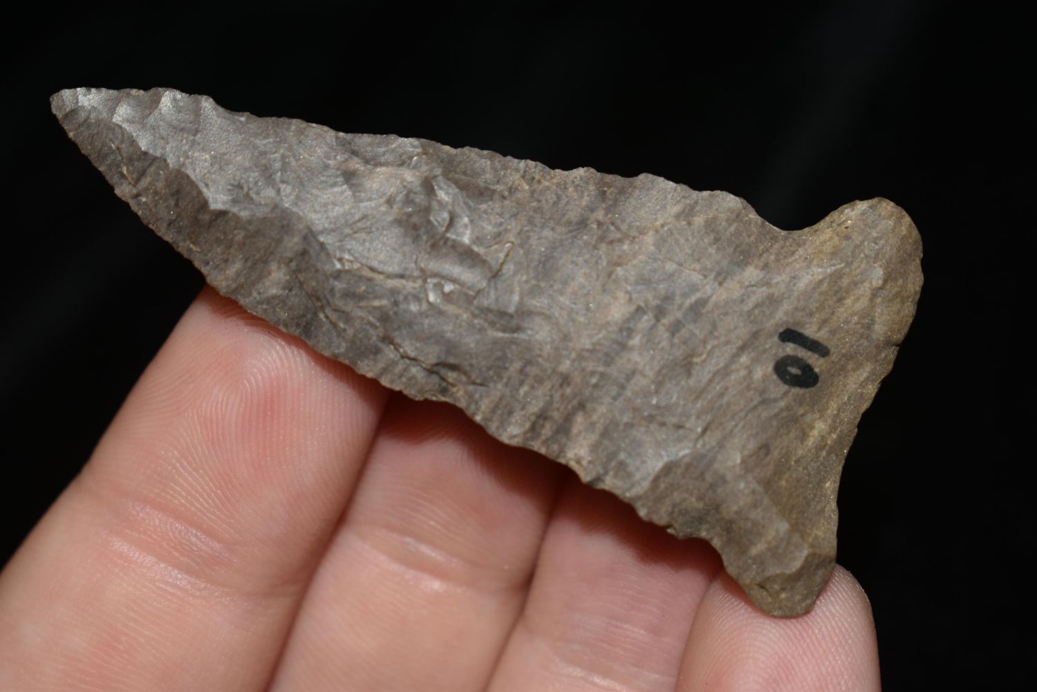 2 1/4" GREENBRIAR DALTON FOUND IN BENTON/HUMPHREYS COUNTY TENNESSEE, EX SIMMS COLLECTION, NATIVE AMERICAN INDIAN ARROWHEAD