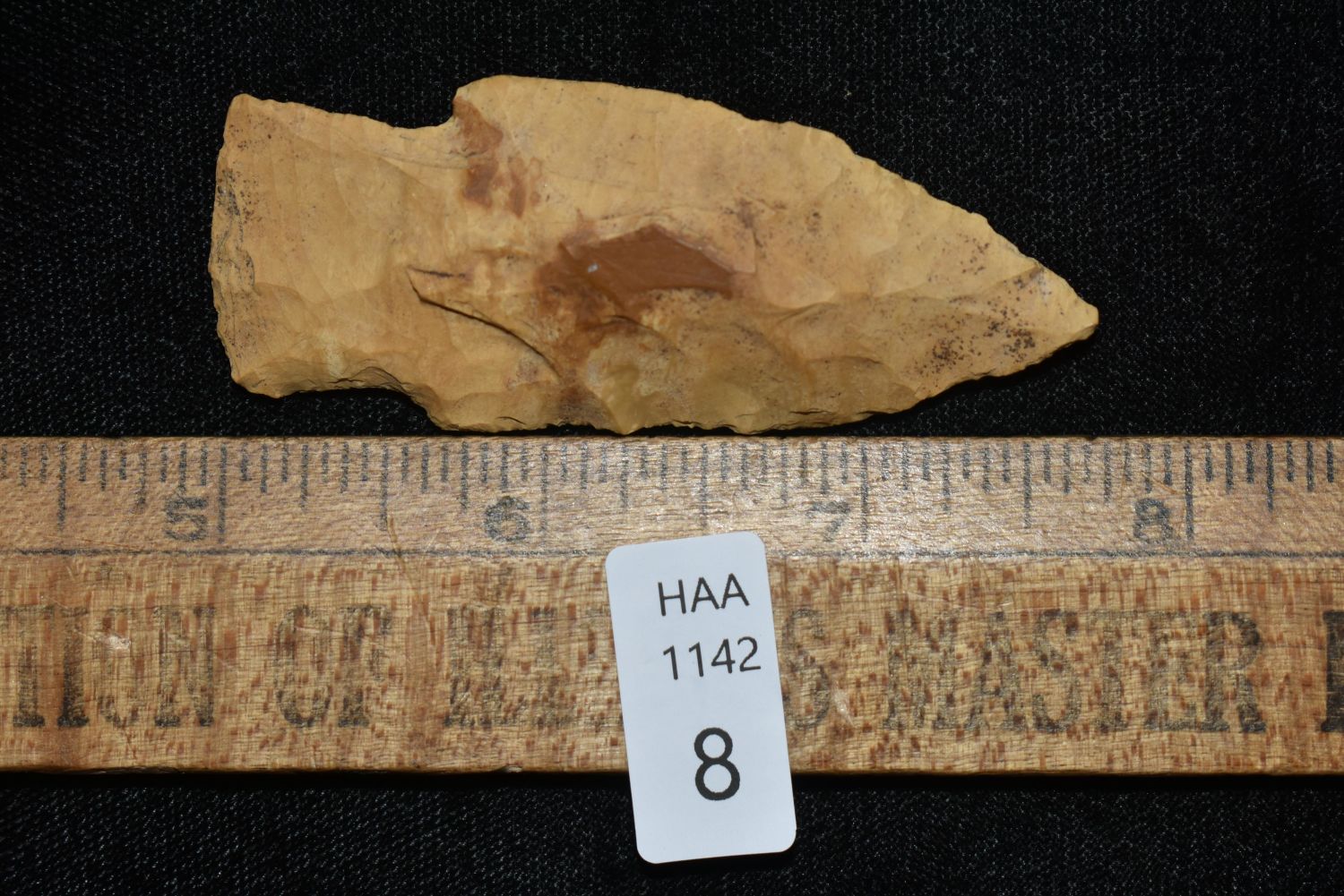 2 3/4" BAKERS CREEK FOUND IN BENTON/HUMPHREYS COUNTY TENNESSEE, EX SIMMS COLLECTION, NATIVE AMERICAN INDIAN ARROWHEAD