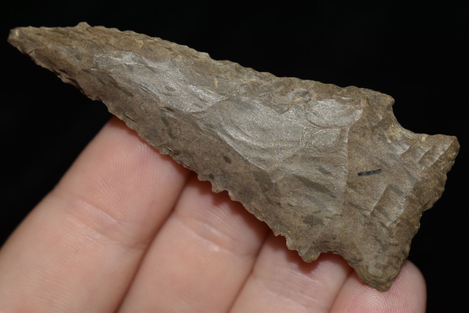 NICE 2 5/8" STILLWEL FOUND IN BENTON/HUMPHREYS COUNTY TENNESSEE, EX SIMMS COLLECTION, NATIVE AMERICAN INDIAN ARROWHEAD