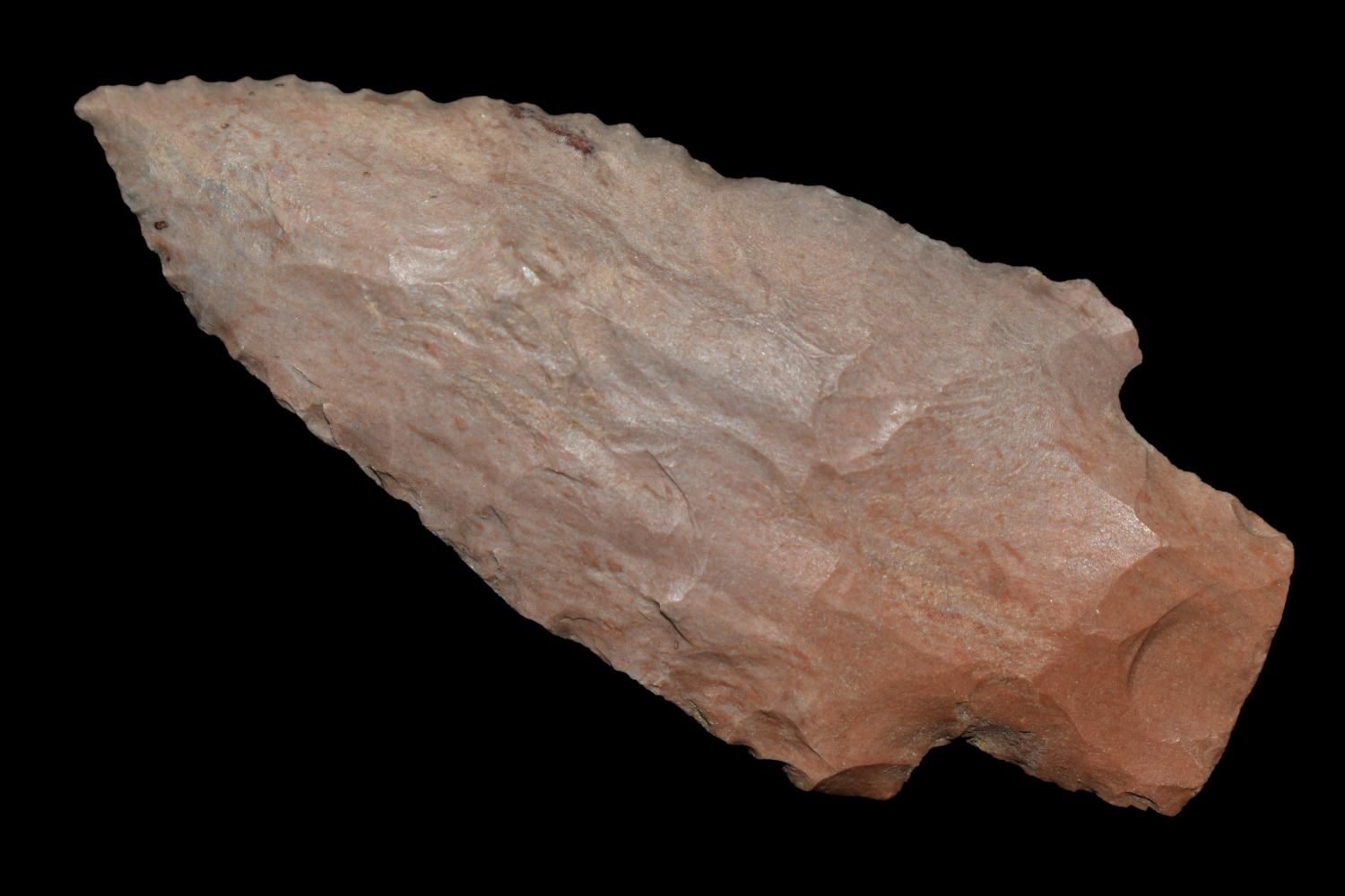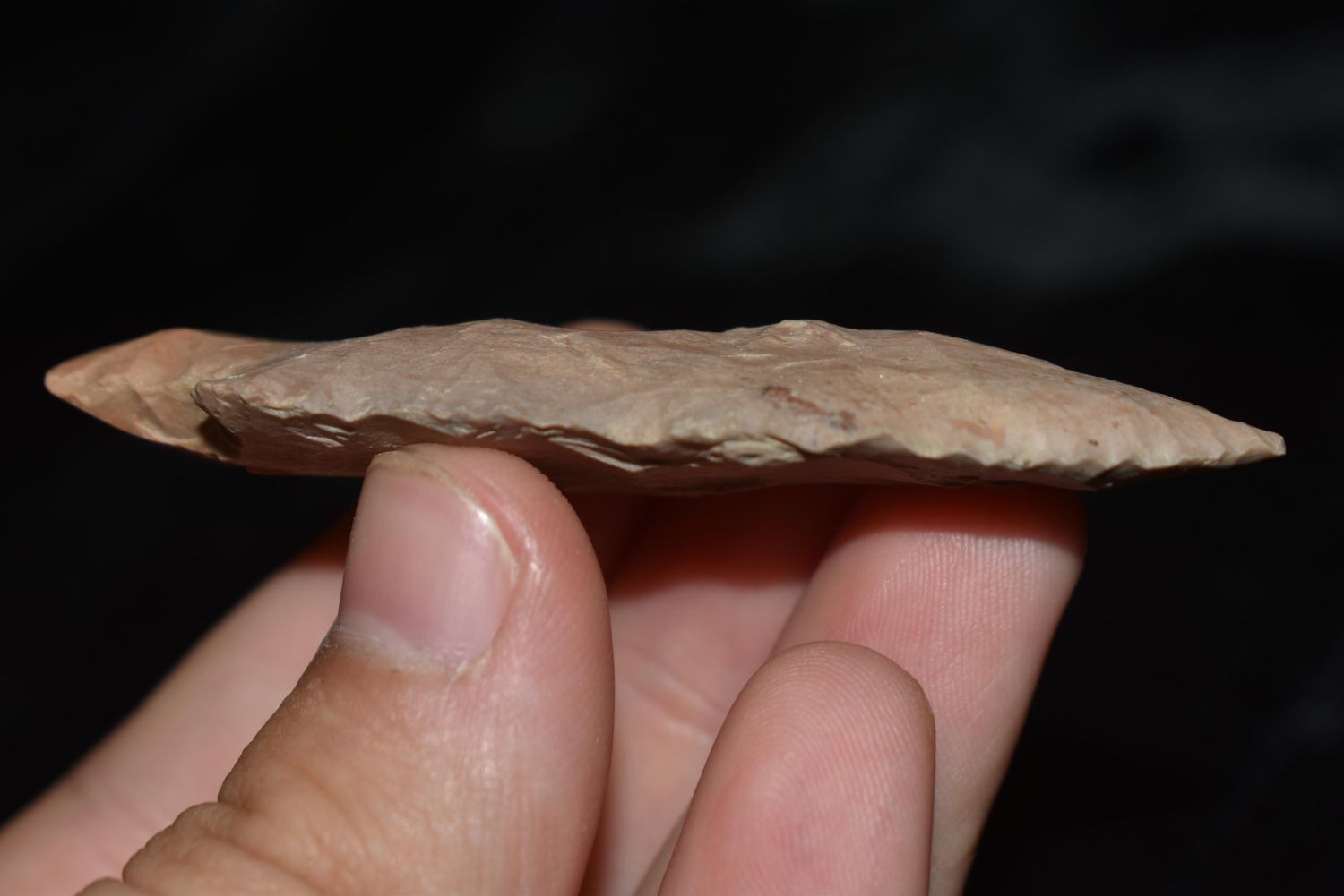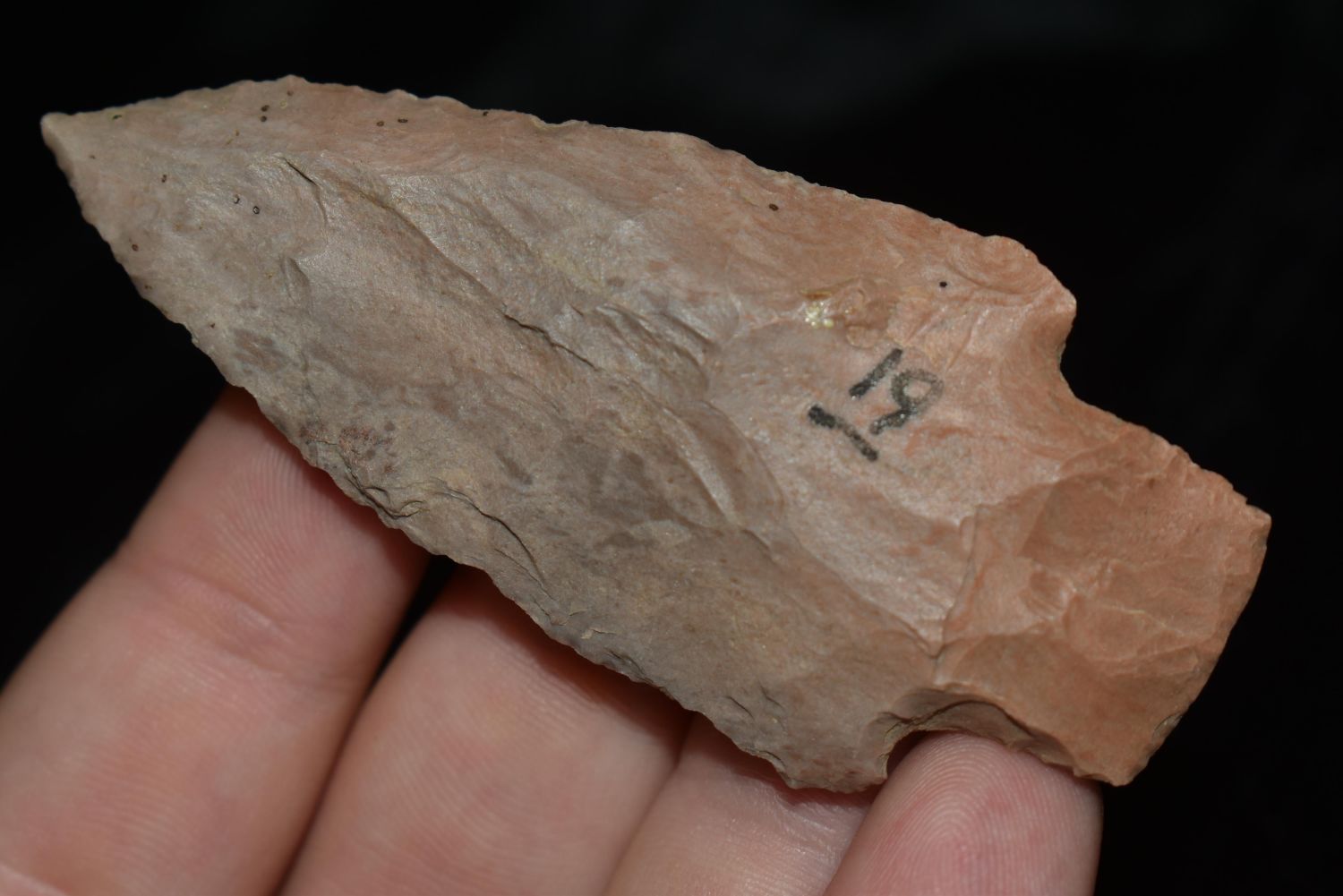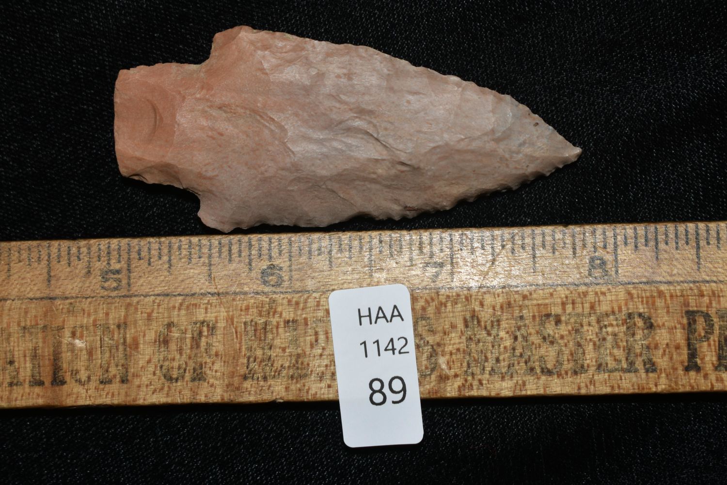 COLORFUL 2 7/8" ARCHAIC STEMMED FOUND IN BENTON/HUMPHREYS COUNTY TENNESSEE, EX SIMMS COLLECTION, NATIVE AMERICAN INDIAN ARROWHEAD