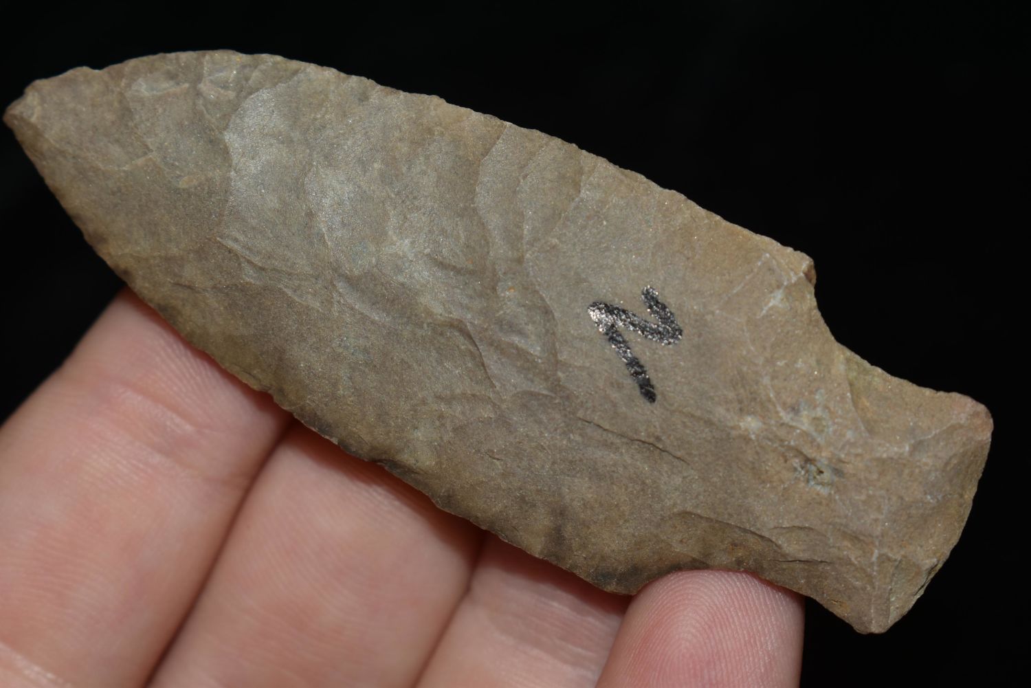 3" KRAMER FOUND IN BENTON/HUMPHREYS COUNTY TENNESSEE, EX SIMMS COLLECTION, NATIVE AMERICAN INDIAN ARROWHEAD