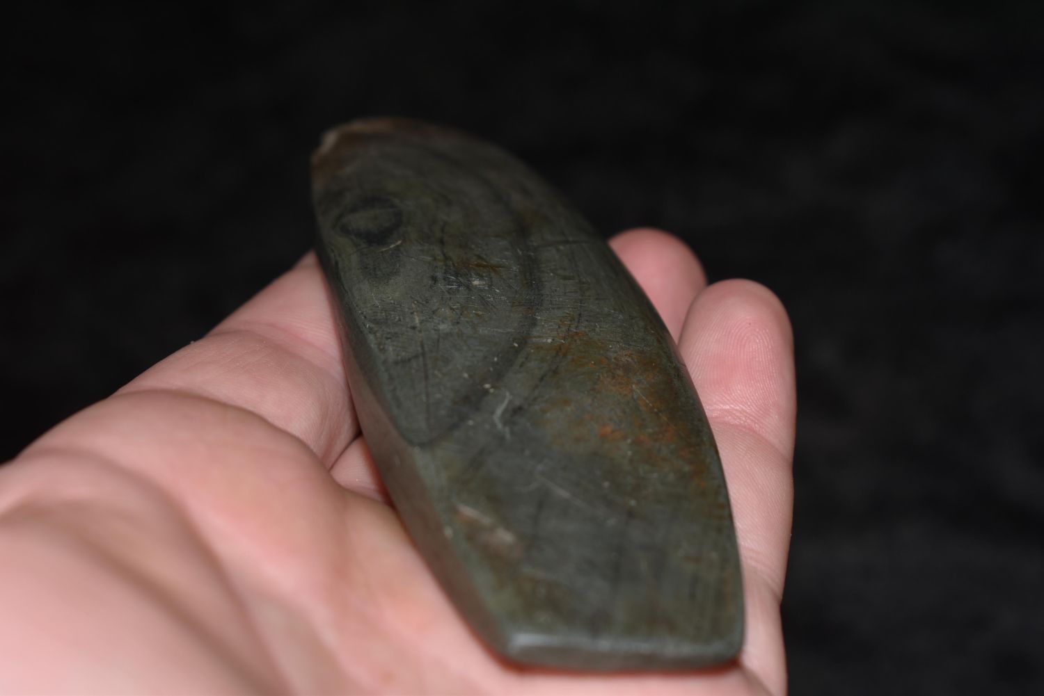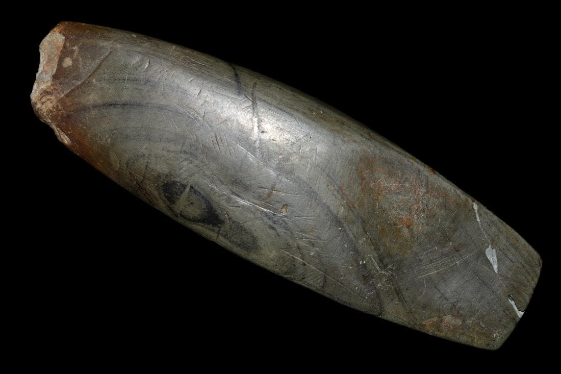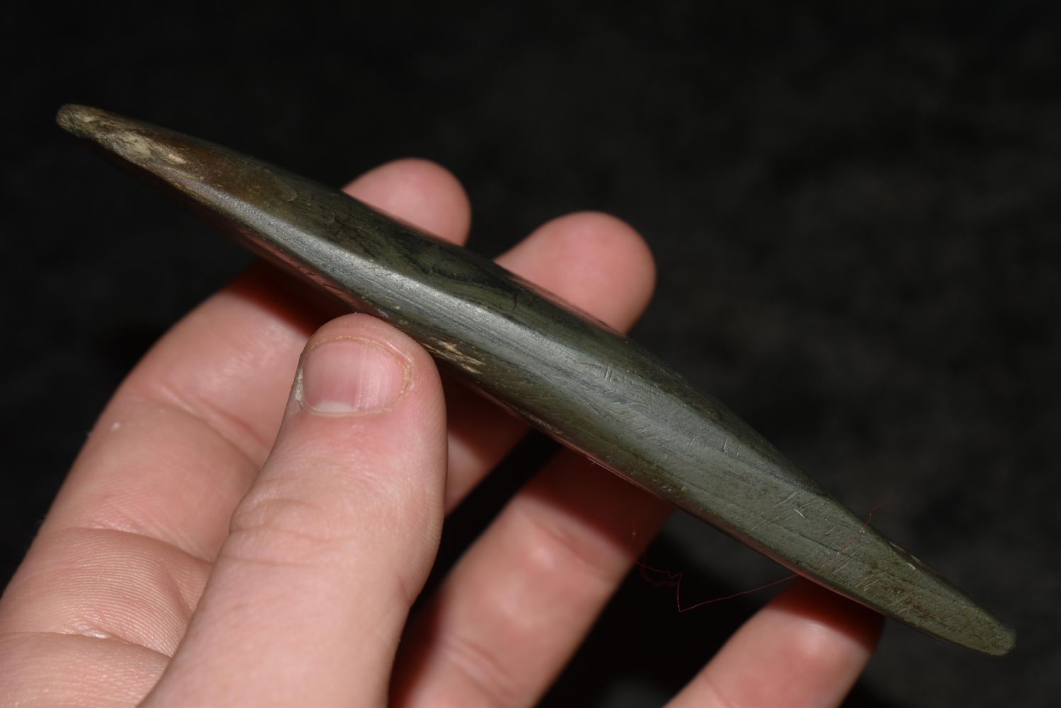 4 3/4" Undrilled Slate Gorget found in Mason County, Kentucky. Does have one side broken and reglued